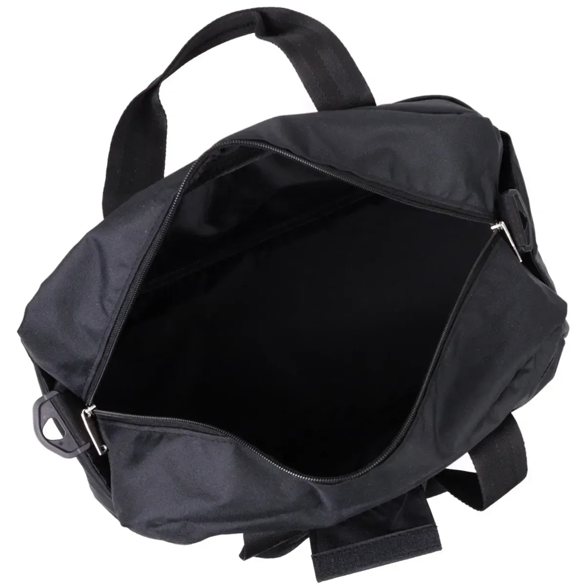 Дорожная небольшая сумка из качественного плотного материала - полиэстера. На лицевой стороне посередине, расположен вышитый логотип бренда, что является залогом качества. Изделие имеет небольшой размер и практичный функционал, все для Вашего удобства и практичного использования. Такую сумку удобно брать с собой в небольшие путешествия, на тренировки, а также в небольшие вылазки за город. Аксессуар состоит из одного просторного отделения и трех карманов разных размеров снаружи, что очень удобно. Носить аксессуар можно в руках, при помощи текстильных ручек с соединителем на липучке для большего удобства, а также на плече, для этого предусмотрен съемный регулируемый ремень. Пошита сумка аккуратно, все строчки ровные, подкладка прочная - черного цвета, фурнитура надежная и качественная. Стильная тканевая сумка станет желанным подарком для ваших родных и близких и самое главное очень полезным и необходимым.