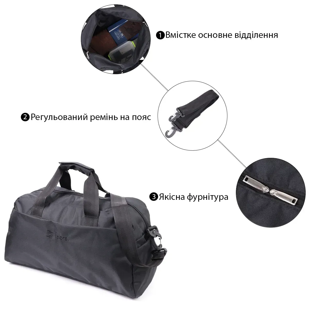 Небольшая дорожная сумка из качественного полиэстера FABRA 22581 Черный