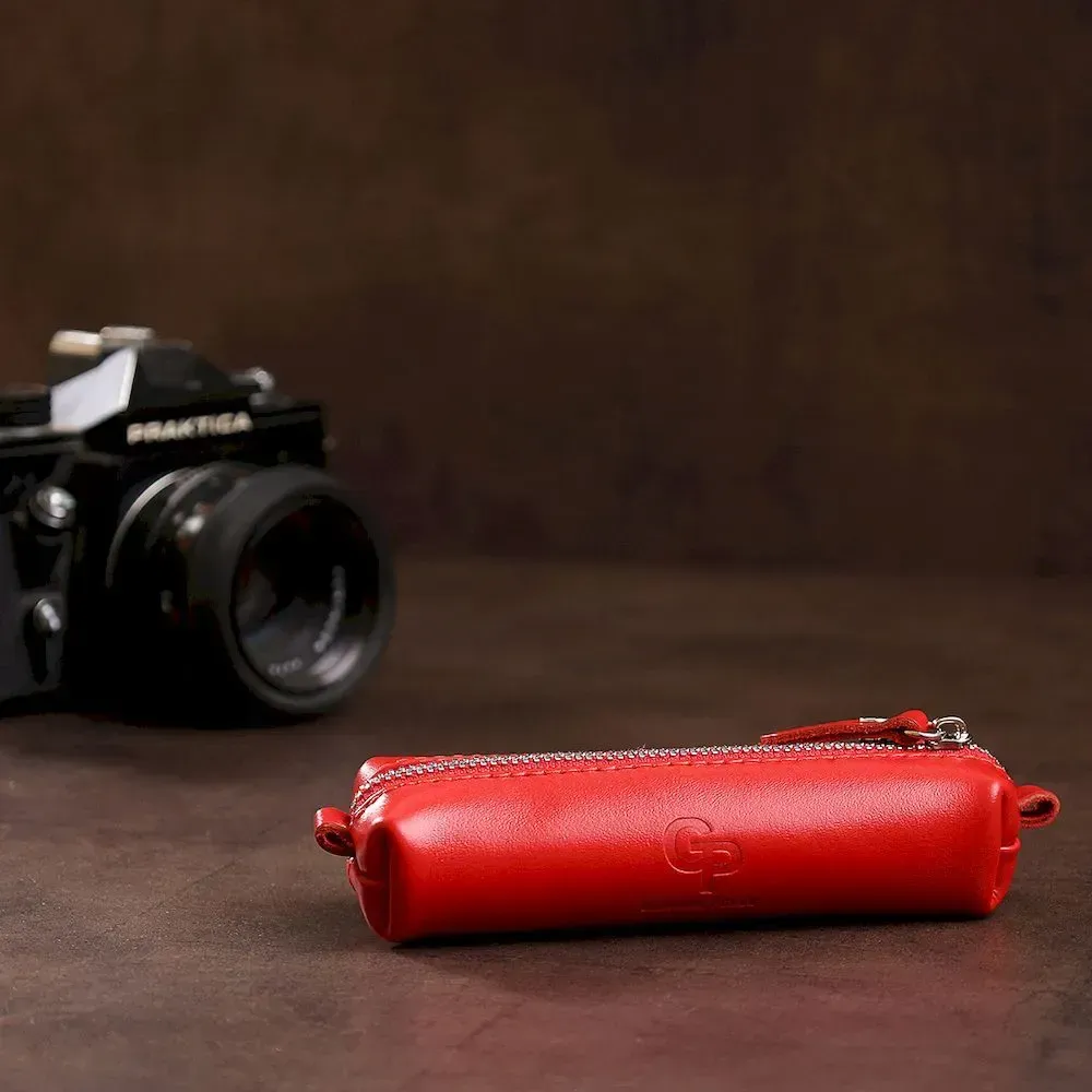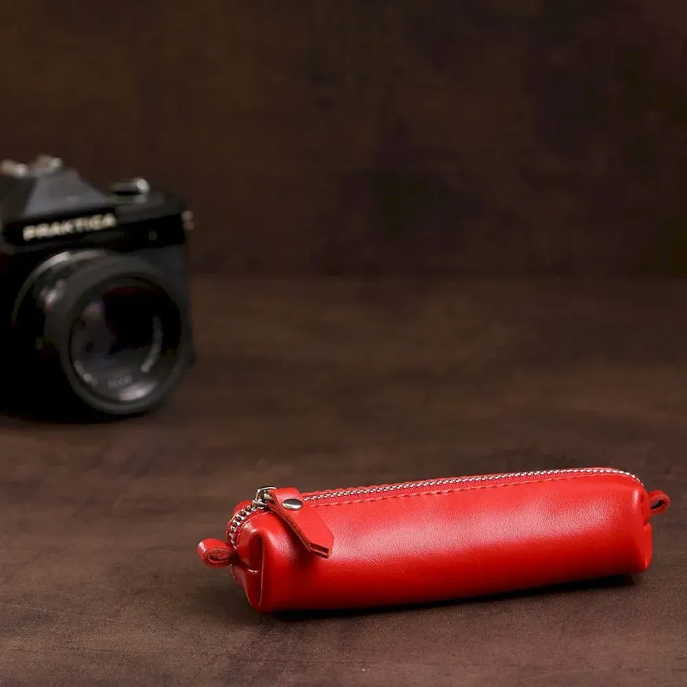 Симпатичная женская ключница из натуральной высококлассной кожи. Имеет красивый насыщенный красный цвет и гладкую глянцевую фактуру. С таким аксессуаром можно забыть об поцарапанных вещах в сумочке, ведь отныне ключи будут надежно защищены. Упаковано изделие в фирменный чехол.