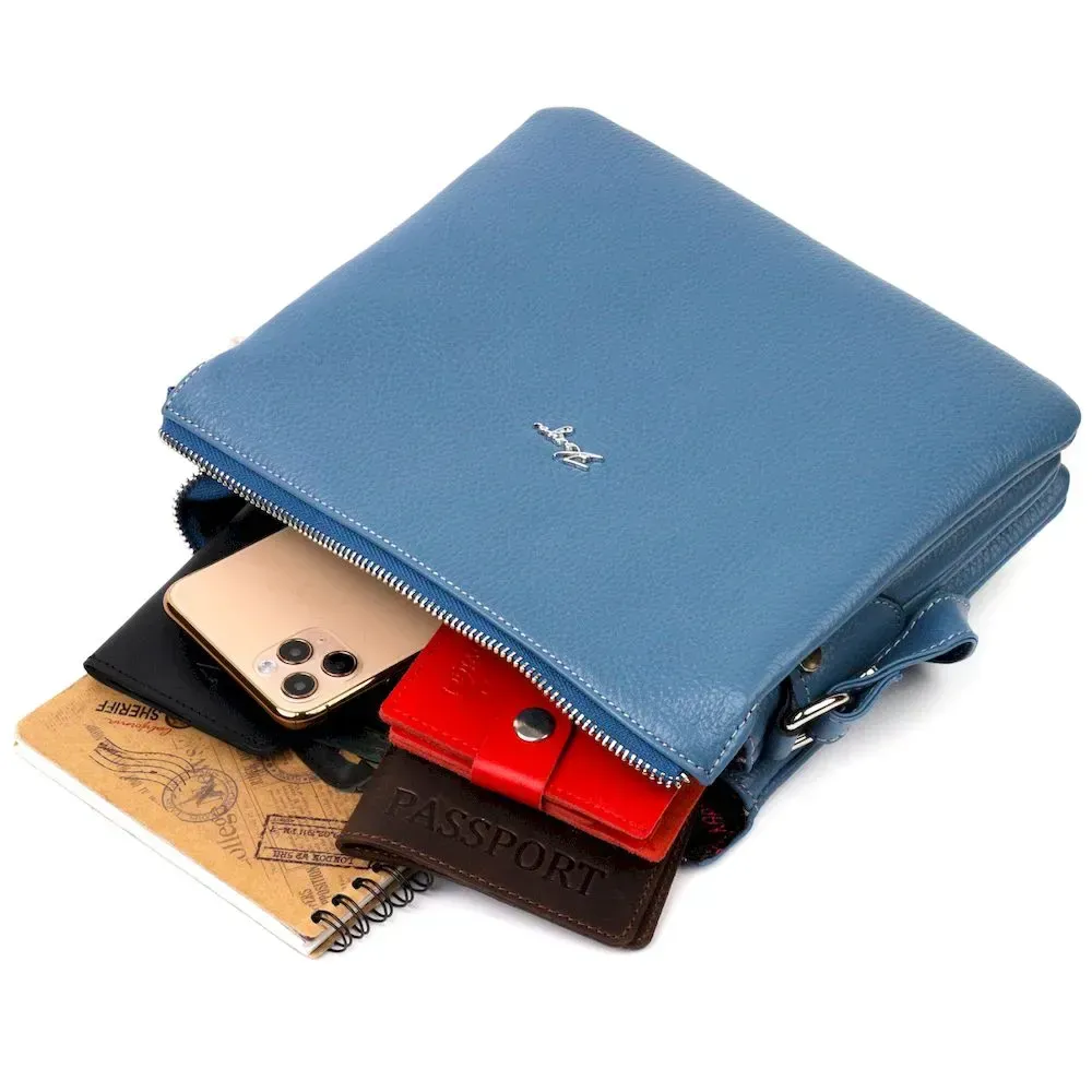 Небольшая женская сумка на плечо KARYA 20891 кожаная Голубой