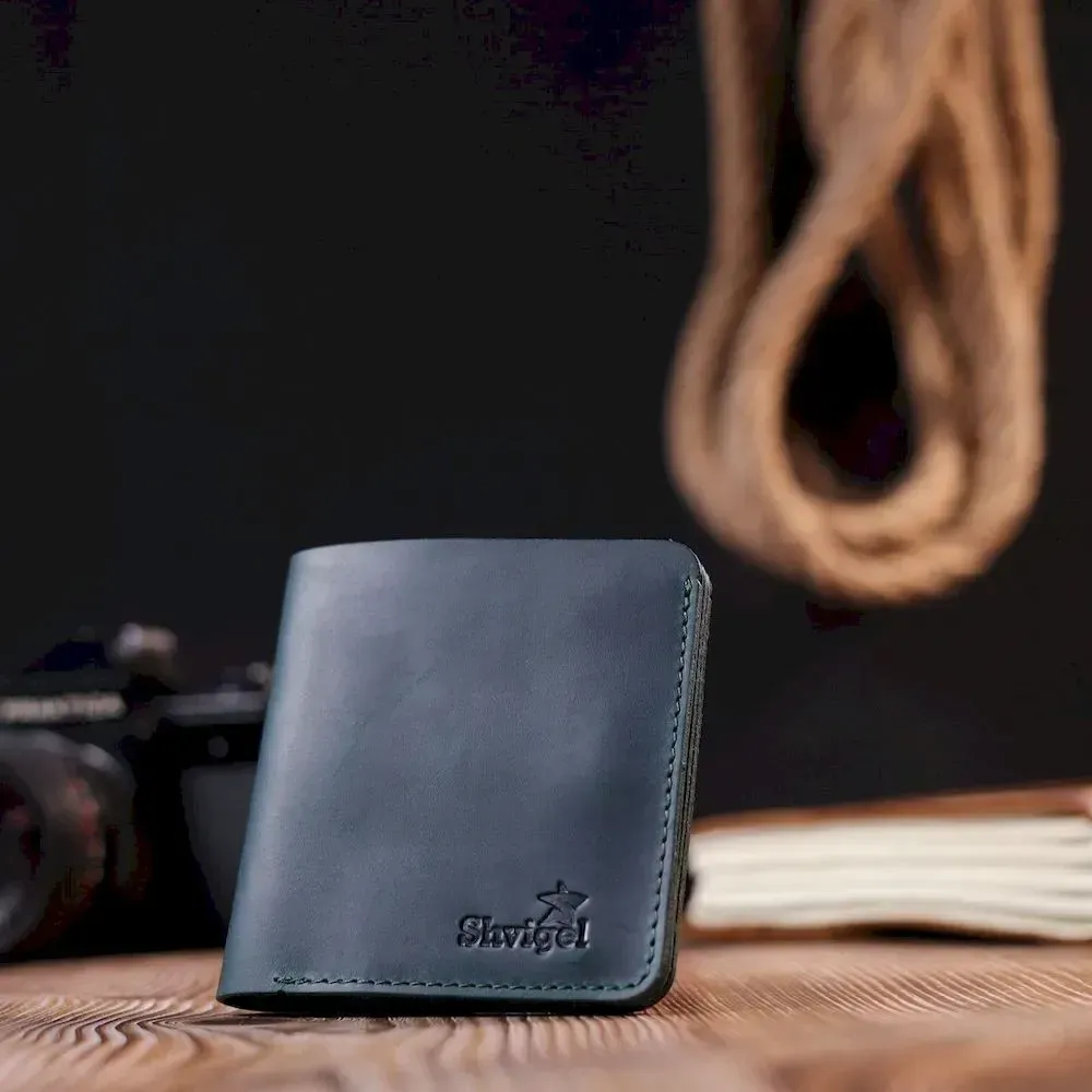 Небольшое винтажное кожаное портмоне Shvigel 16603 Зеленый