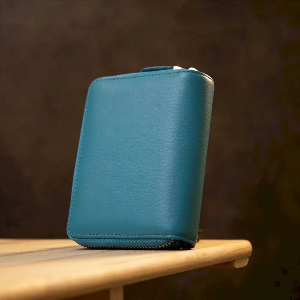 Оригинальный женский кошелек из натуральной высококачественной кожи для тех, кто не любит большие громоздкие кошельки, которые часто занимают половину сумки. Данная модель небольшого размера, но имеет практичное и функциональное наполнение. Также отличительной особенностью является красивый насыщенный бирюзовый цвет, который подойдет ярким личностям.