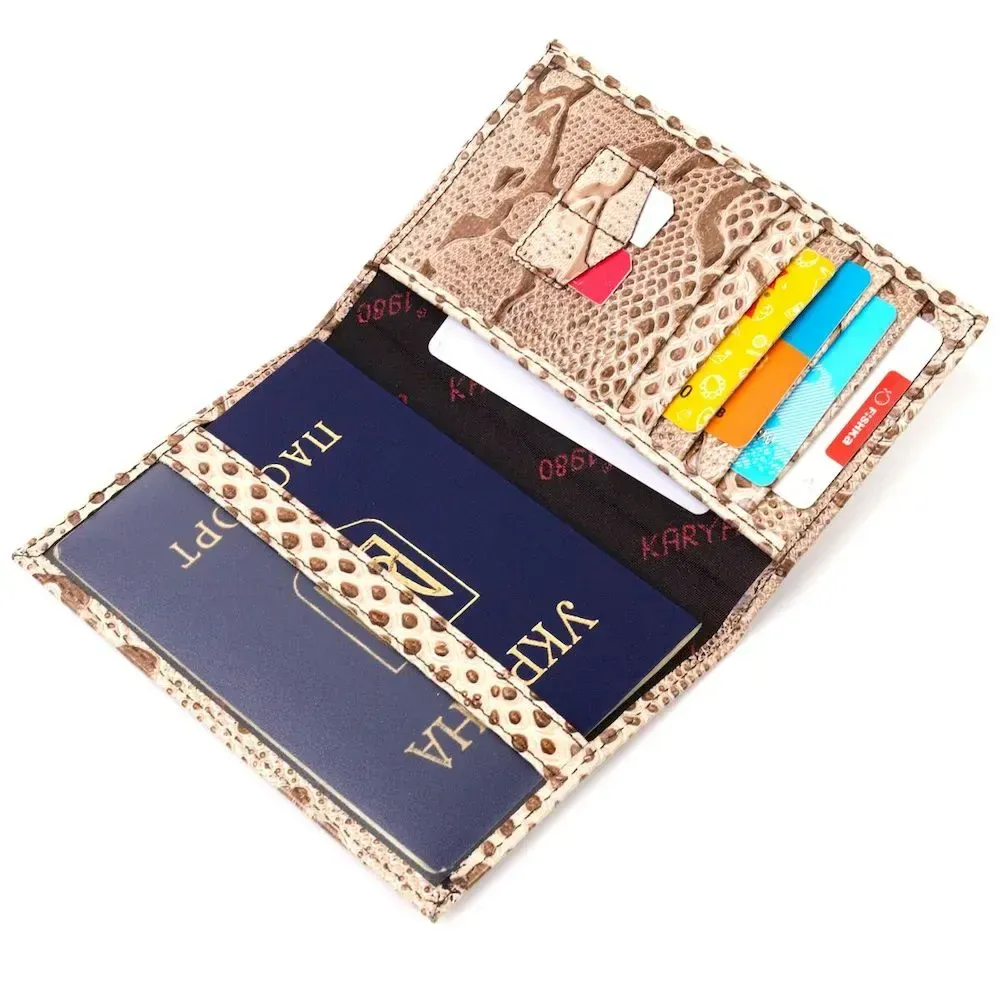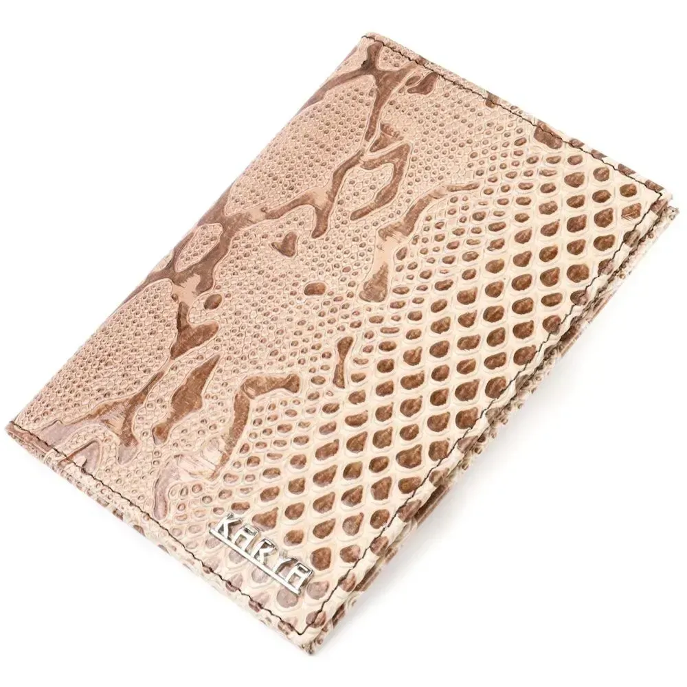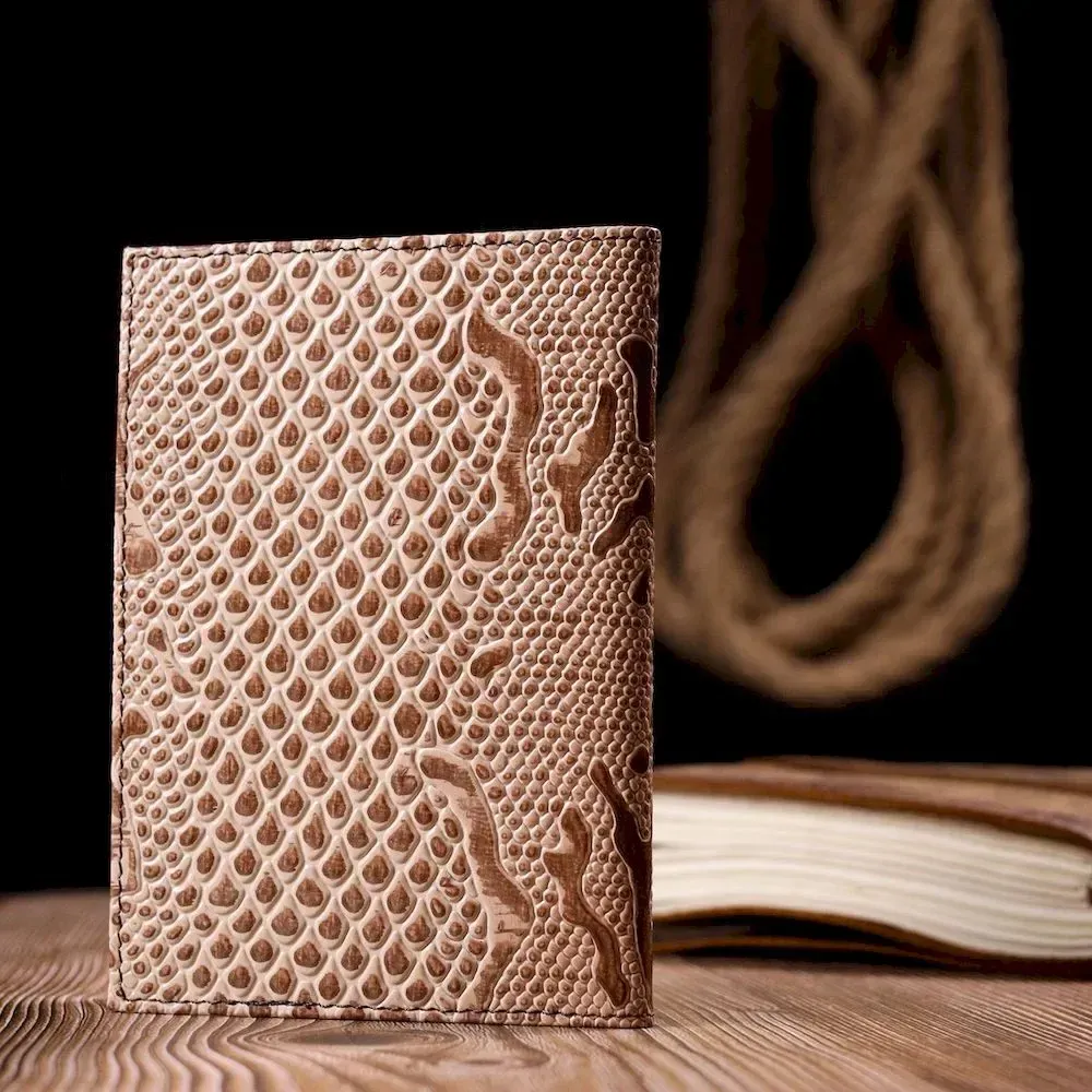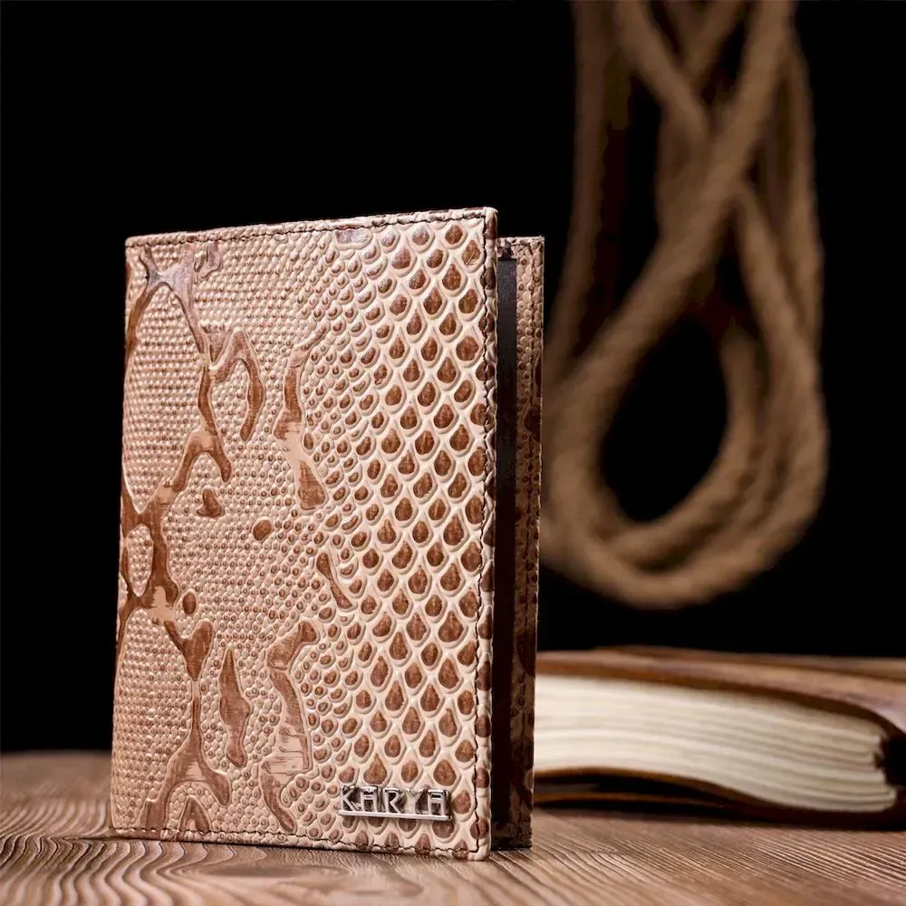 Необычная обложка на документы из фактурной кожи под кобру KARYA 20929 Молочный