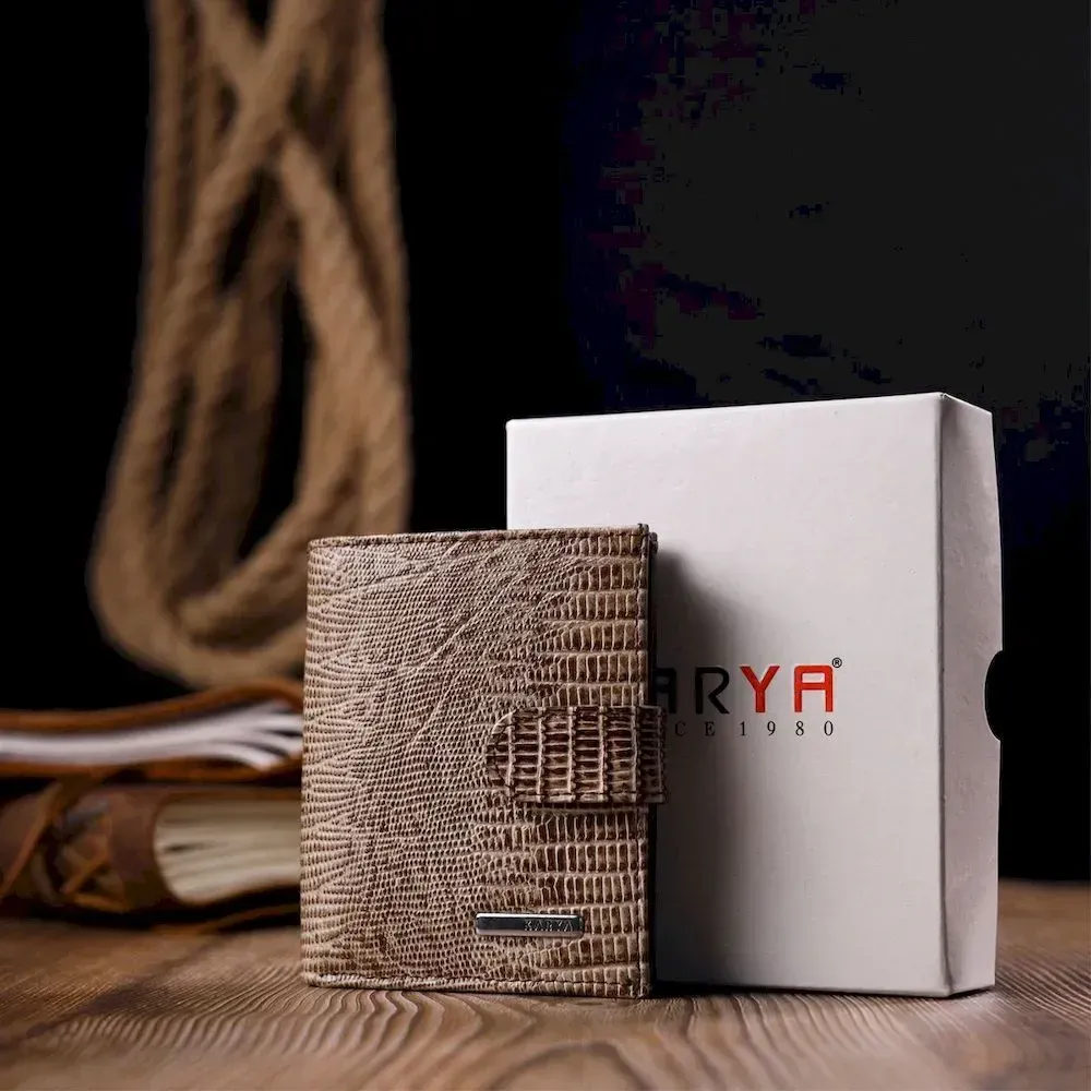 Необычное лакированное портмоне из фактурной кожи KARYA 21048 Бежевый