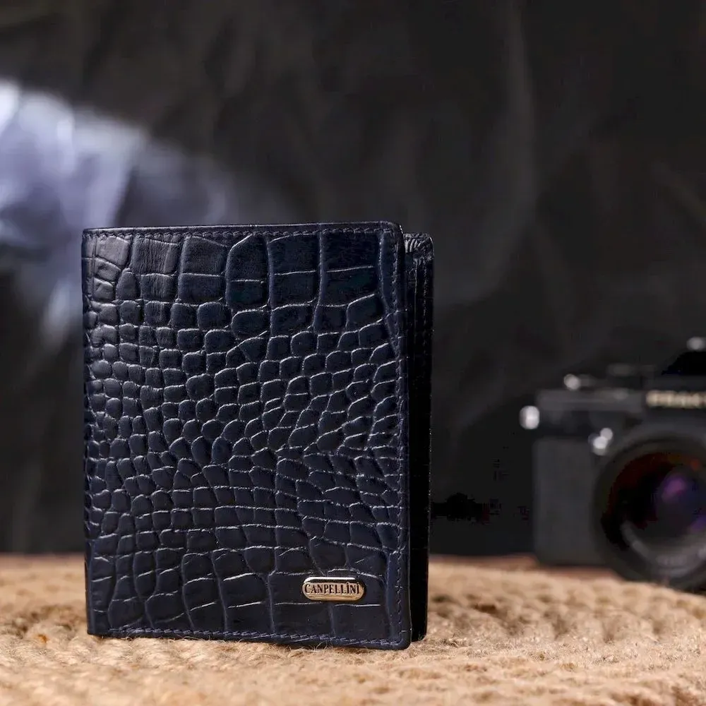 Необычное мужское портмоне из натуральной фактурной кожи CANPELLINI 21499 Синее