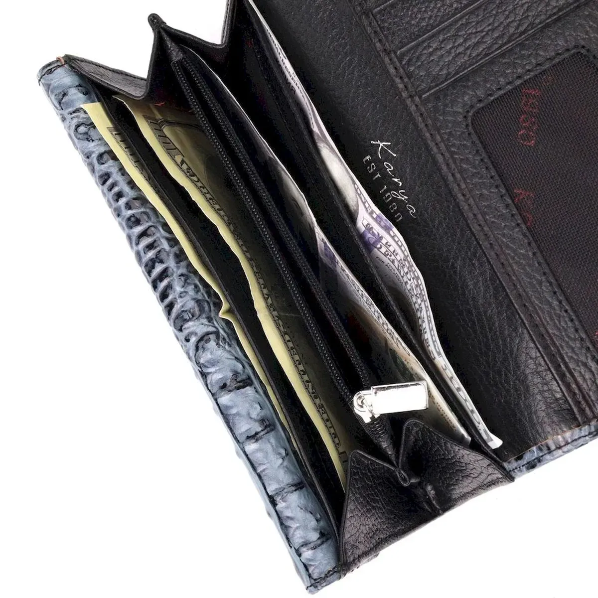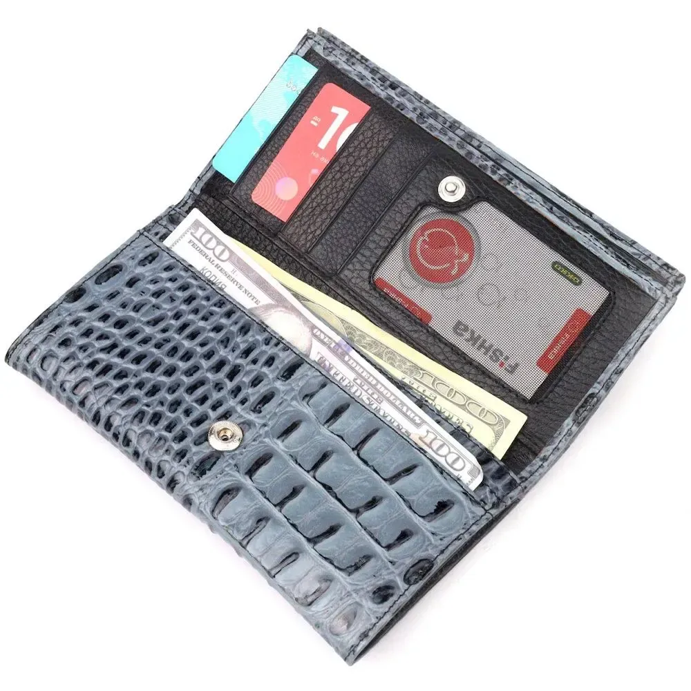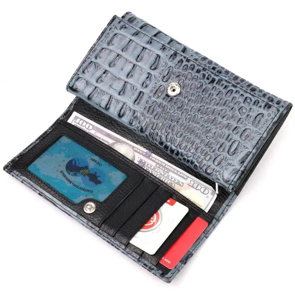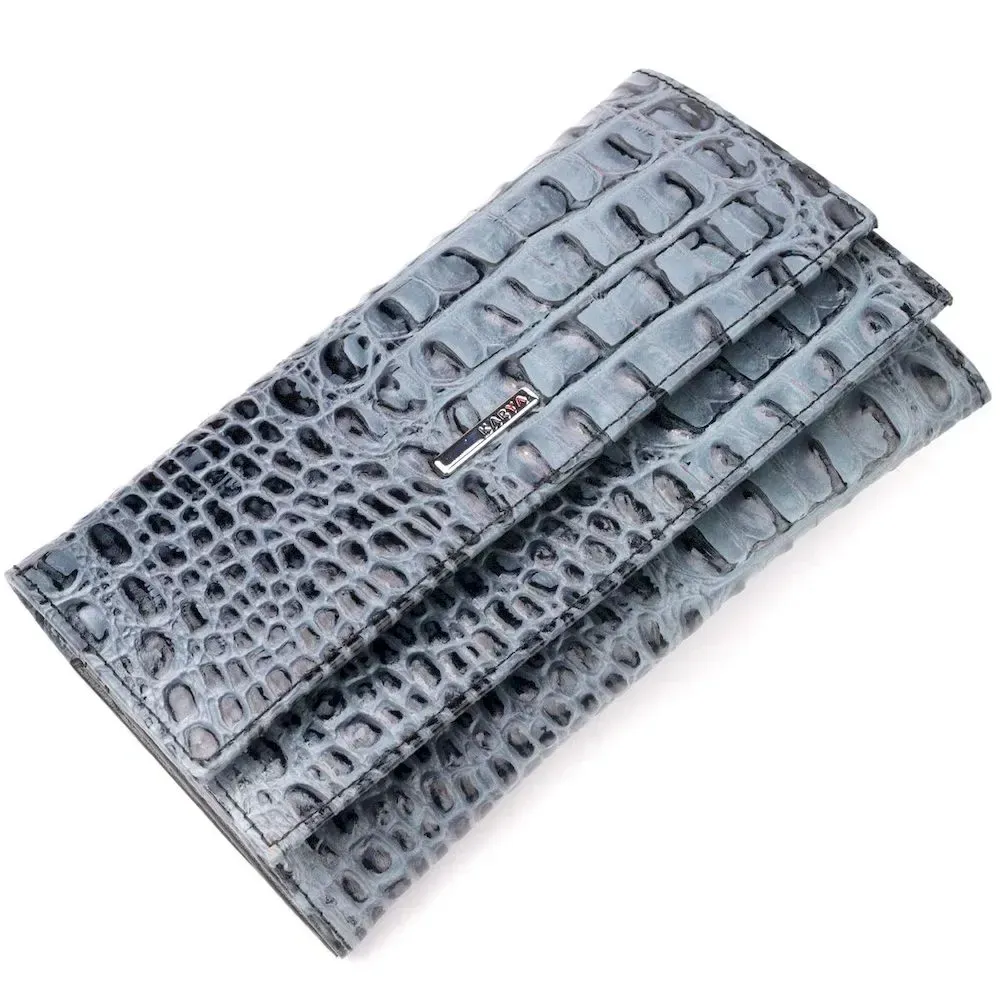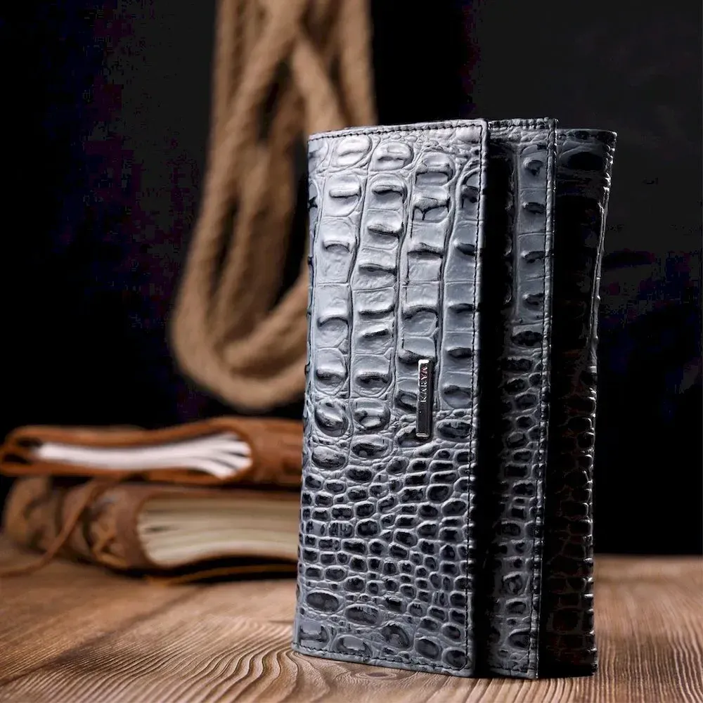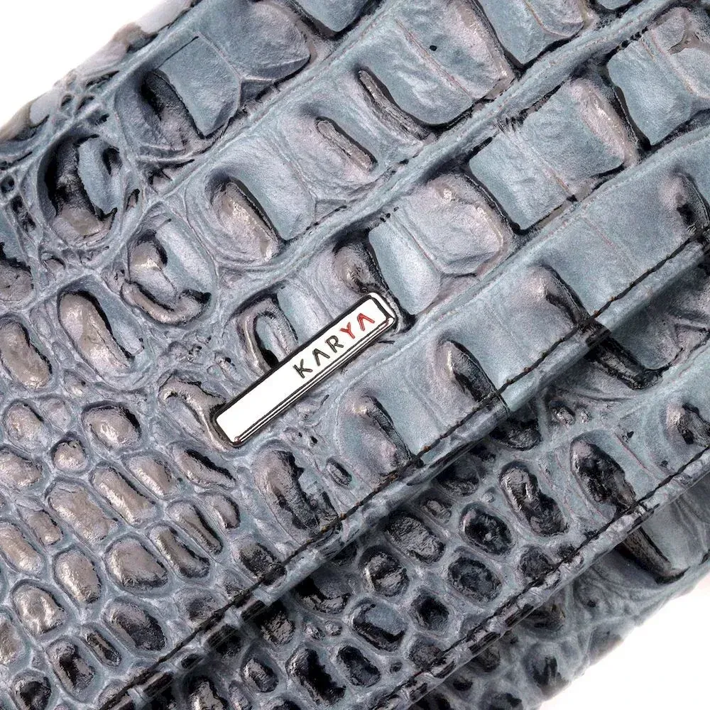 Необычный женский кошелек из натуральной фактурной кожи под крокодила KARYA 21015 Серый