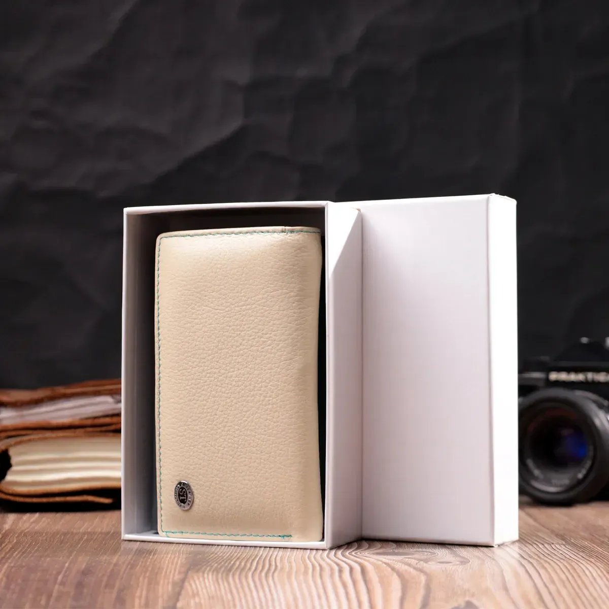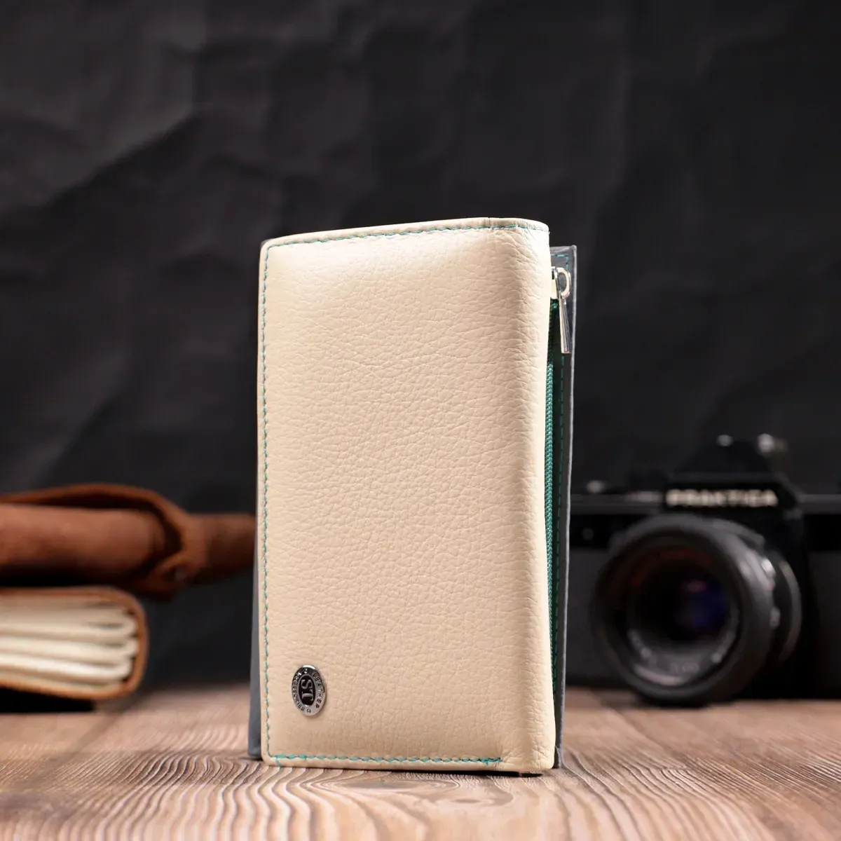 Необычный женский кожаный кошелек в три сложения ST Leather 19446 Разноцветный