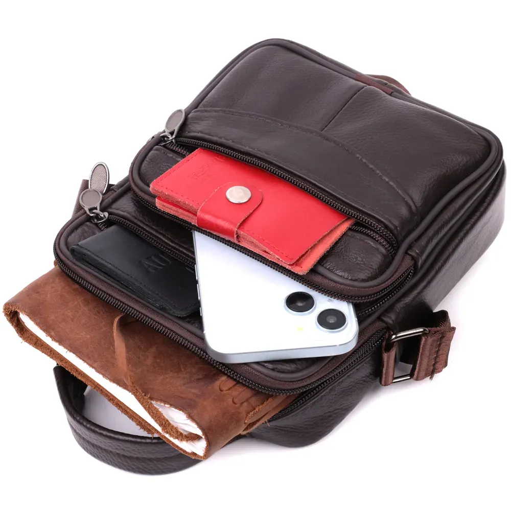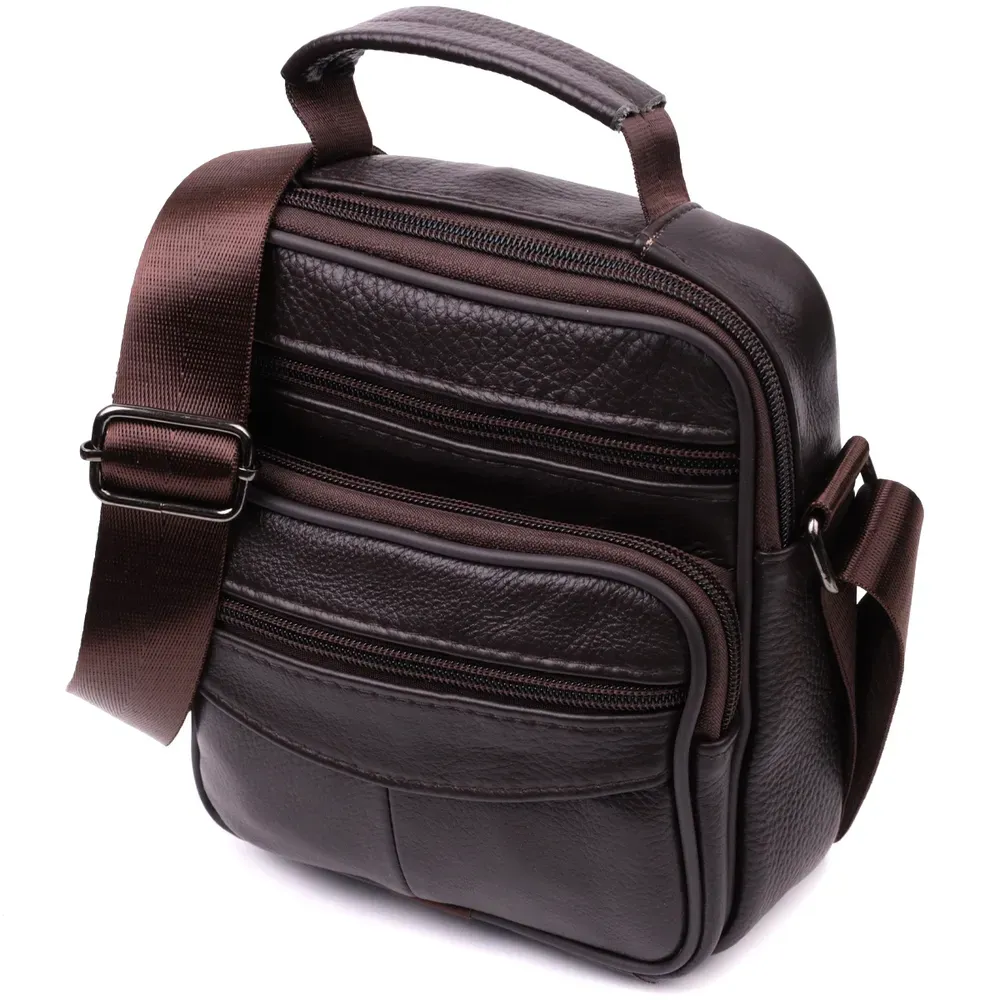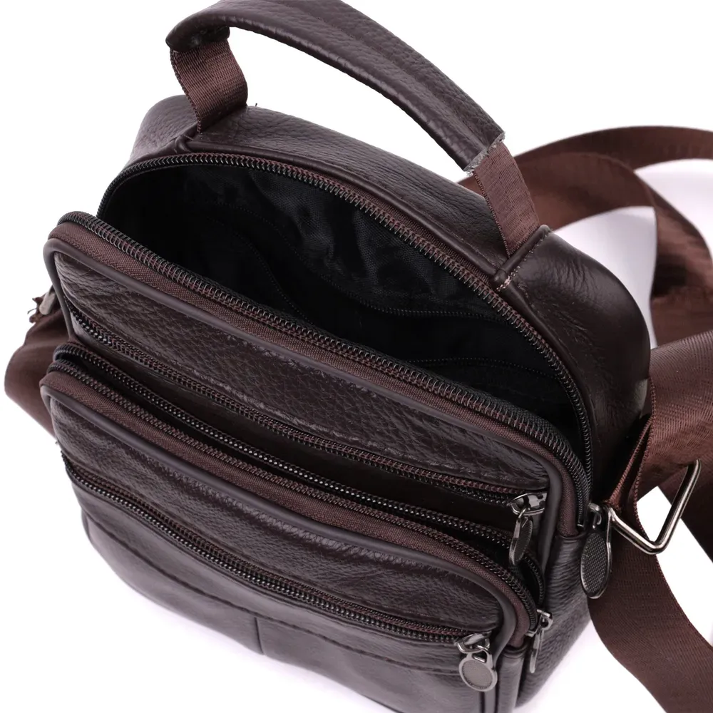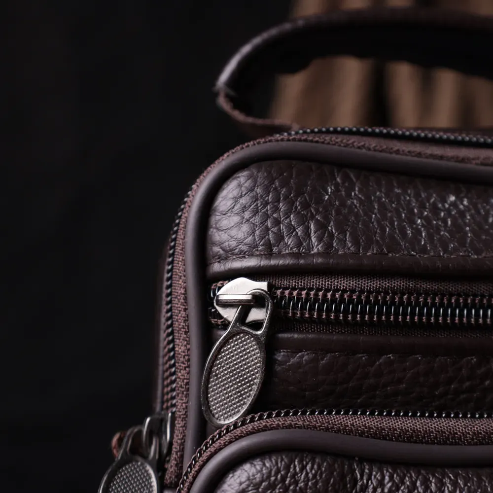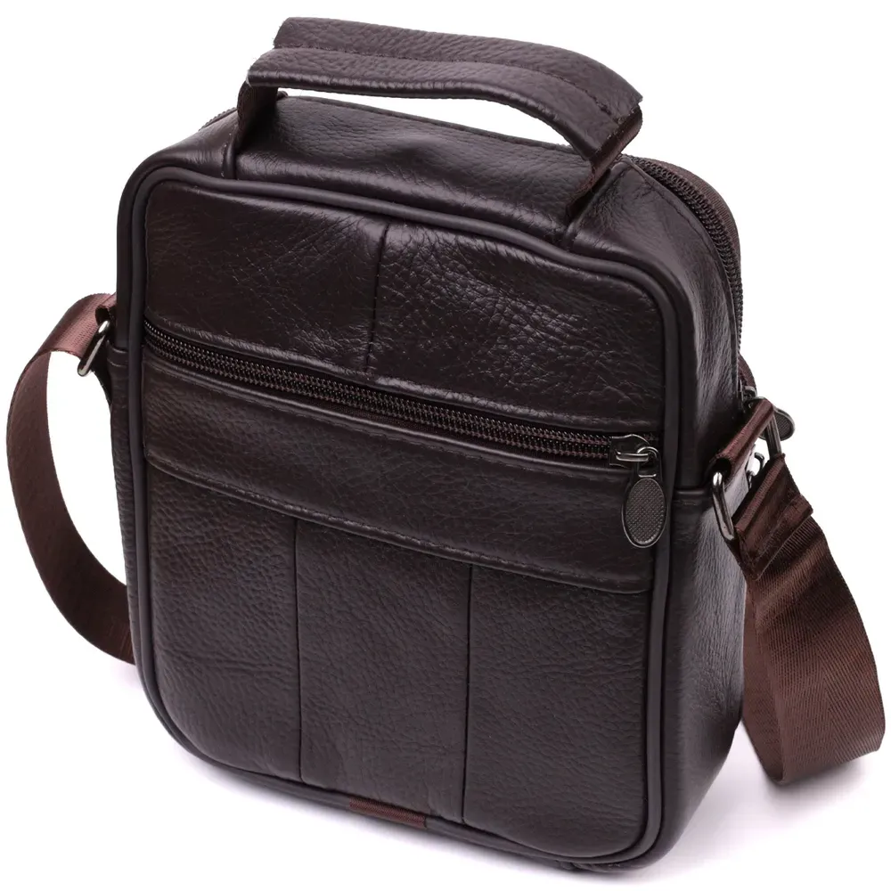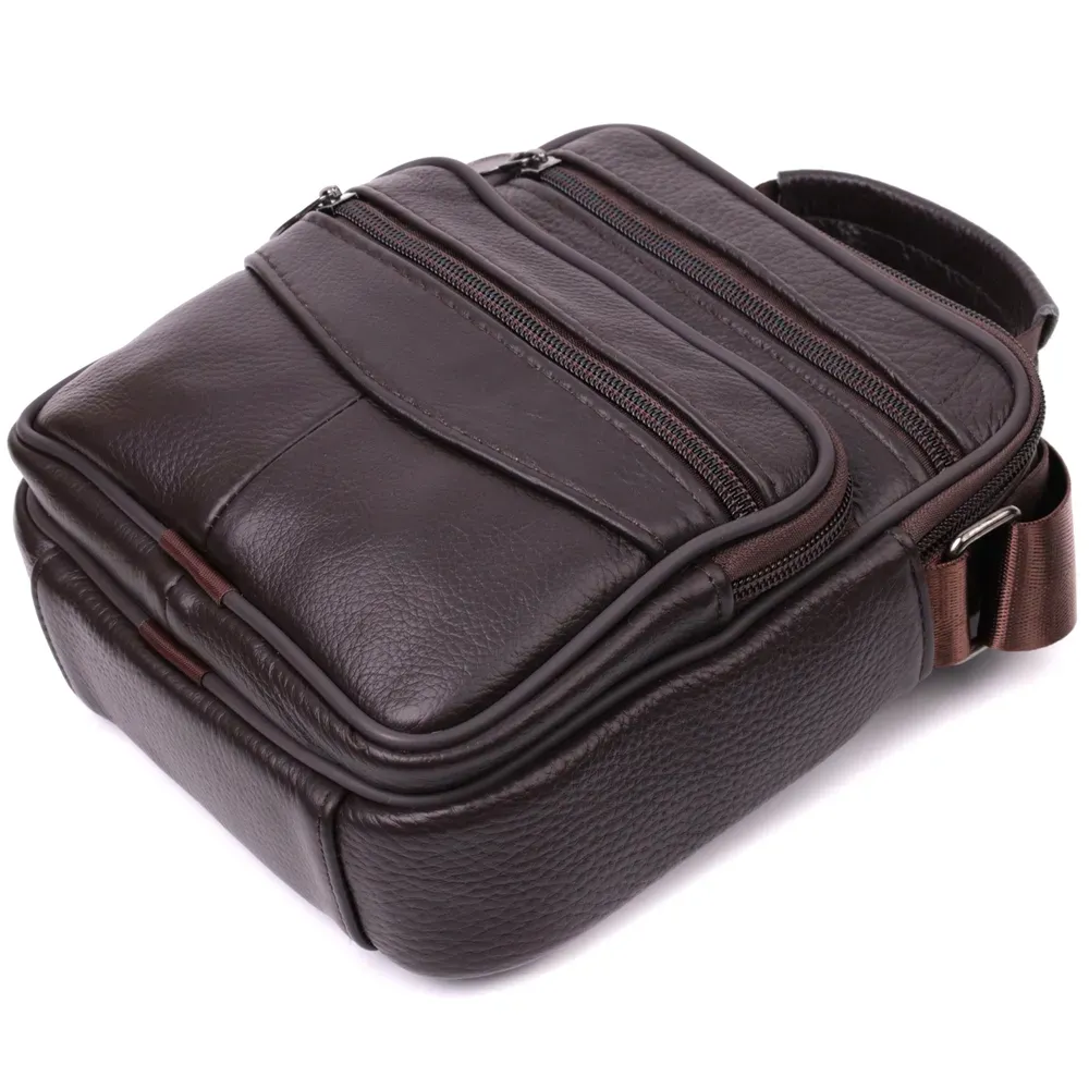 Компактна чоловіча сумка із натуральної шкіри. Аксесуар зовсім не вибагливий у догляді та користується особливою популярністю у чоловіків. У виробі використано якісну фурнітуру та надійну підкладку. По краях аксесуар прошитий рівним рядком. Сумка стане чудовим подарунком для будь-якого чоловіка.