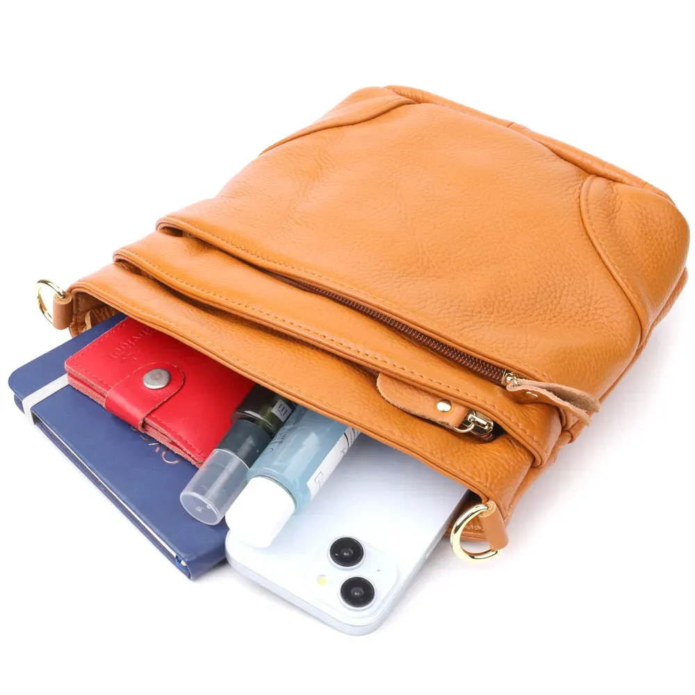 Стильна жіноча сумка на кожен день, виготовлена з натуральної шкіри флотар. Універсальна модель з м'якими закругленими формами та сучасним дизайном ідеально доповнить будь-який образ – від офісного до вечірнього. Містке основне відділення та продумана система кишень забезпечать порядок та зручність при розміщенні особистих речей: телефону, гаманця, косметики та інших дрібниць. Завдяки якісній натуральній шкірі сумка надійно прослужить довгі роки, зберігаючи акуратний вигляд і не вимагаючи складного догляду. Ця модель стане чудовим вибором для активних та стильних жінок, а також чудовим подарунком для будь-якої дівчини!