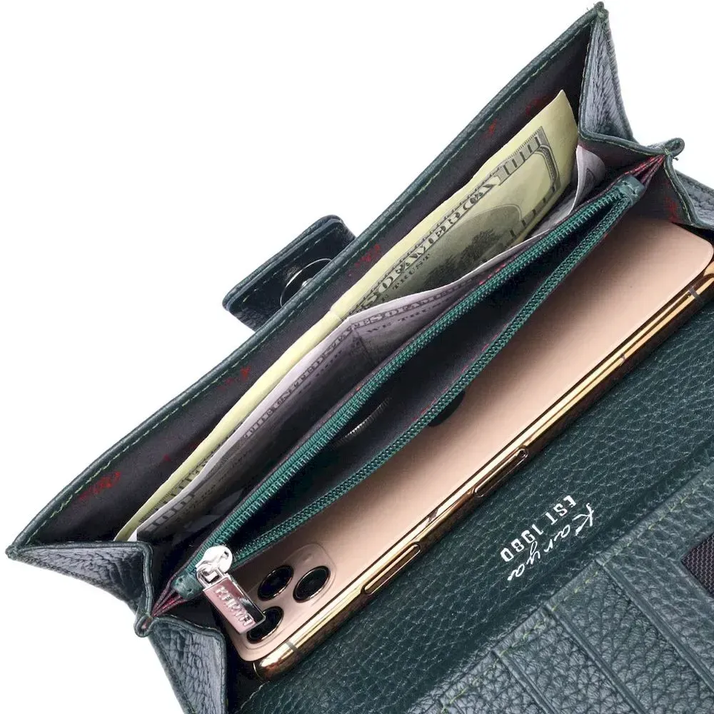 Невероятный женский кошелек из натуральной кожи KARYA 21027 Зеленый