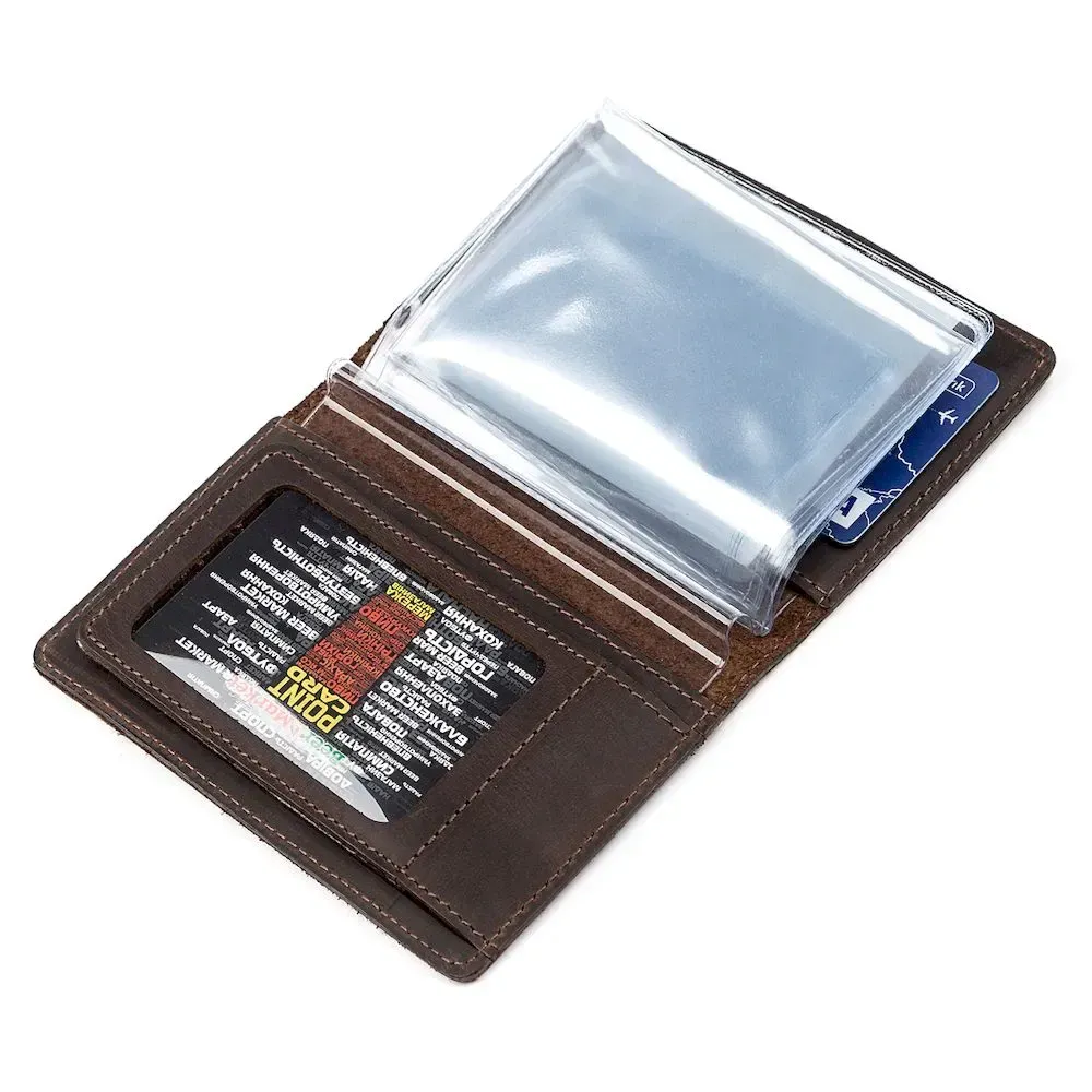 Многофункциональная кожаная обложка, из натуральной винтажной кожи, защитит Ваши документы от потертостей, грязи и других внешних факторов. Данный аксессуар является превосходным решением для подарка мужчине к любому празднику.