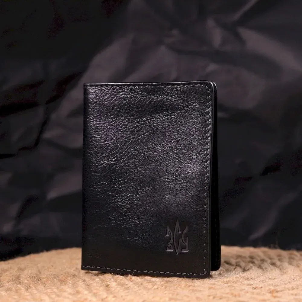 Обложка из глянцевой кожи на военный билет Тризуб ЗСУ GRANDE PELLE 16746 Черная