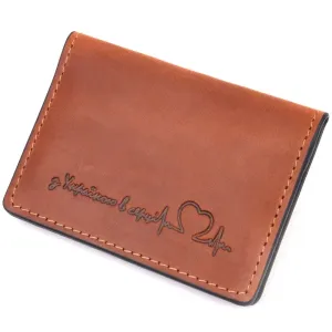 Обложка на автодокументы в винтажной коже Сердце GRANDE PELLE 16704 Светло-коричневая