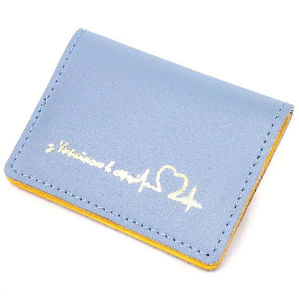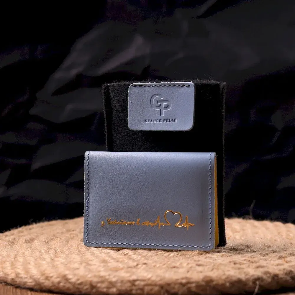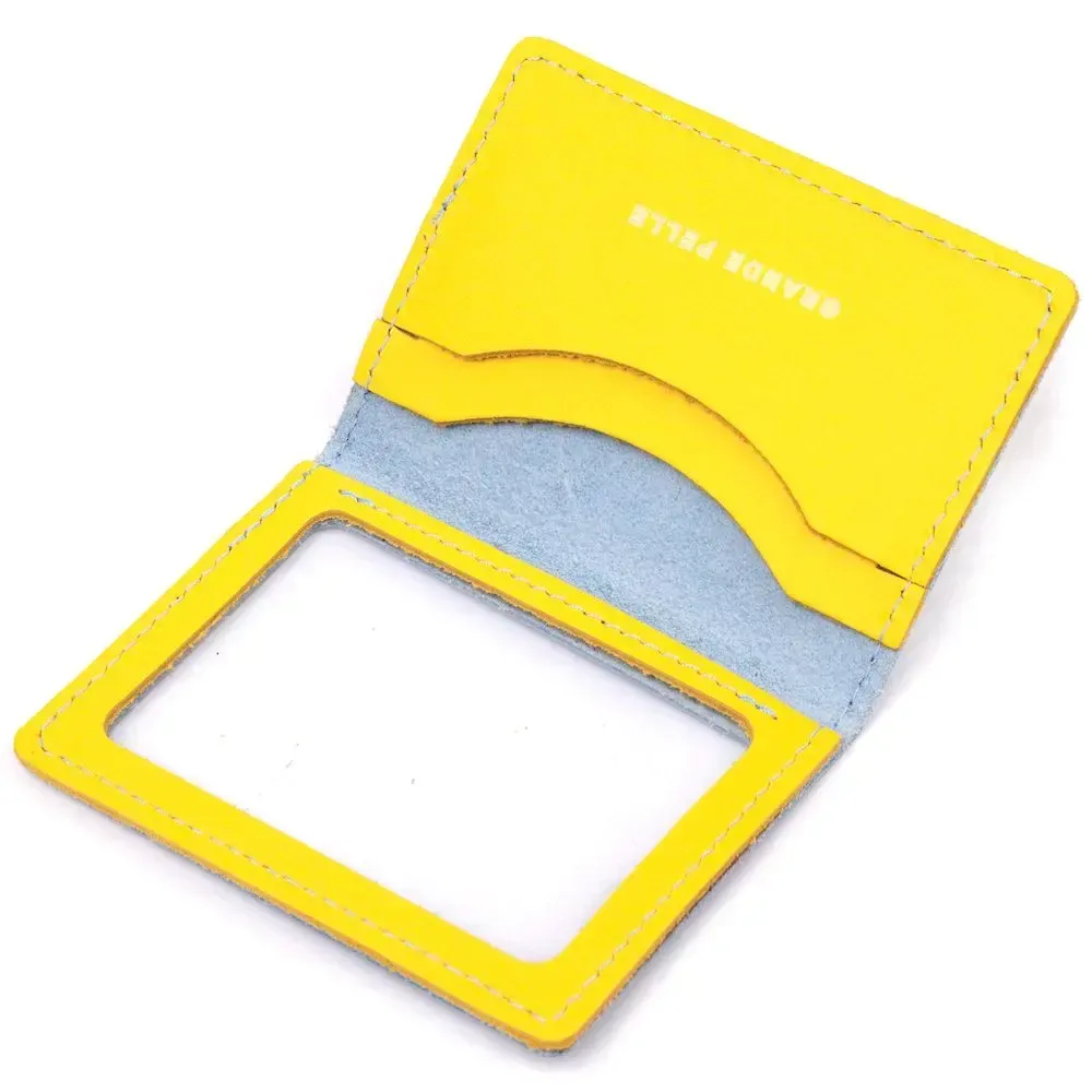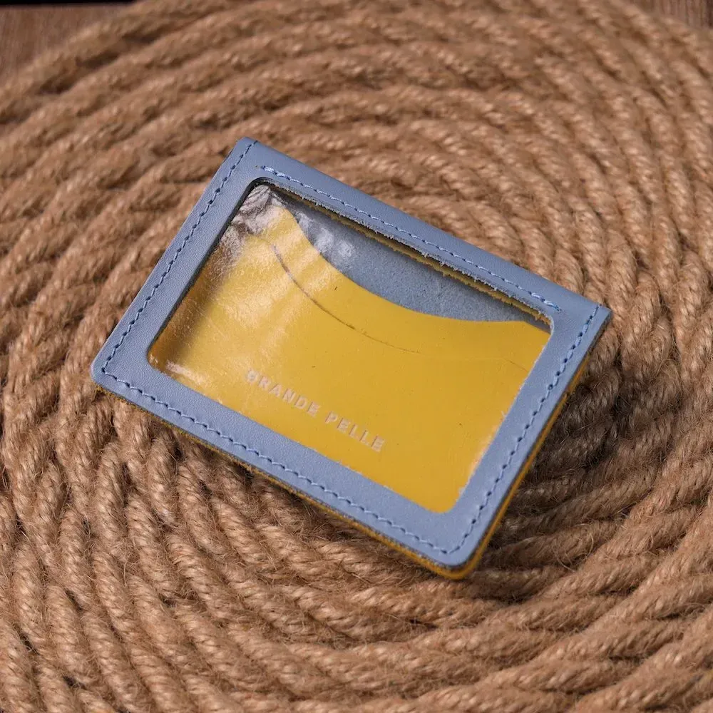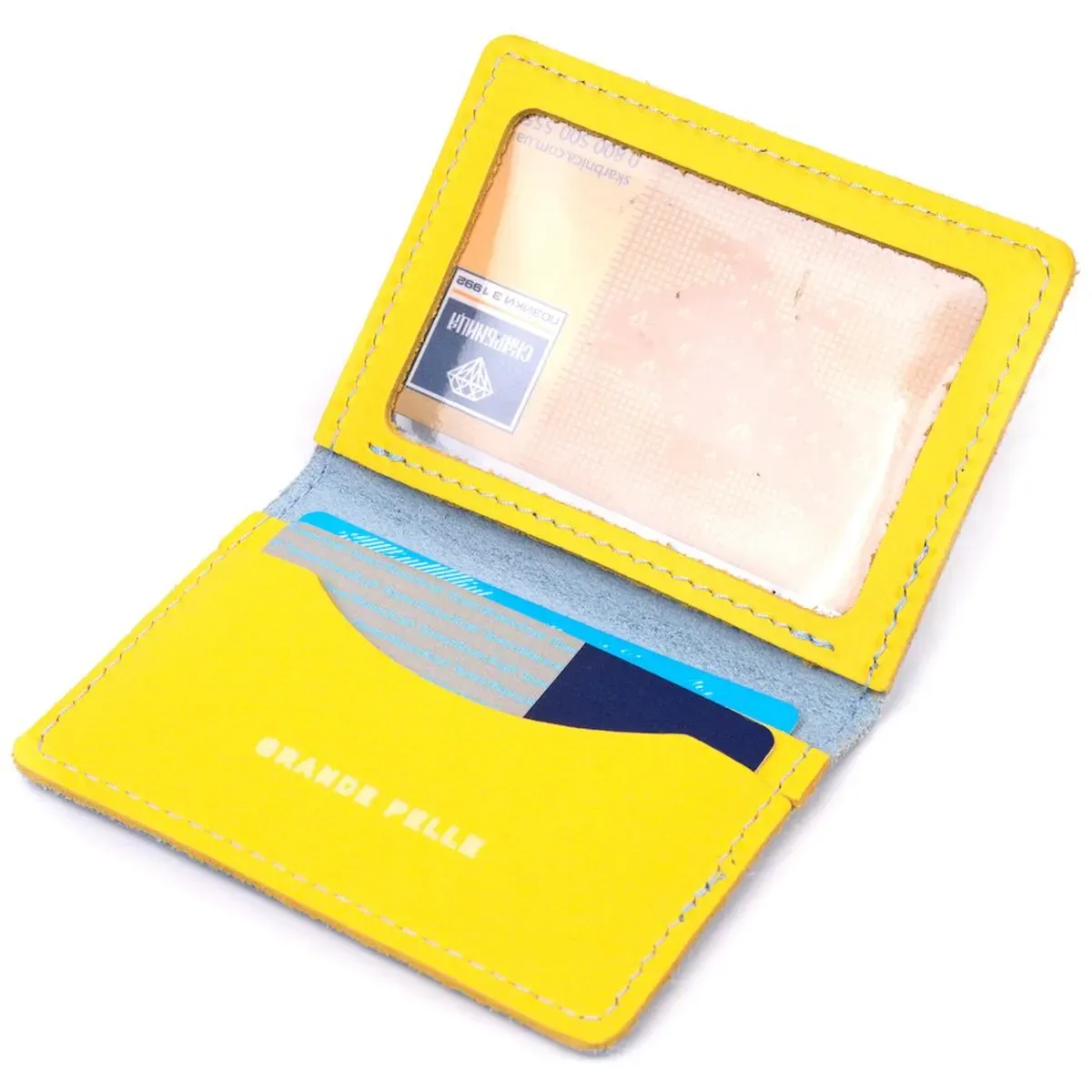 Оригинальная кожаная обложка на документы комби двух цветов Сердце GRANDE PELLE 16707 Желто-голубая