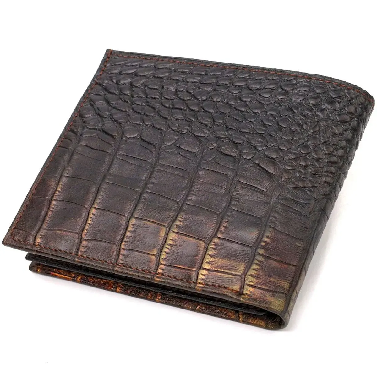 Оригинальное мужское портмоне из натуральной фактурной кожи с тиснением под крокодила CANPELLINI 21784 Темно коричневое