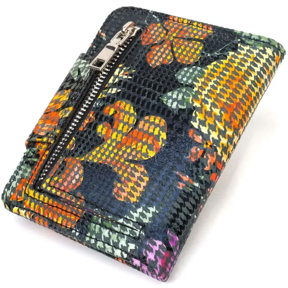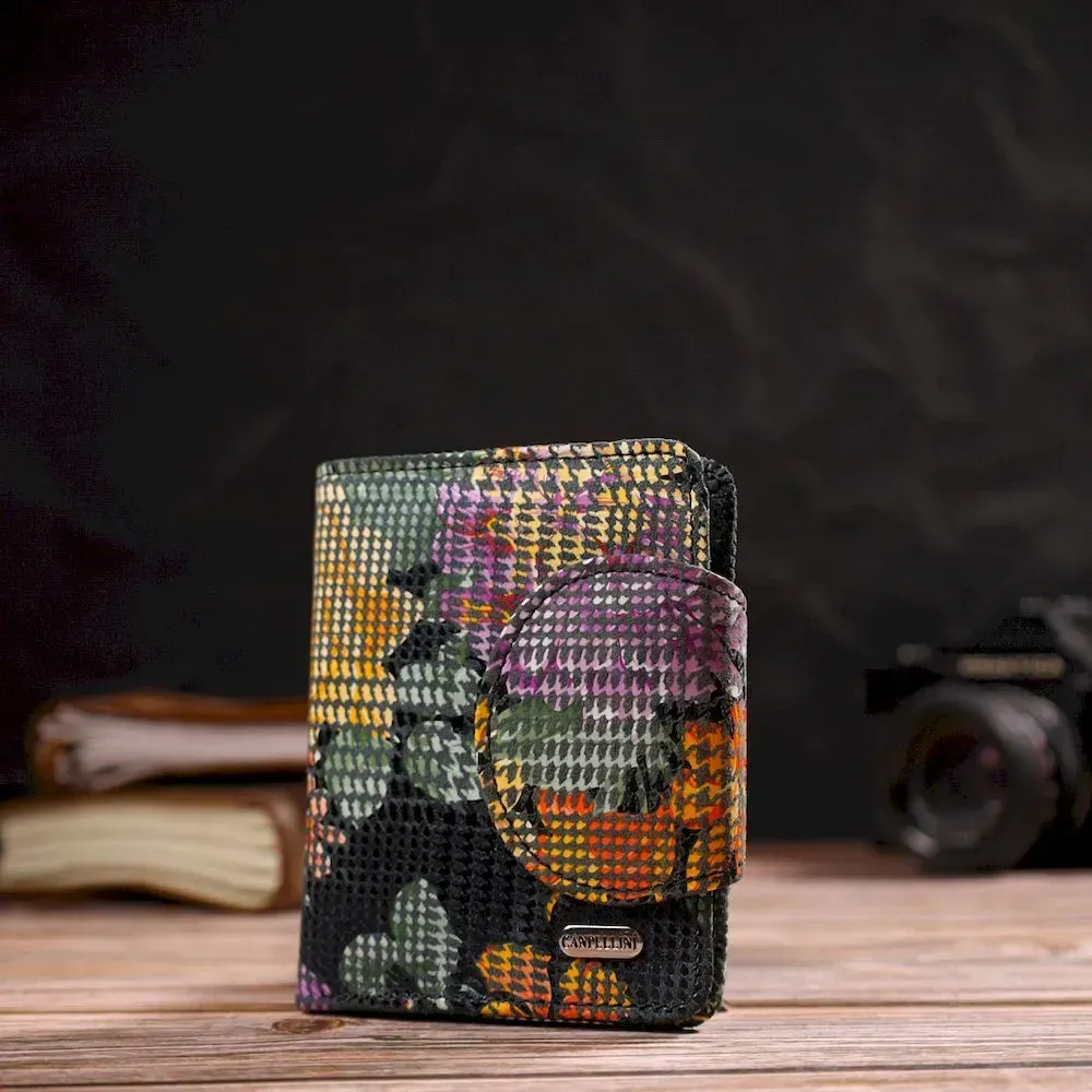 Оригинальное женское портмоне среднего размера из натуральной фактурной кожи CANPELLINI 21804 Разноцветное