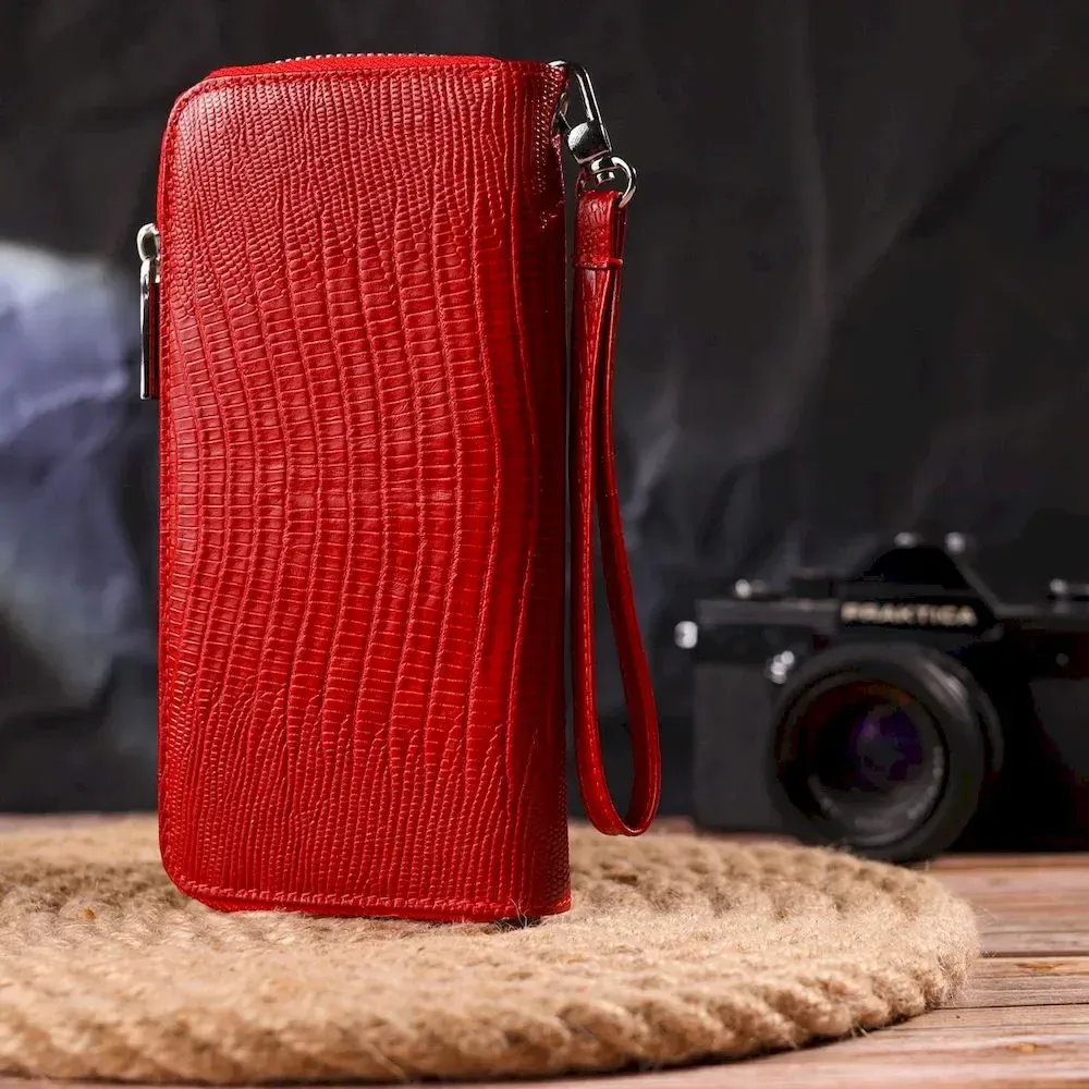 Оригинальный кошелек для женщин из натуральной фактурной кожи CANPELLINI 21613 Красный