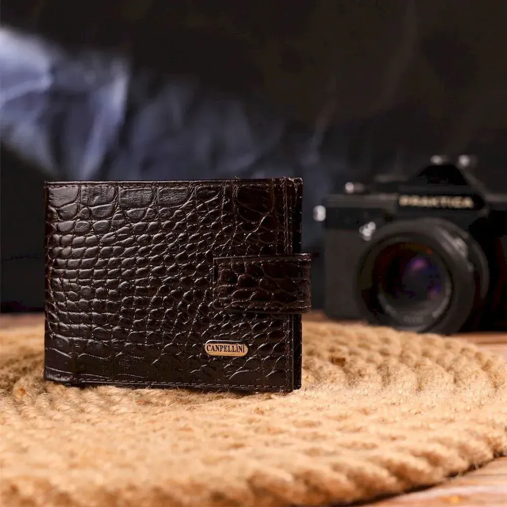 Оригинальный мужской кошелек из натуральной фактурной кожи CANPELLINI 21513 Коричневый