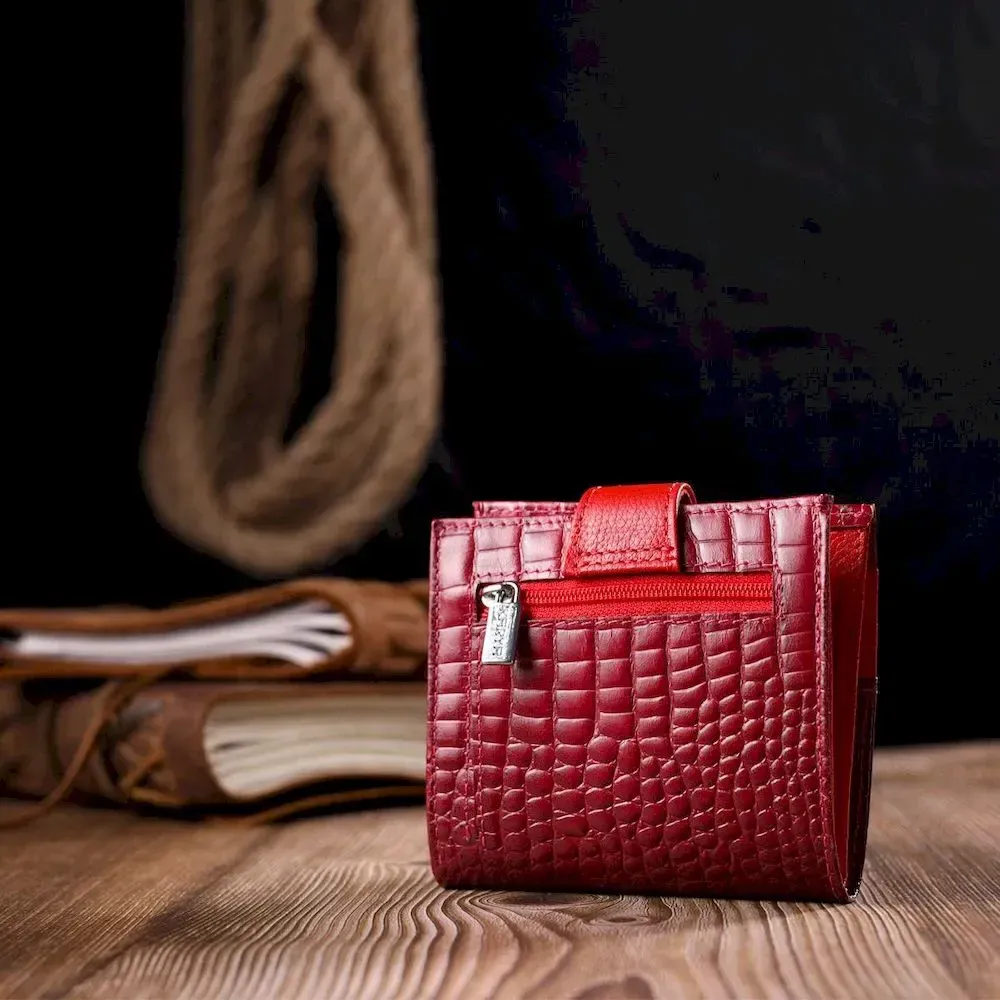 Оригинальный женский бумажник из натуральной фактурной кожи KARYA 20949 Красный