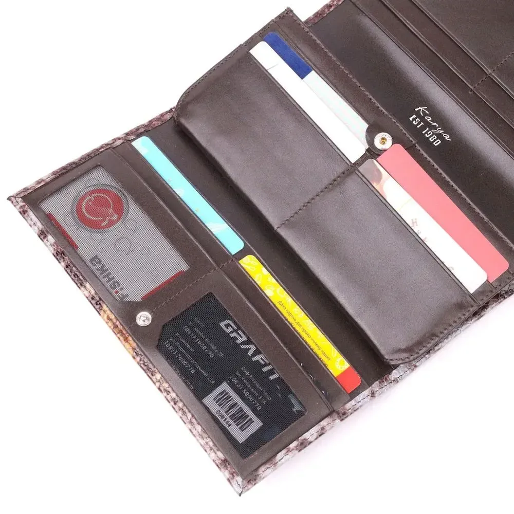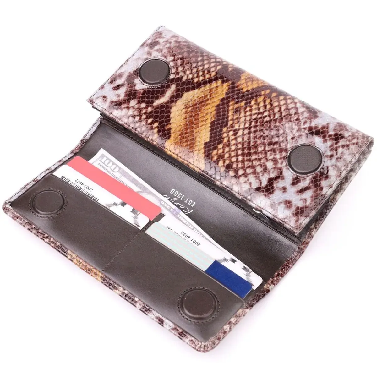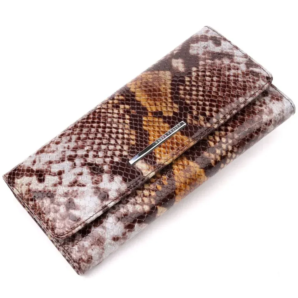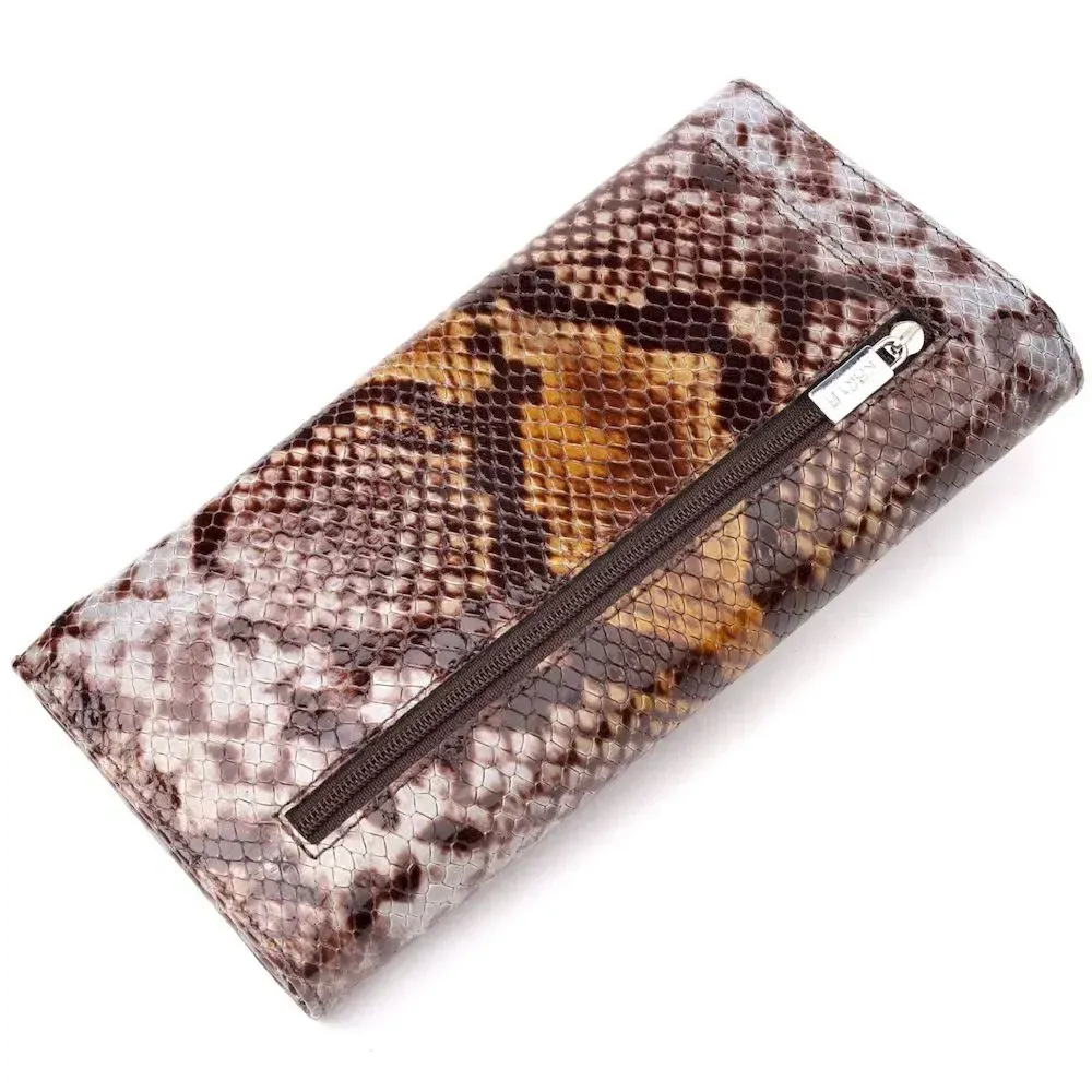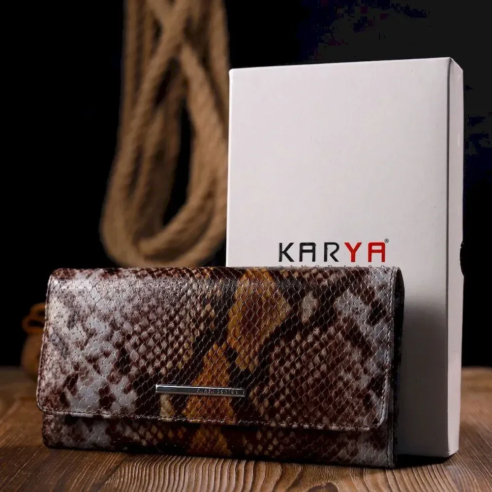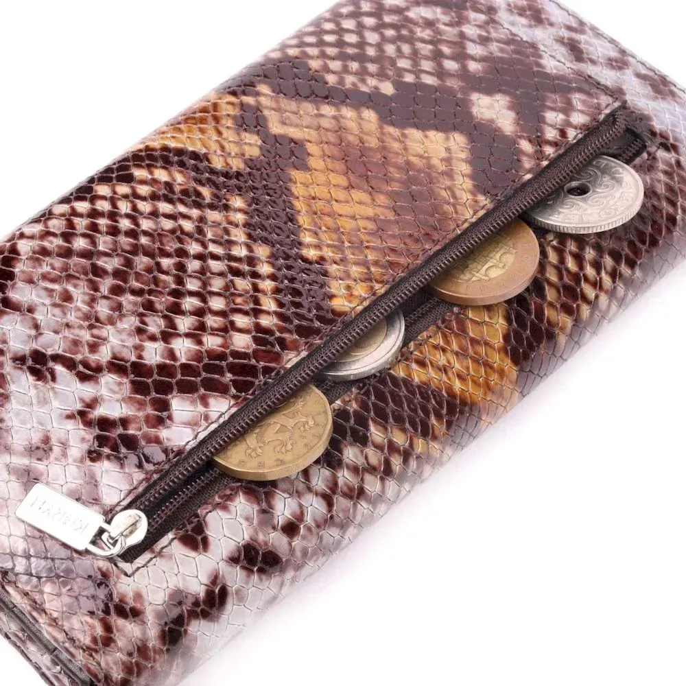 Оригинальный женский кошелек из натуральной фактурной кожи под змею KARYA 21012 Коричневый
