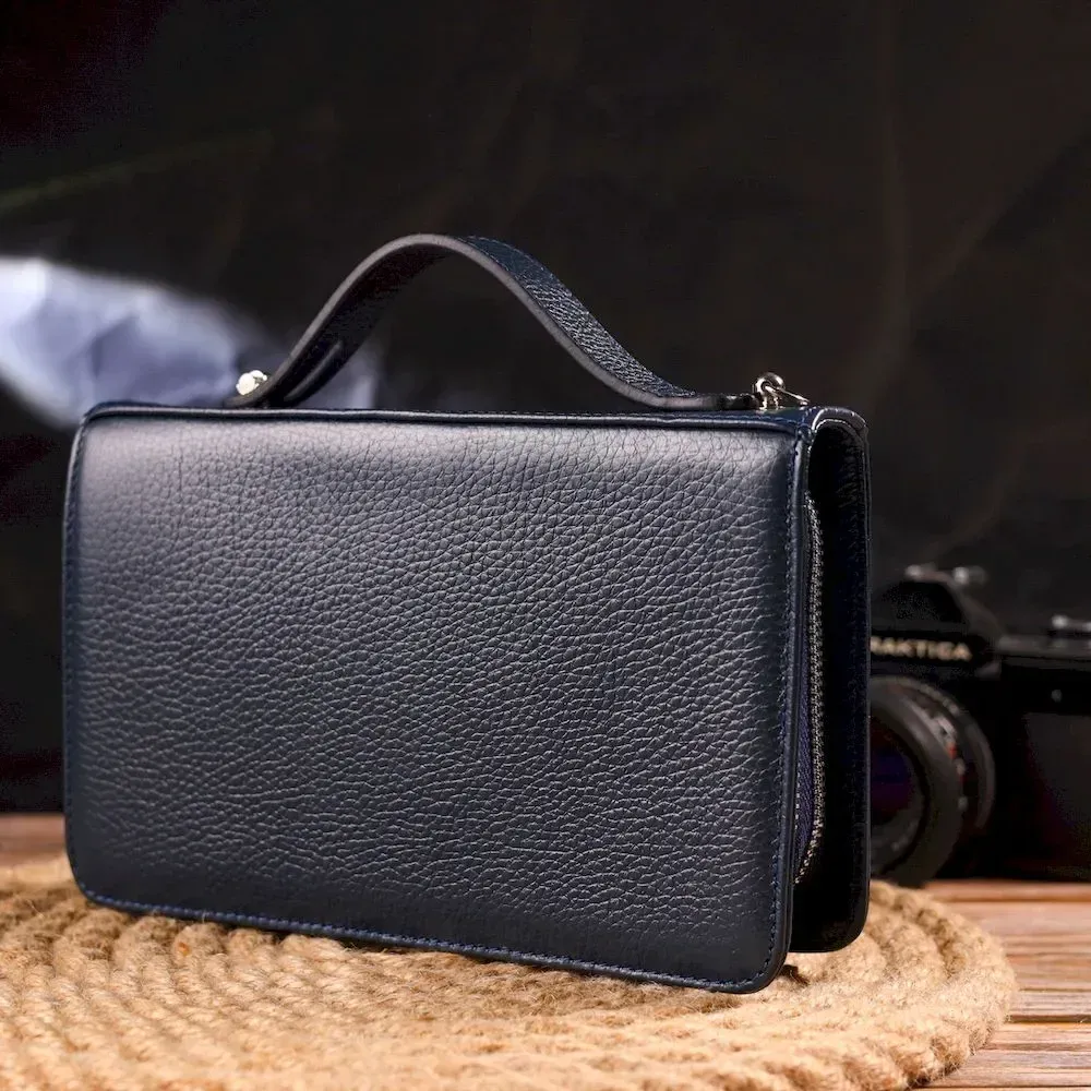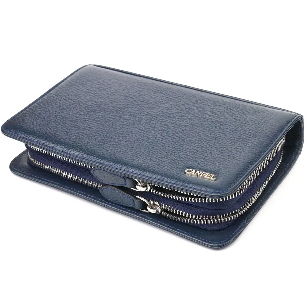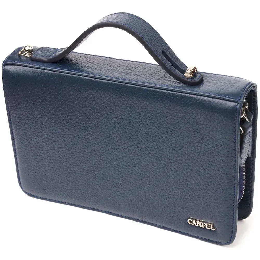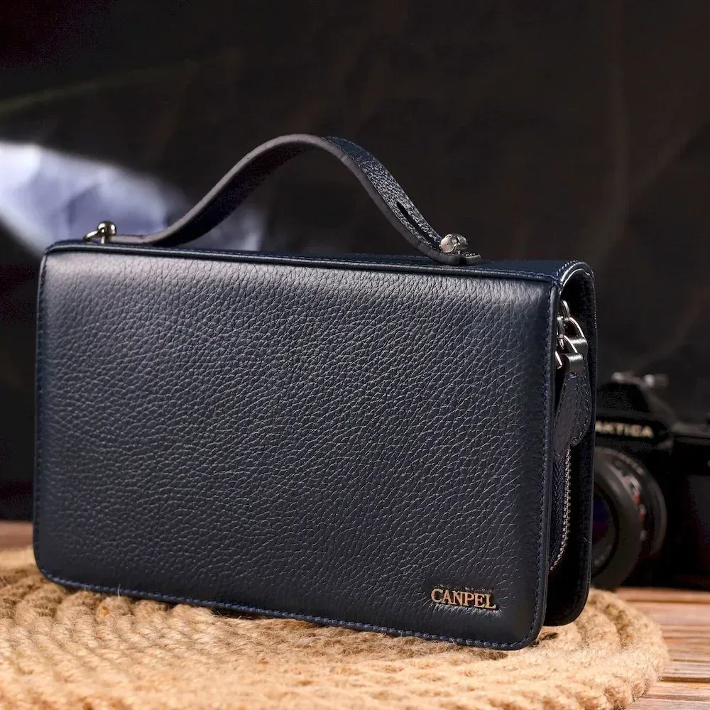 Отличная мужская барсетка на два отделения из натуральной зернистой кожи CANPELLINI 21568 Синяя