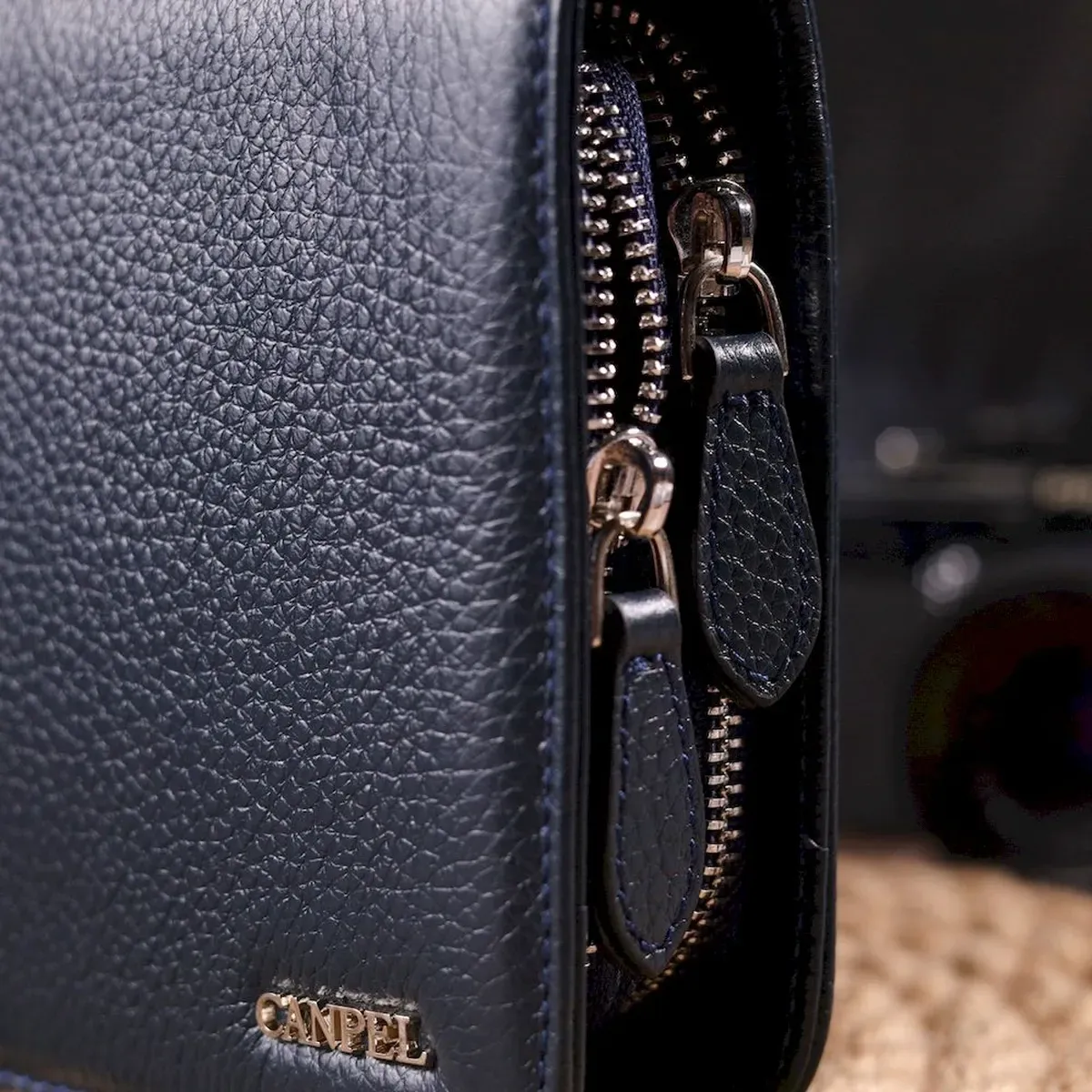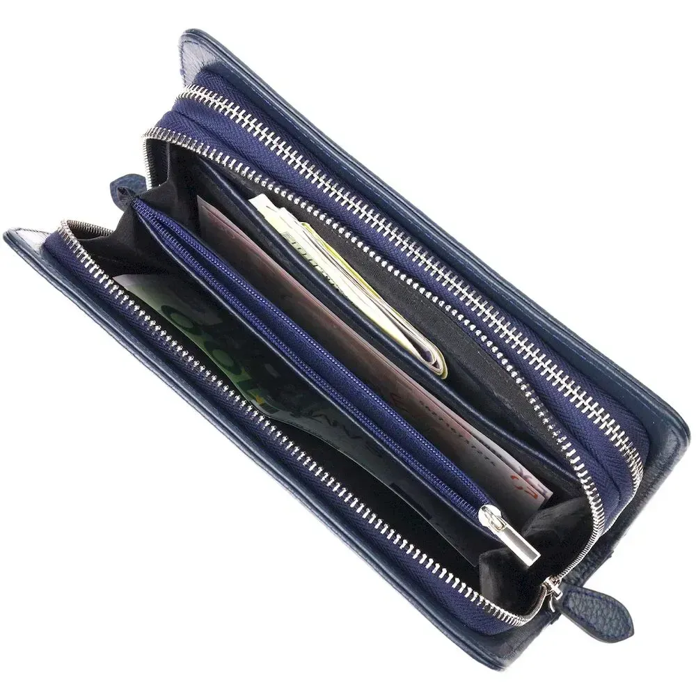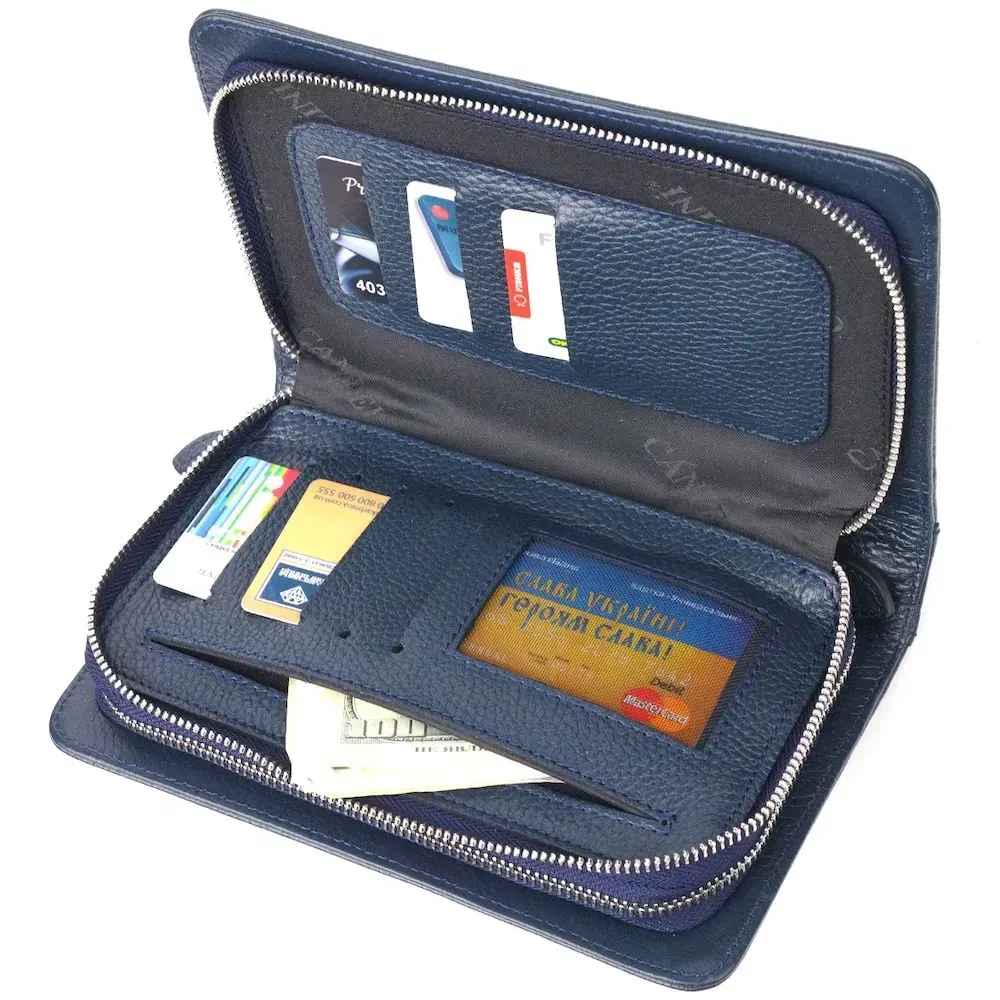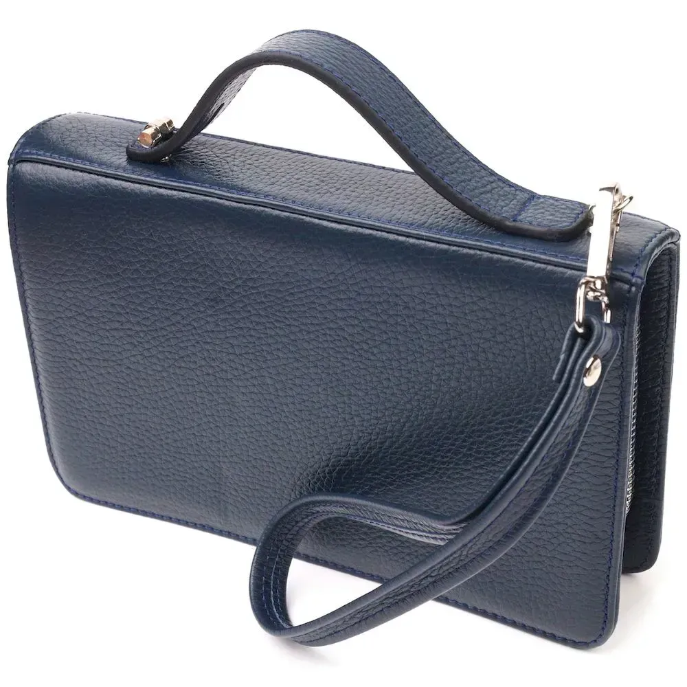 Отличная мужская барсетка на два отделения из натуральной зернистой кожи CANPELLINI 21568 Синяя