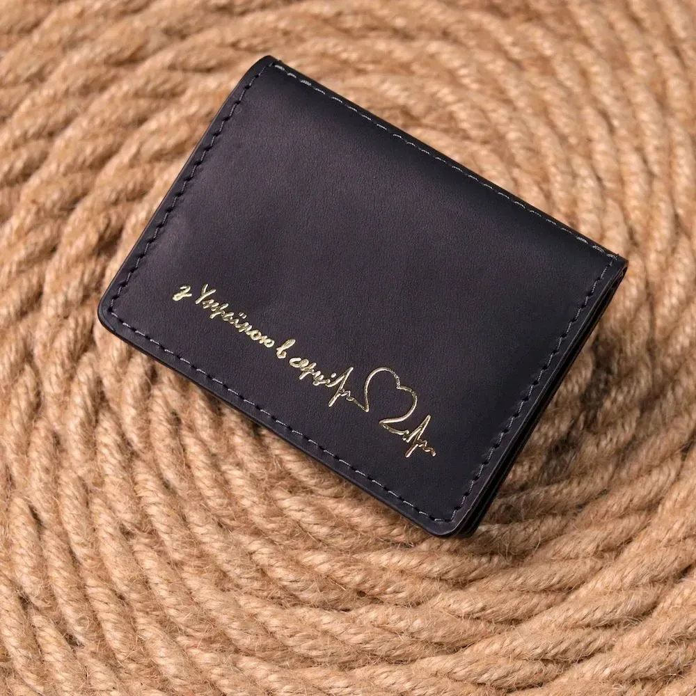 Патриотичная кожаная обложка на авто документы, с надписью “З Україною в серці” на лицевой стороне.Изделия из кожи всегда считались отличным подарком, не зависимо от пола и возраста. Изделие пошито с итальянской качественной кожи. По краям модель прошита черной строчкой в дизайн изделия. Изделие небольшого размера и с легкостью поместится в карман или маленькую сумку. В комплекте к изделию идет фирменный фетровый чехол.