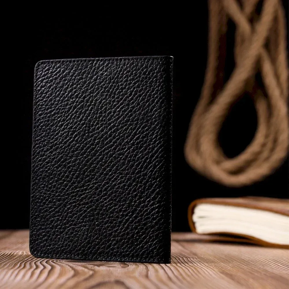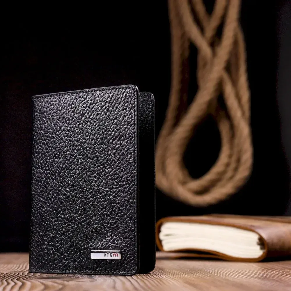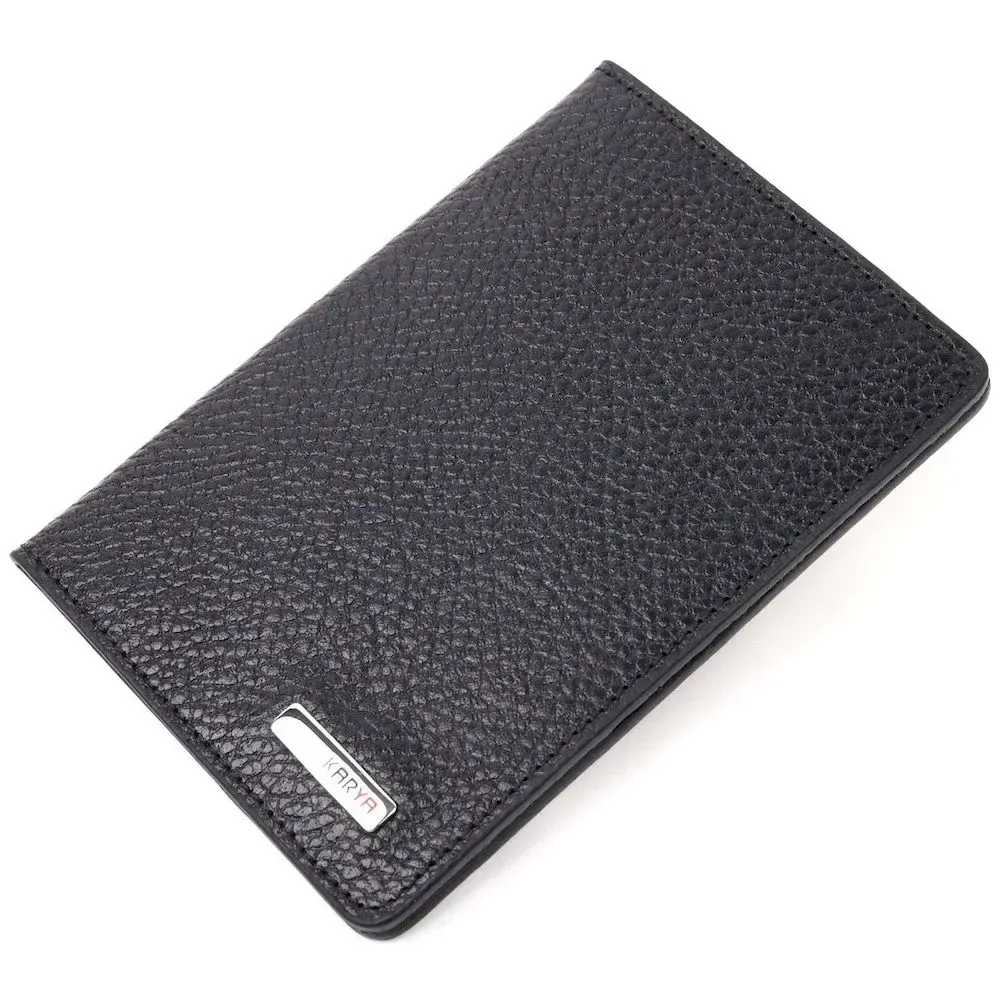Отличная обложка на паспорт из зернистой кожи KARYA 20926 Черный