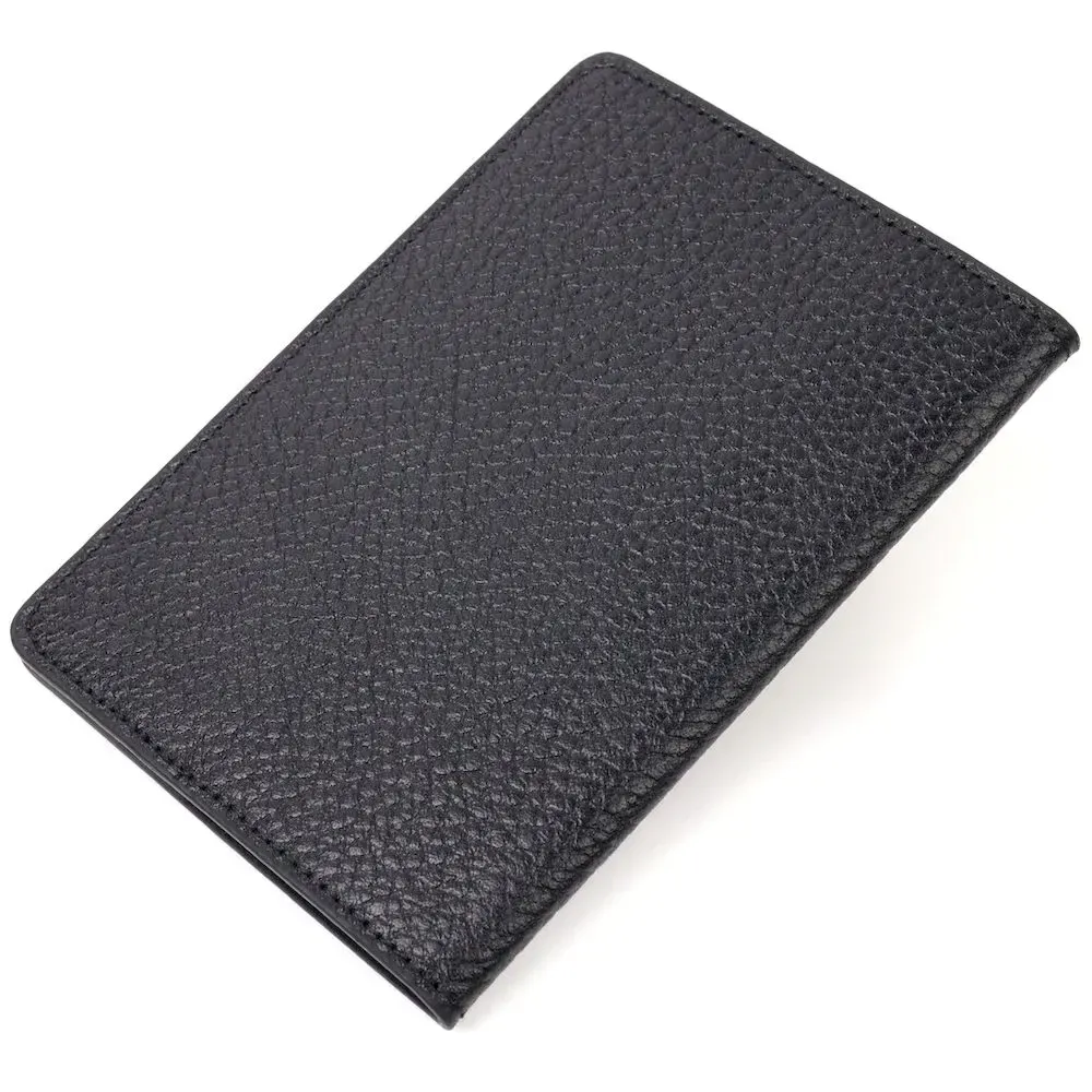 Мужская классическая обложка на паспорт, черного цвета из высококачественной зернистой кожи. Современный высококлассный аксессуар, который станет идеальным подарком для близкого человека по любому поводу. Обложка упакована в фирменную коробочку.