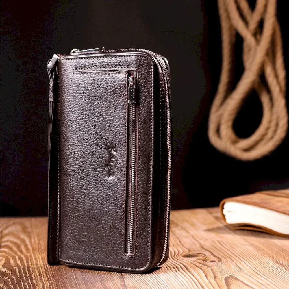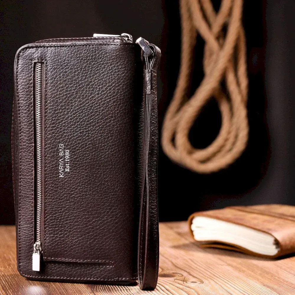 Отличный мужской клатч KARYA 20908 кожаный Коричневый