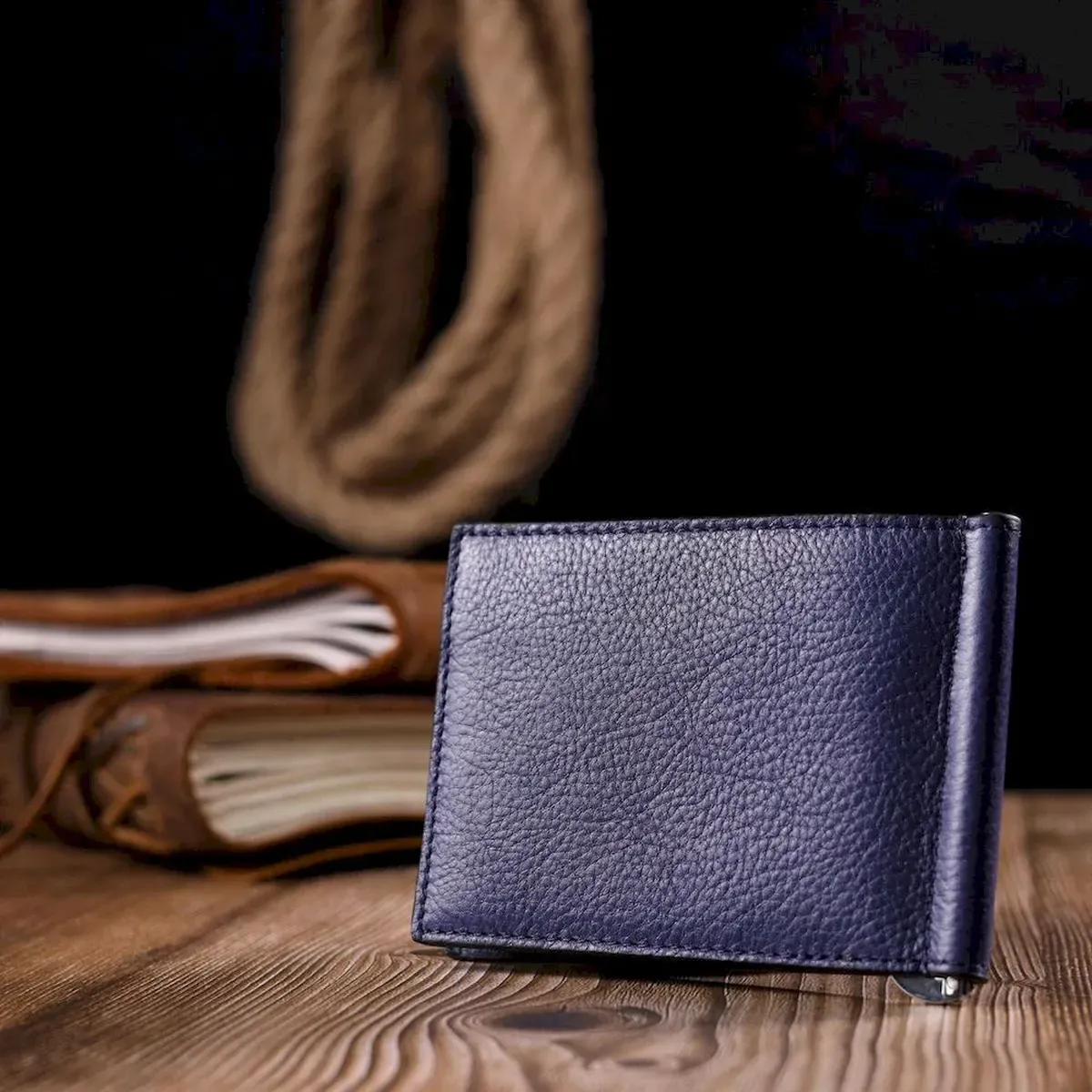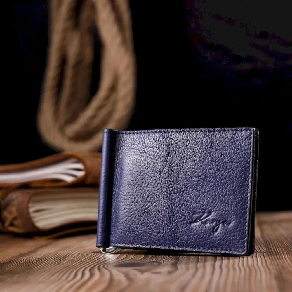 Отличный мужской зажим из зернистой кожи KARYA 21057 Синий