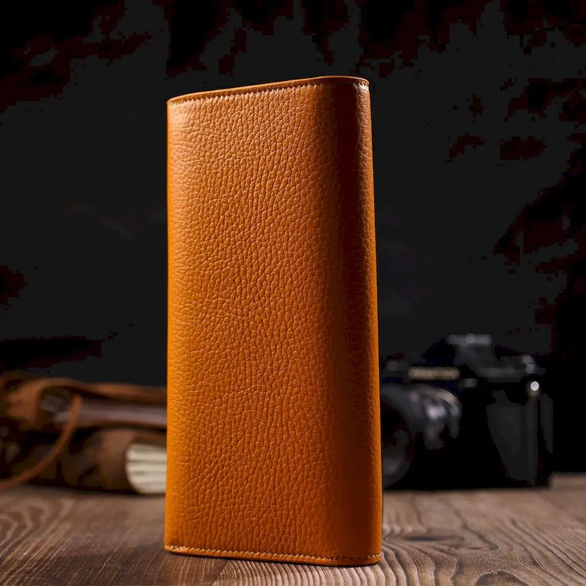 Модный женский кошелек из натуральной кожи флотар, для которой характерна прочность, износостойкость и зернистая фактура. Аксессуар состоит из одного широкого отделения для купюр, двенадцати ячеек для пластиковых карт, одного прилегающего кармана и монетницы на молнии. В изделии использована качественная фурнитура золотистого цвета. Закрывается кошелек клапаном на кнопку. Покупая этот кожаный кошелек, Вы не только приобретаете стильную вещь, но и получаете качественный аксессуар, который прослужит не один год.