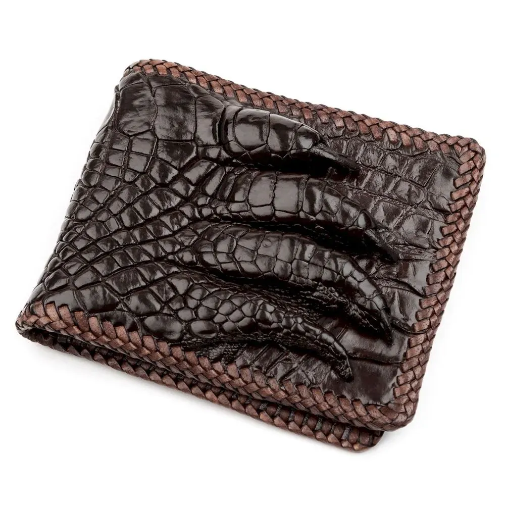 Портмоне из натуральной кожи крокодила. Изделие декорировано настоящей лапой крокодила, которая добавляет аксессуару оригинальности. В качестве дополнительной отделки по внешнему краю аксессуара сделана оплетка из гладкой кожи на тон светлее кошелька . Изделия из кожи крокодила всегда считались большой роскошью, так как в мире не так уж много компаний, которые занимаются выделкой такой кожи, поскольку этот процесс действительно чрезвычайно трудоемкий.