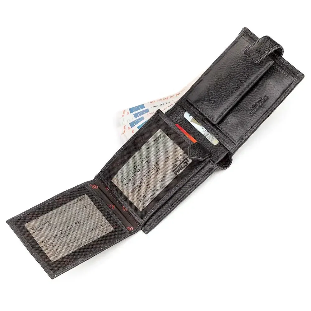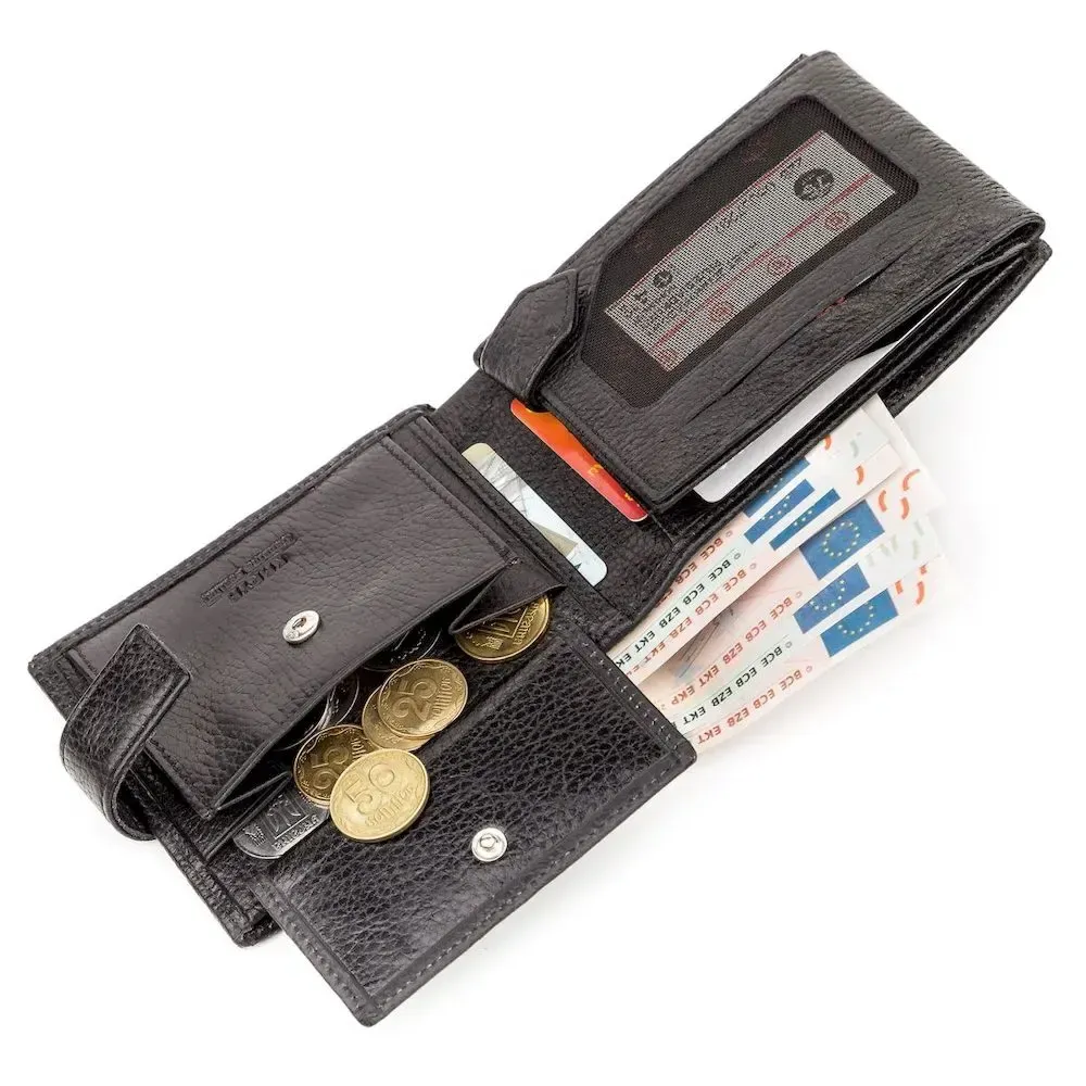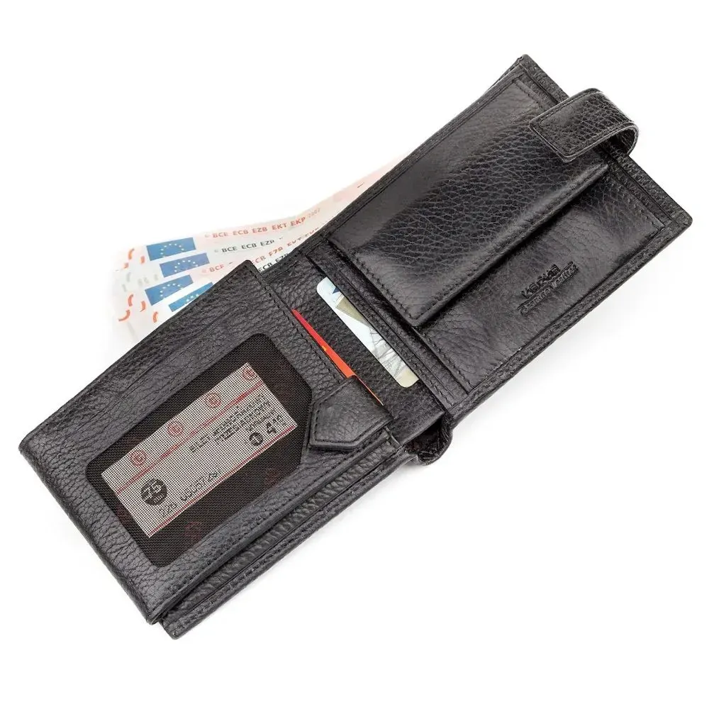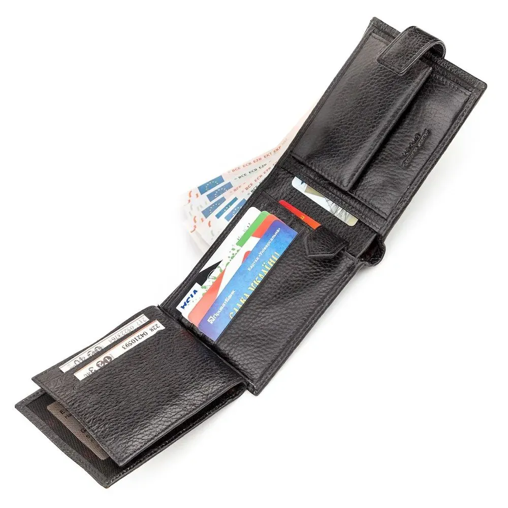 Надежный мужской кошелек, из натуральной зернистой кожи. Своей компактностью и презентабельным видом кошелек подчеркнет потрясающий стиль своего владельца.
