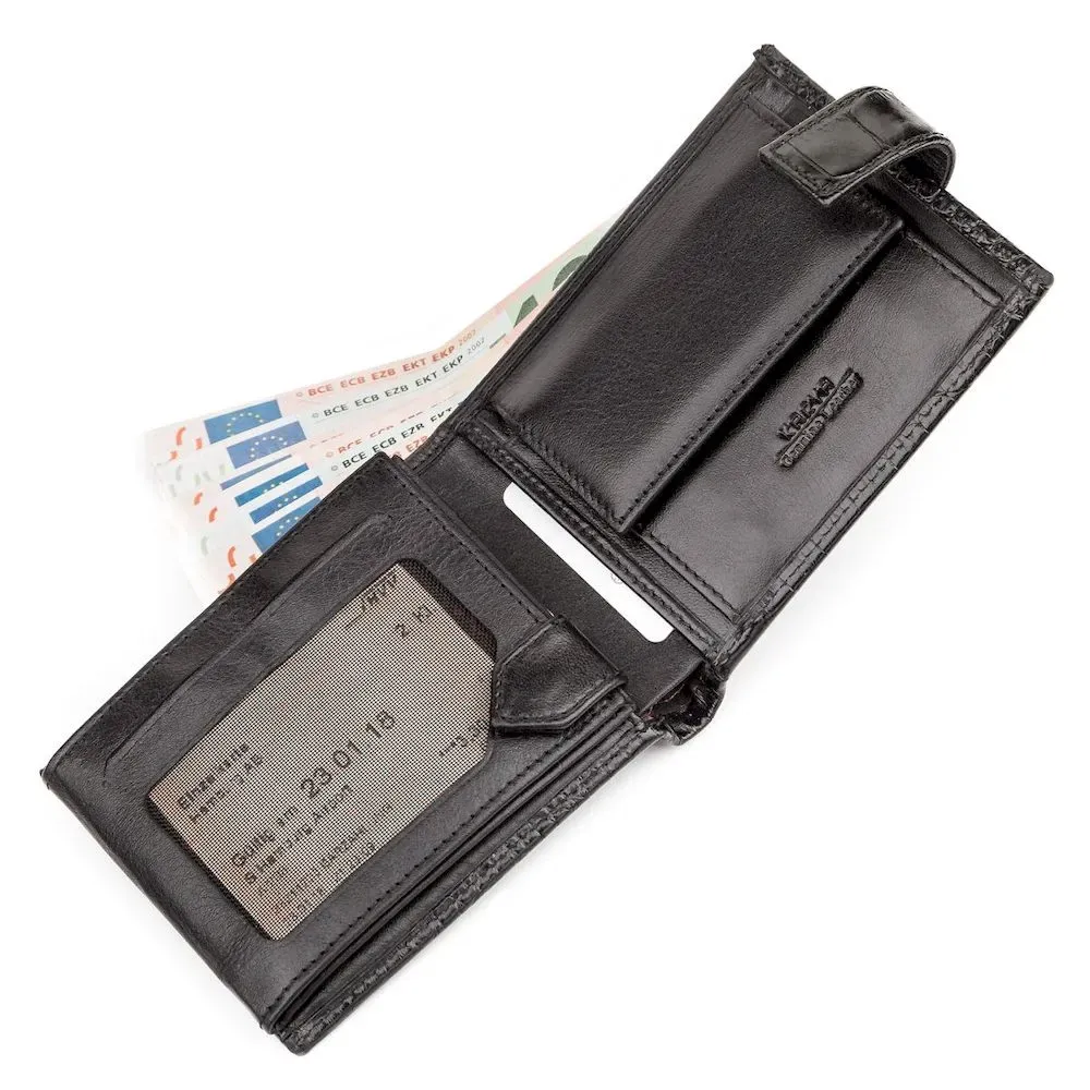 Надежный мужской кошелек, из натуральной кожи с фактурой под крокодила. Своей компактностью и презентабельным видом кошелек подчеркнет потрясающий стиль своего владельца.
