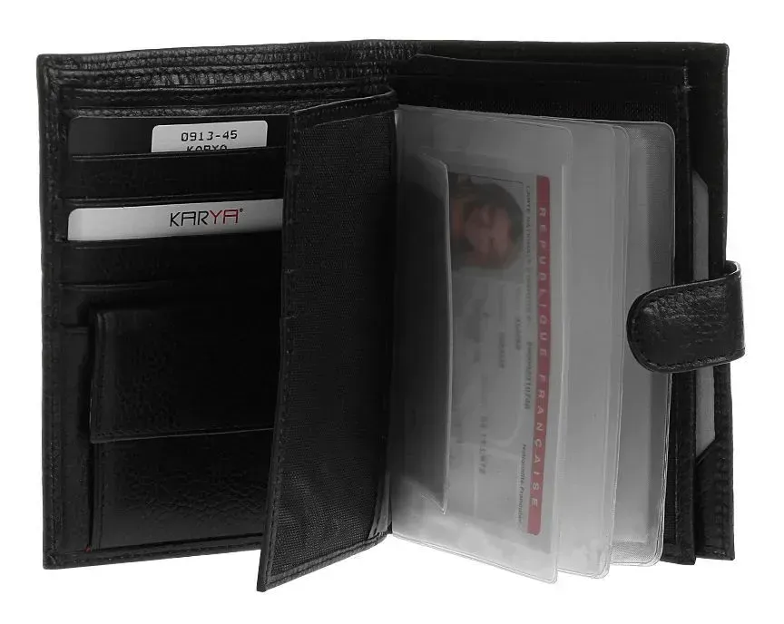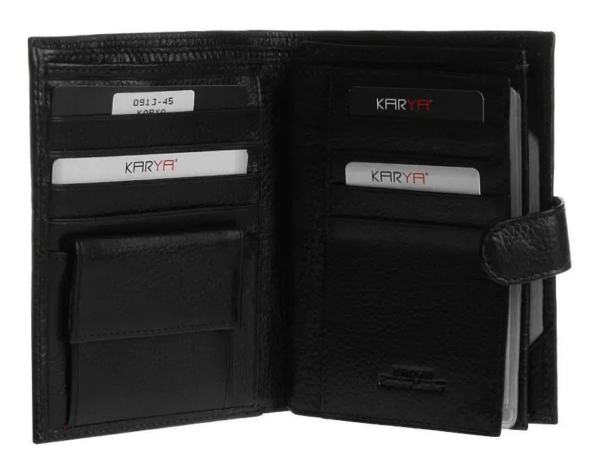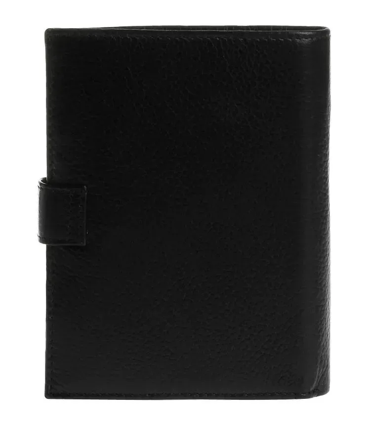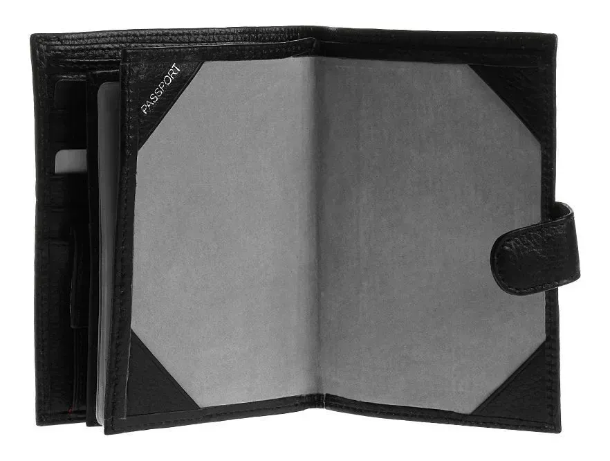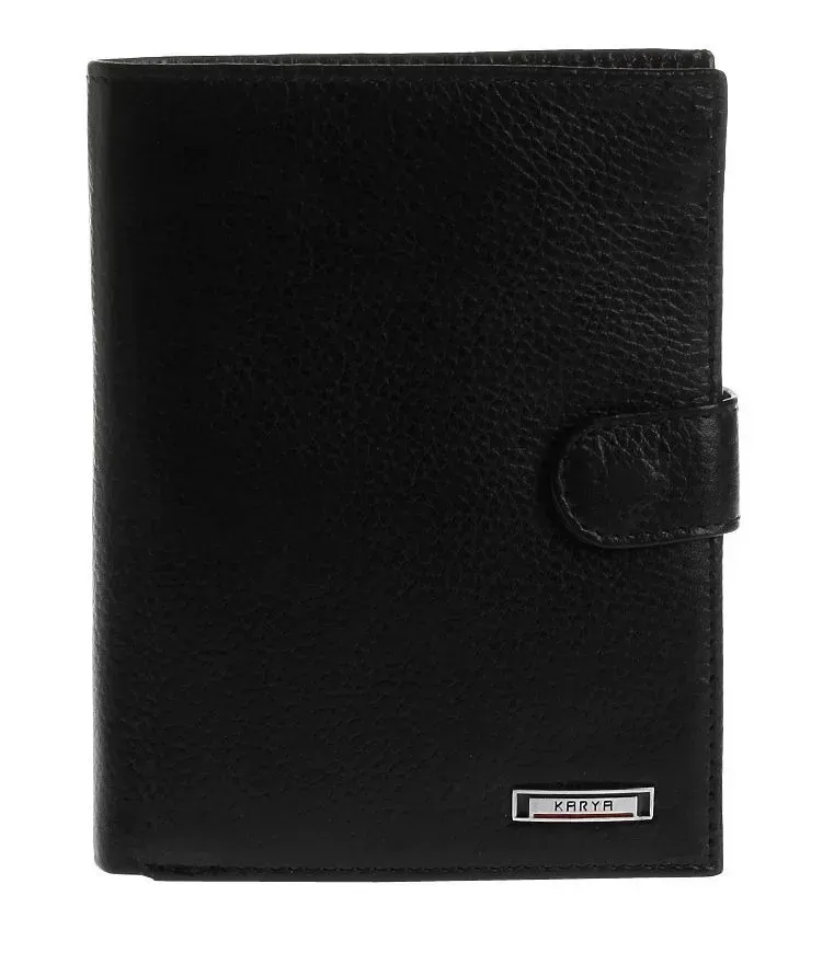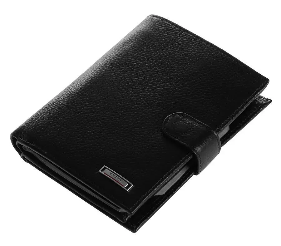 Вместительный мужской кошелек черного цвета. Аксессуар выполнен из натуральной высококачественной зернистой кожи, премиум класса, приятной на ощупь. Изделие упаковано в фирменную коробочку. Качество аксессуара на высоком уровне, так что прослужит своему владельцу длительное время.
