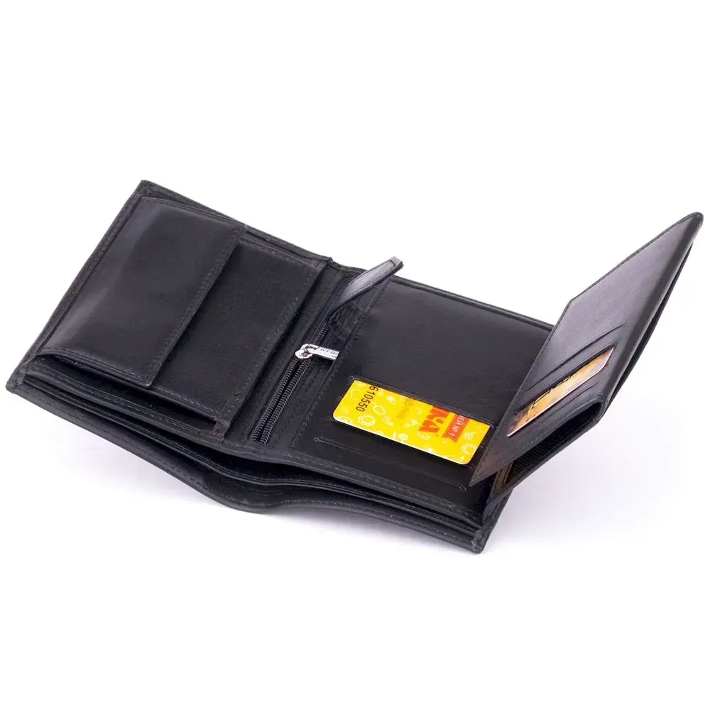 Вместительное портмоне, из натуральной гладкой кожи. Очень красивый и стильный аксессуар, который будет отличным дополнением к стильному образу мужчины. Кошелек упакован в фирменную коробочку.