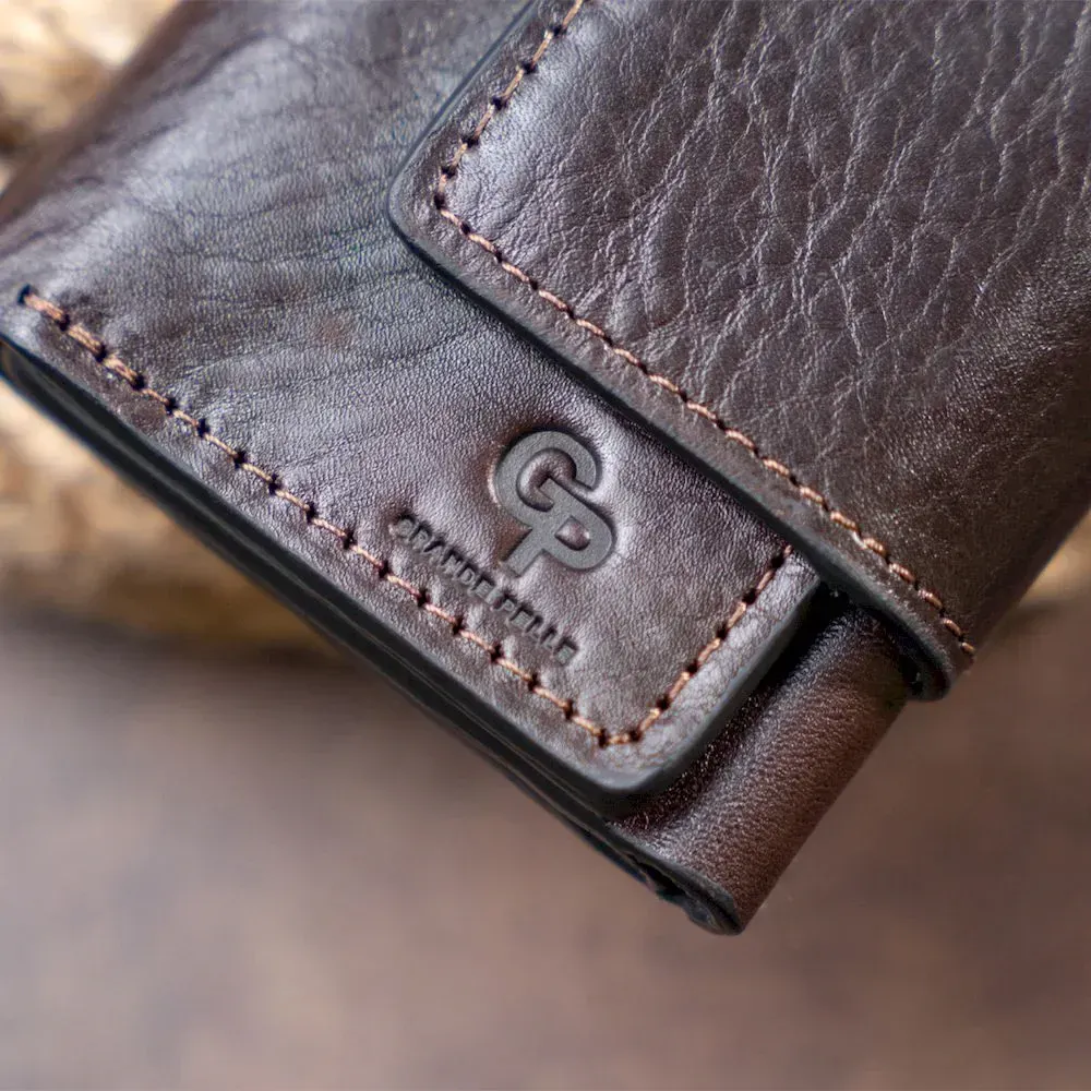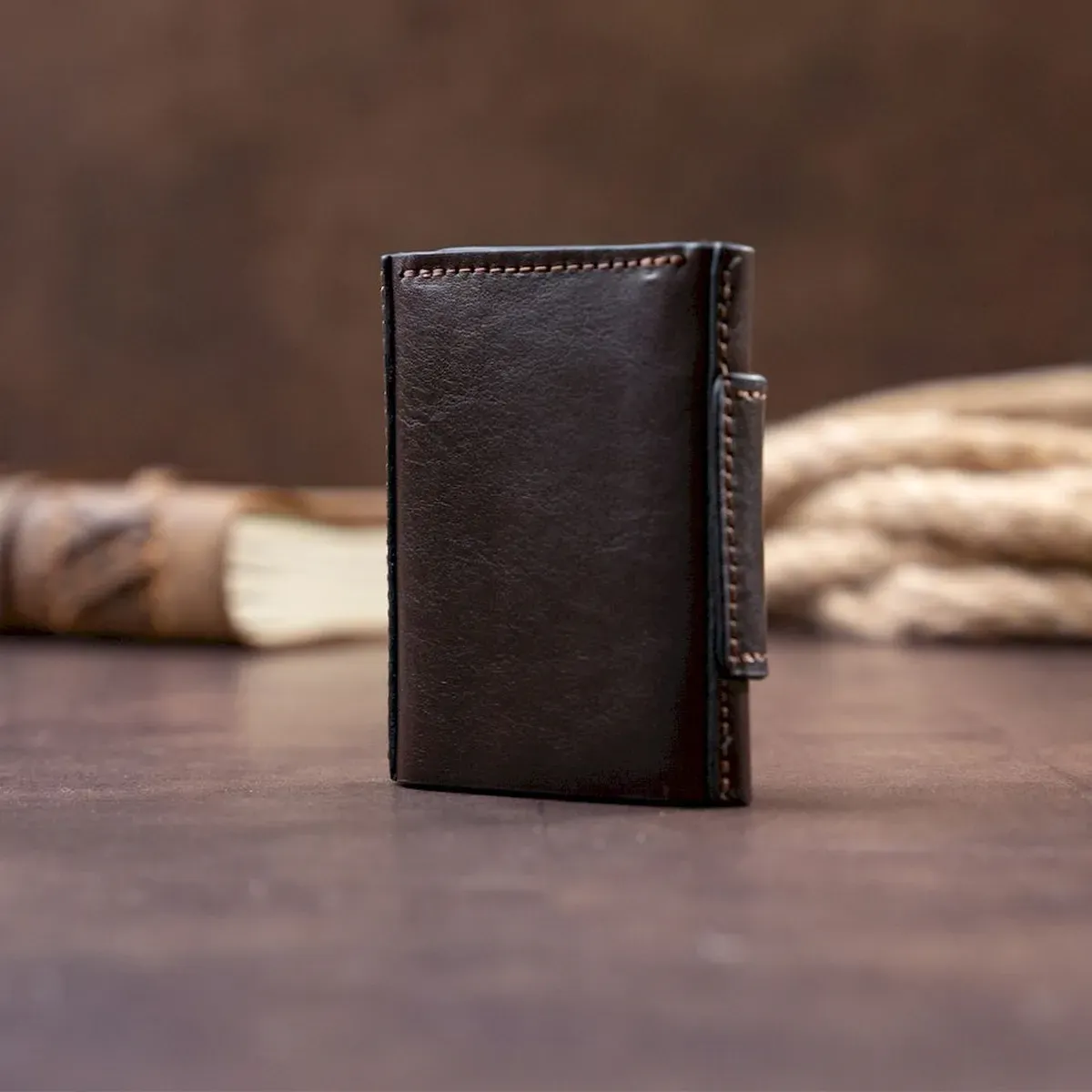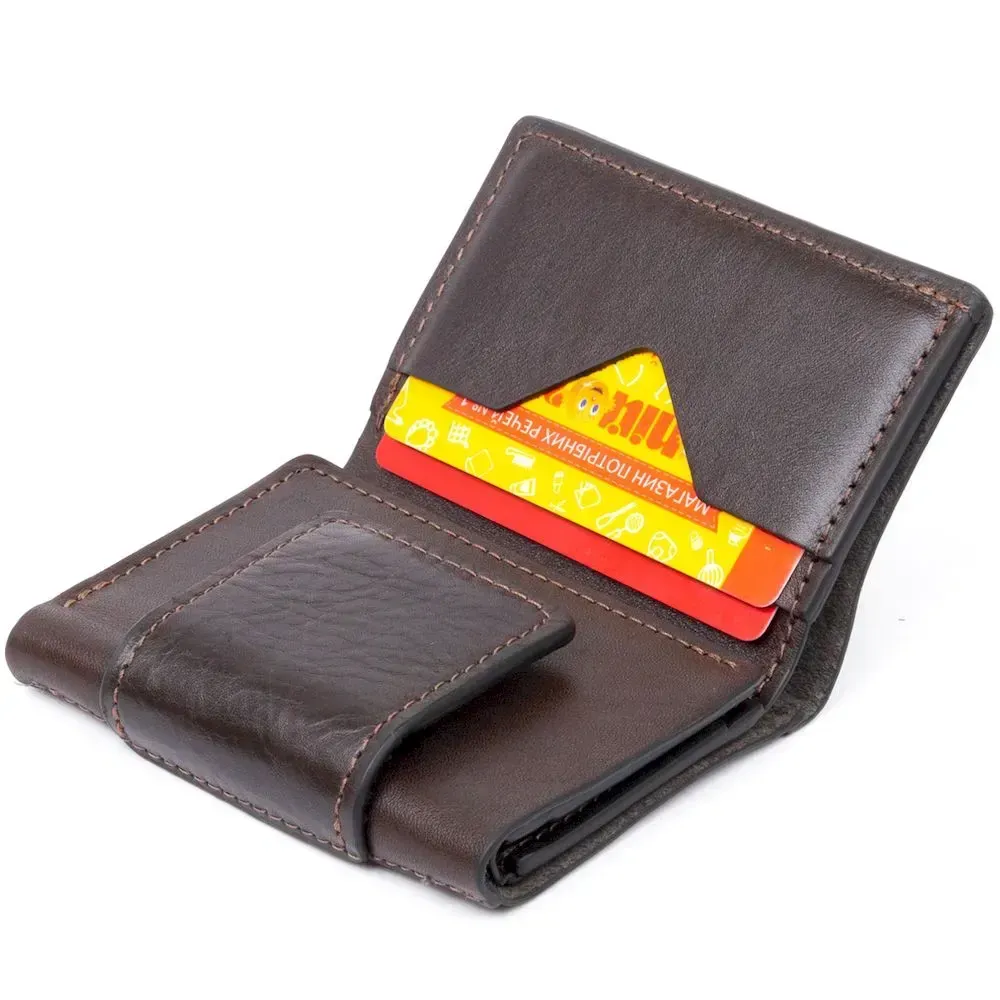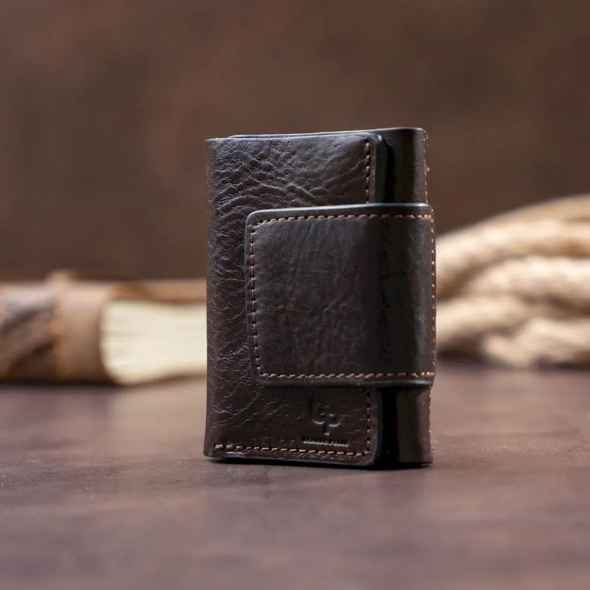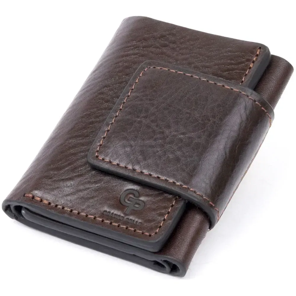 Портмоне вертикальное с хлястиком на магните на одно отделение GRANDE PELLE 11305 Коричневое