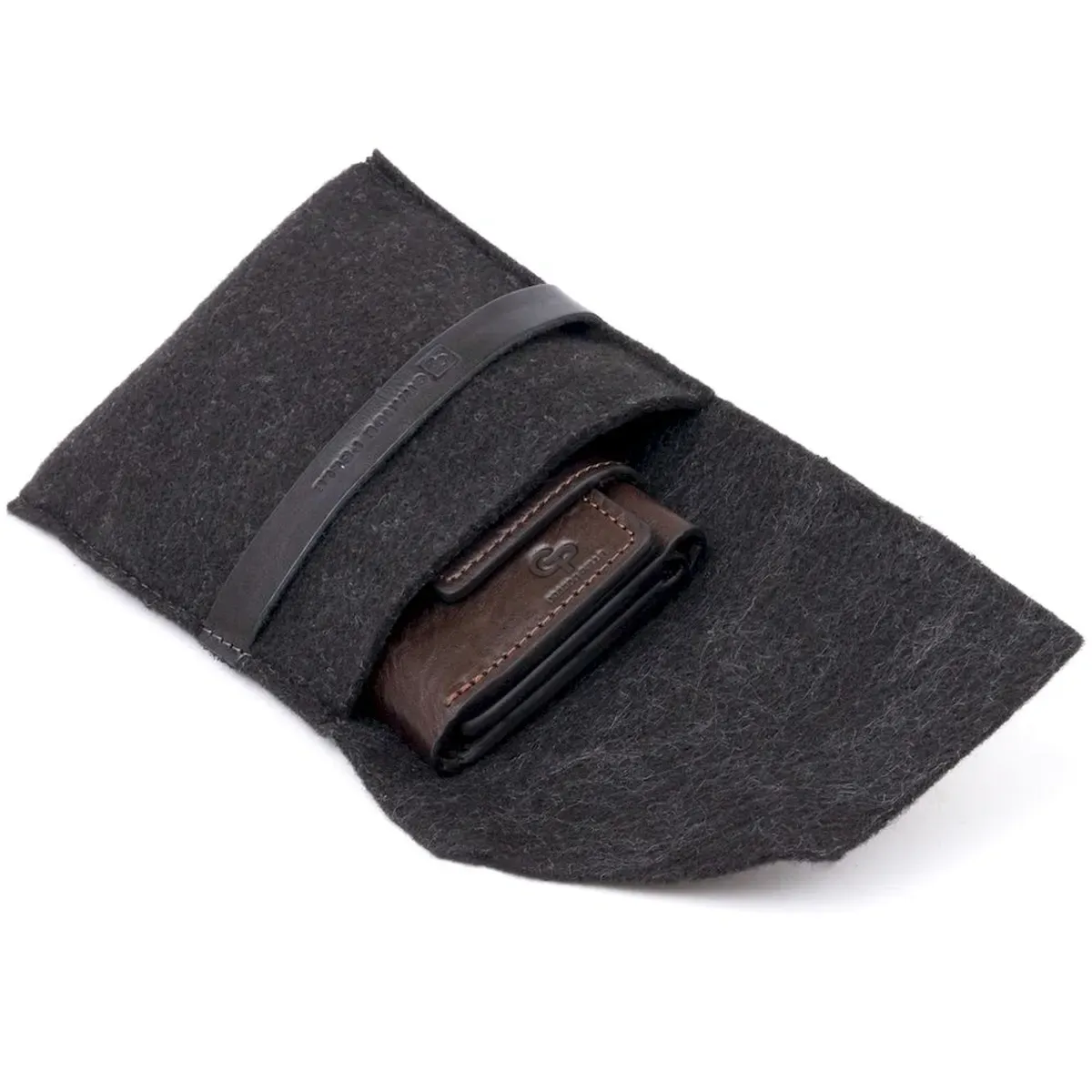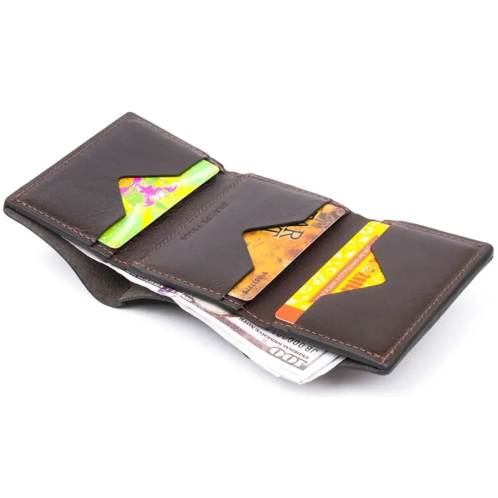 Вертикальный бумажник в гладкой коже с минимальным дизайном. Внутри - несколько ячеек для карт и одно отделение для купюр. Идеальный вариант для любого мужчины, который не любит объемных и больших аксессуаров. Несмотря на свой небольшой размер портмоне очень дорого и солидно смотрится. Кожа красиво блестит на солнце. Изделие изготовлено с учетом всех модных тенденций и пожеланий клиентов. Популярная модель из новой коллекции. В комплекте фирменный войлочный чехол. Портмоне - идеальный подарок для ваших близких.