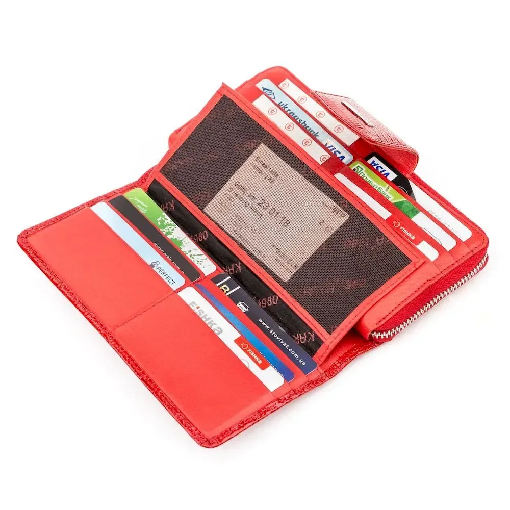 Яркий женский кошелек, из натуральной кожи лазерной обработки. В аксессуаре использована качественная и стильная фурнитура, внутренняя отделка: кожа и текстиль. Такой кошелек очень вместительный, в него легко помещается мобильный телефон, документы и другие мелочи. Отличная идея для подарка, которая не оставит равнодушной ни одну женщину.