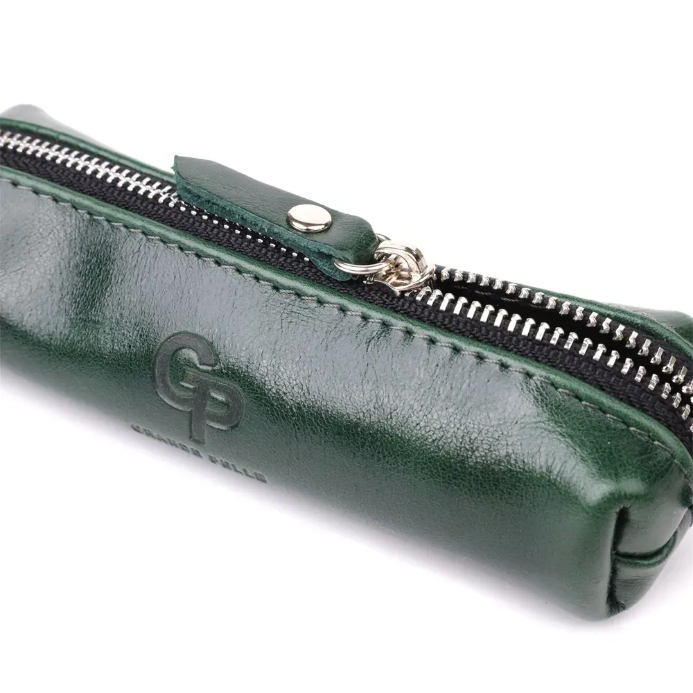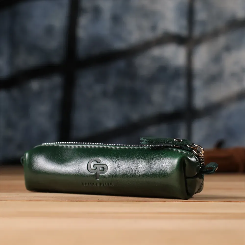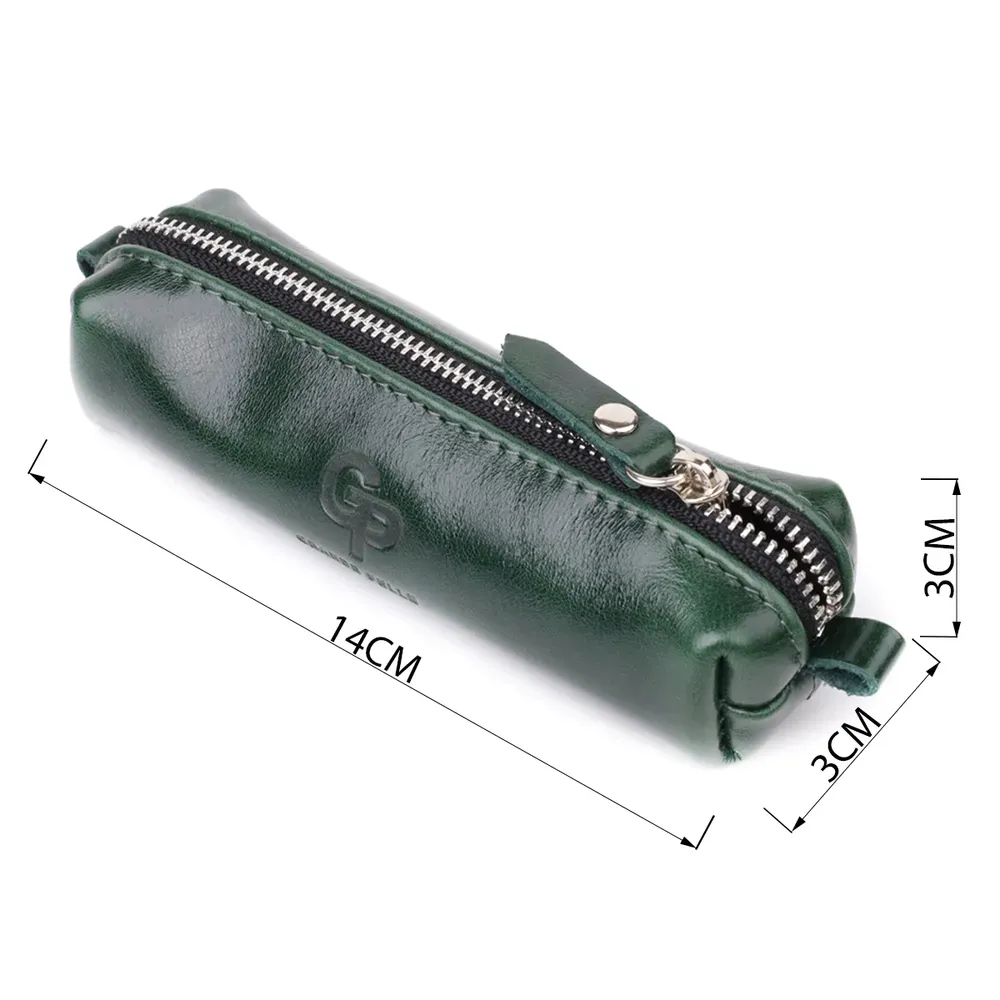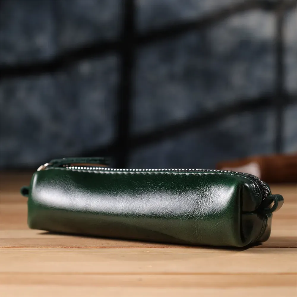 Елегантна ключниця-тубус на блискавці, виготовлена з натуральної шкіри високої якості — практичний та стильний аксесуар, який підійде як чоловікам, так і жінкам. Модель представлена в універсальному та насиченому зеленому кольорі, який додає родзинку, залишаючись при цьому стриманою та благородною. Компактна форма тубуса робить ключницю зручною для повсякденного використання - вона легко поміщається в сумці, рюкзаку чи кишені, не займаючи зайвого місця. Блискавка надійно фіксує вміст усередині, а м'яка шкіра дбайливо зберігає як ключі, так і навколишні речі: забудьте про подряпини на екрані телефону або інші пошкодження. Виріб поставляється у фірмовому чохлі, що робить його відмінним рішенням не тільки для особистого використання, а й як стильний подарунок для близьких.