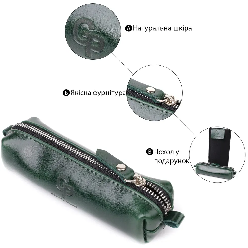 Практична ключниця з натуральної гладкої шкіри GRANDE PELLE 22943 Зелений
