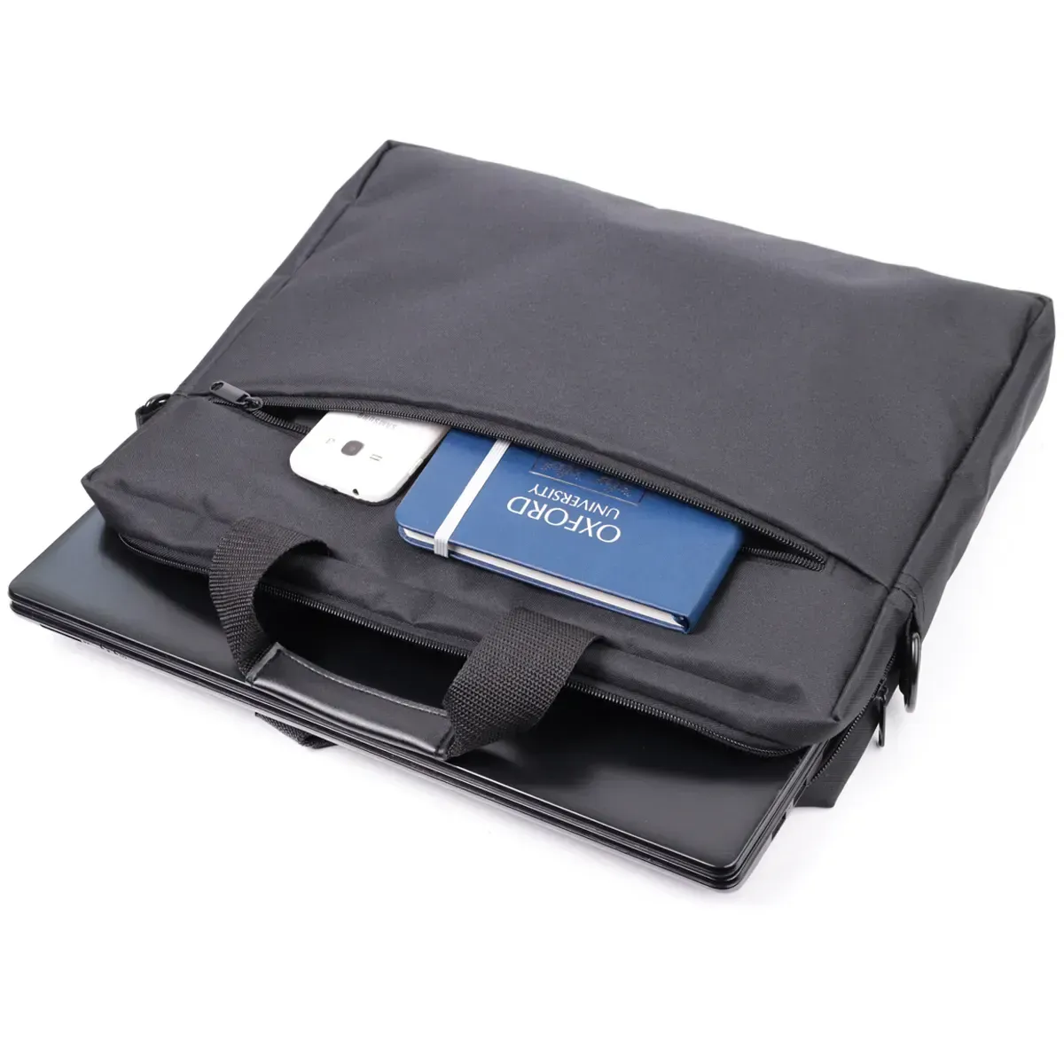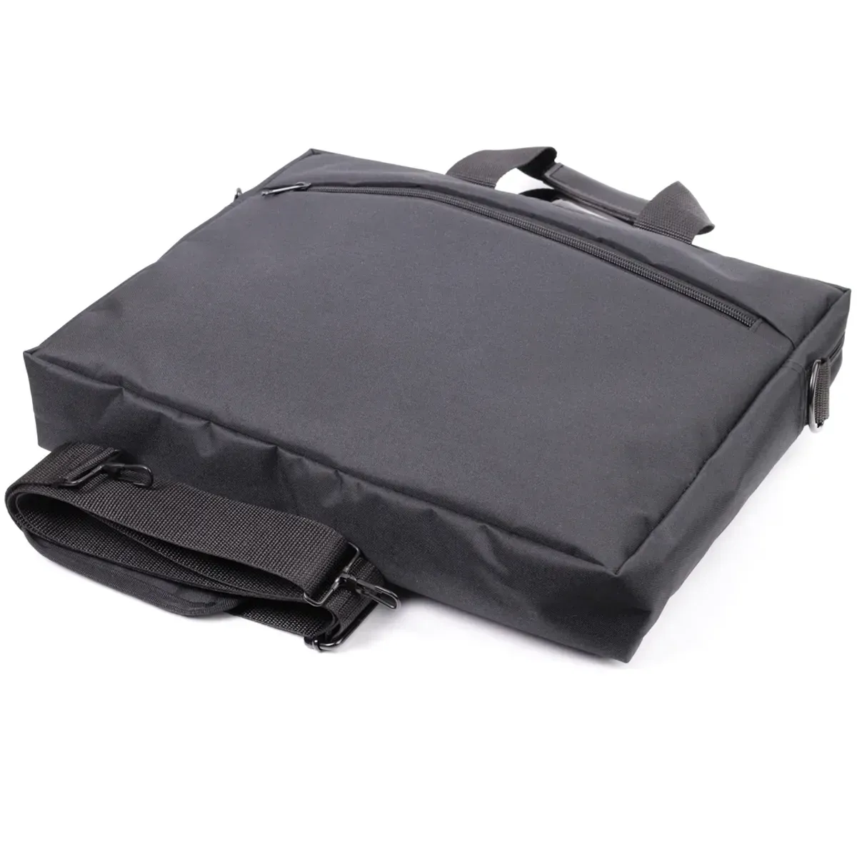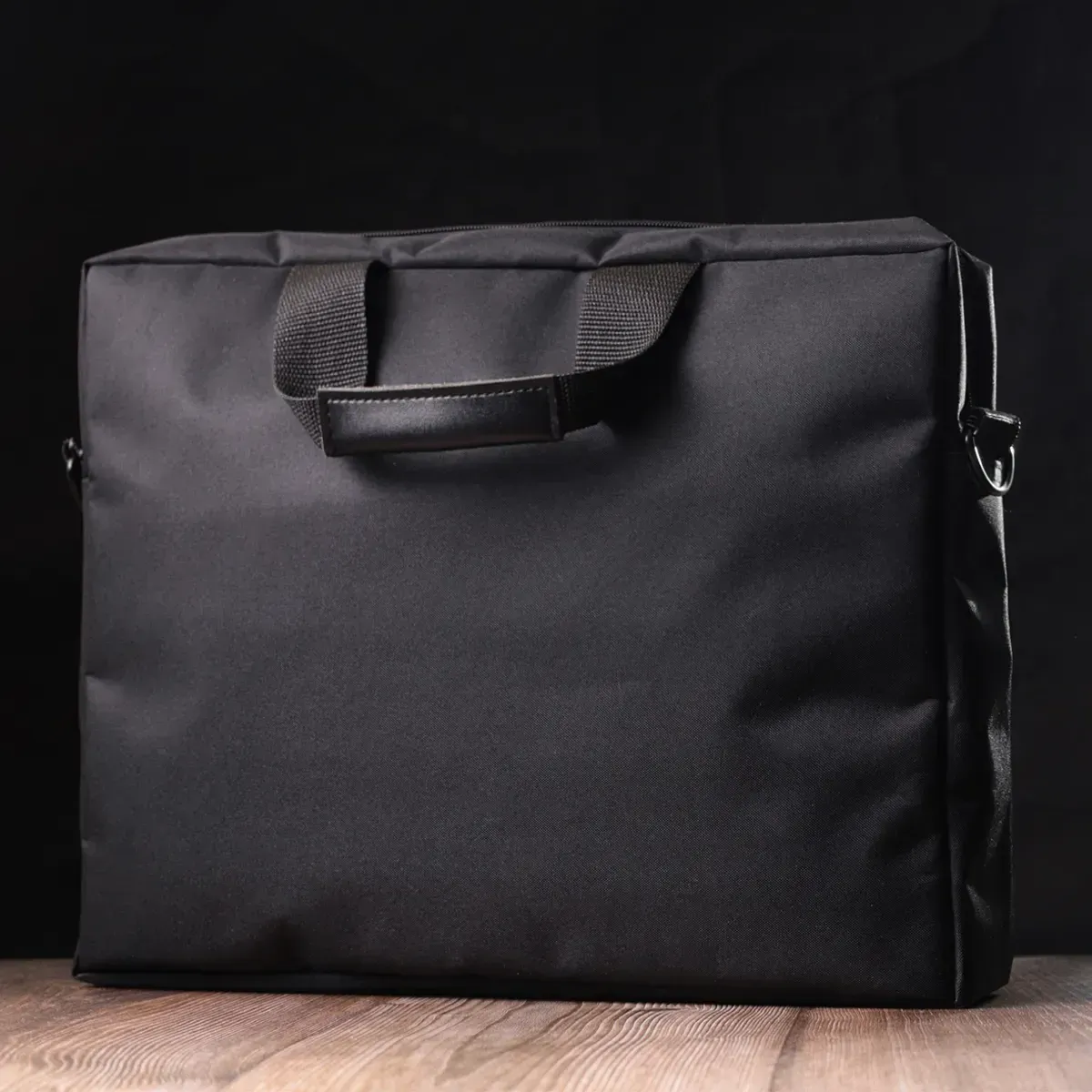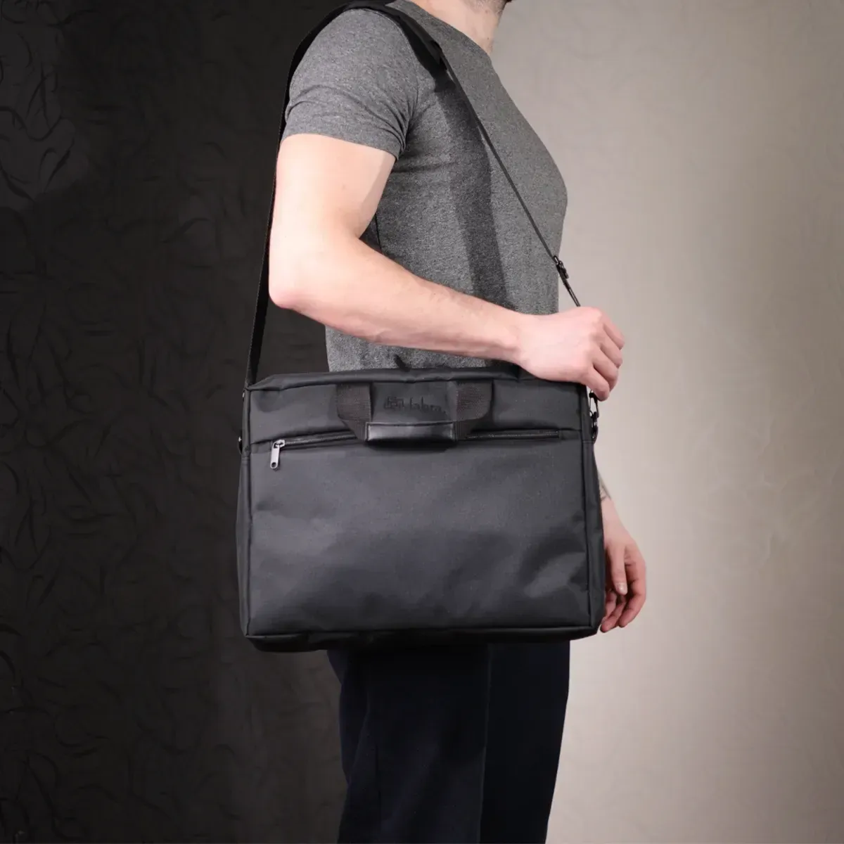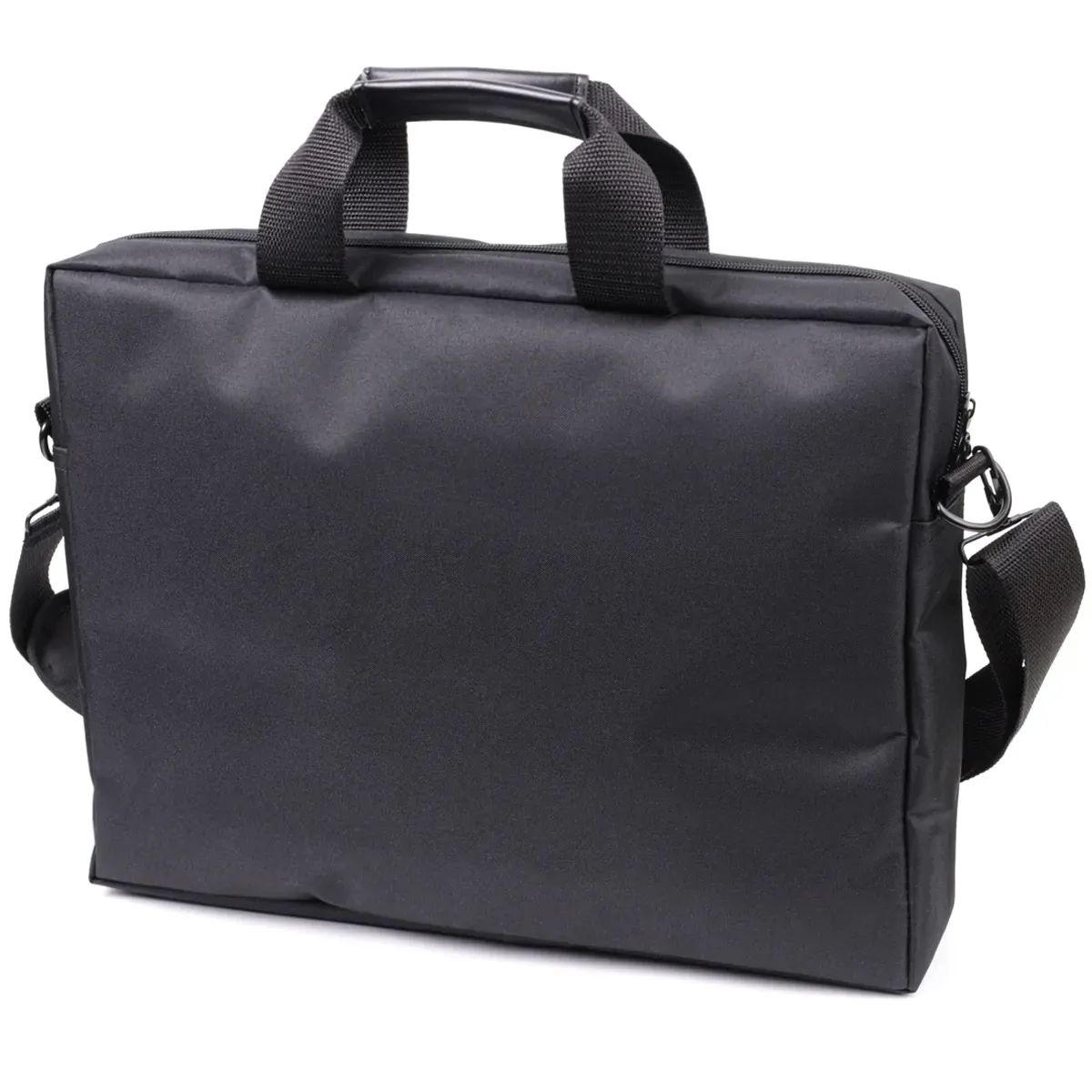 Горизонтальная деловая сумка на каждый день из качественного материала - полиэстера. Изделие имеет оптимальный размер, вмещает в себя ноутбук диагональю до 15,6 дюймов, что в современном мире очень актуально. Носить аксессуар можно в руках, для этого предусмотрены текстильные ручки и на плече при помощи надежного съемного регулируемого ремня, с мягкой накладкой на плечо, для большего удобства. Пошита сумка аккуратно, все строчки ровные, подкладка прочная черного цвета, фурнитура надежная и качественная. Сумка из полиэстера, очень выгодная альтернатива кожаным сумкам, так как прослужит не меньше, не теряя свой первоначальный вид, а цена приятно порадует.