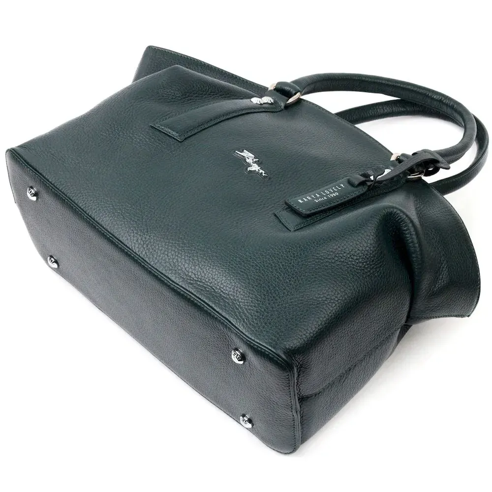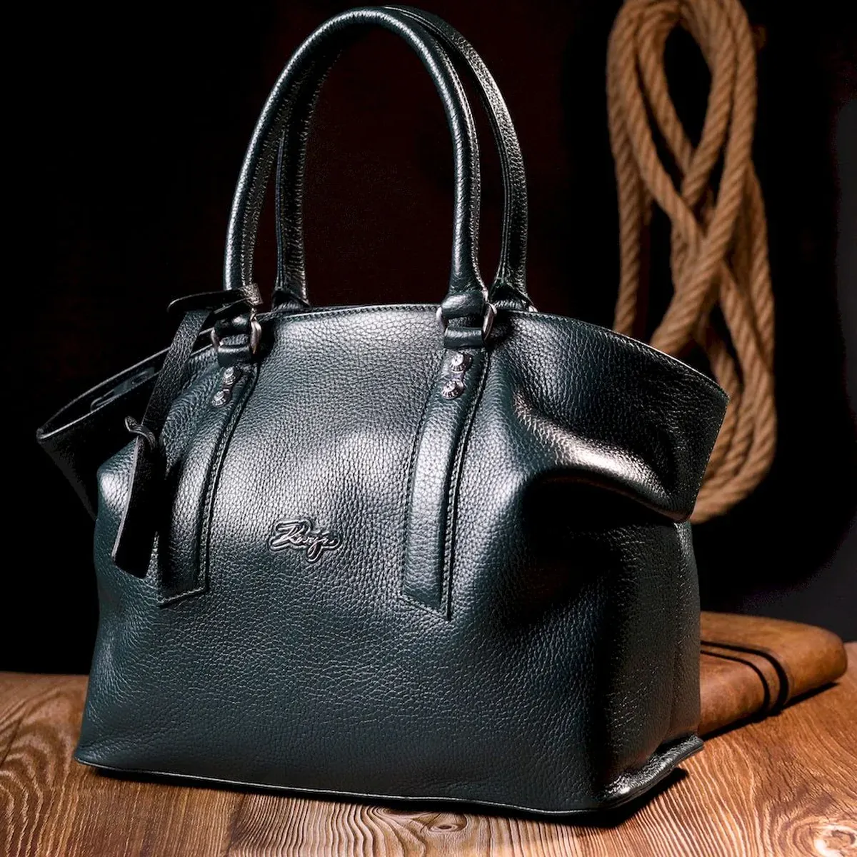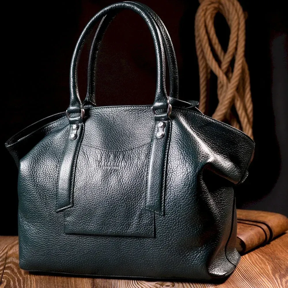 Стильная женская сумка в деловом стиле из натуральной кожи, в стильном дизайне и оригинальном зеленом цвете. Фурнитура серебряного цвета. Сумку удобно носить в руке, на плече. Сумка упакована текстильный чехол. Сумка из натуральной кожи всегда будет отличным подарком любой женщине.