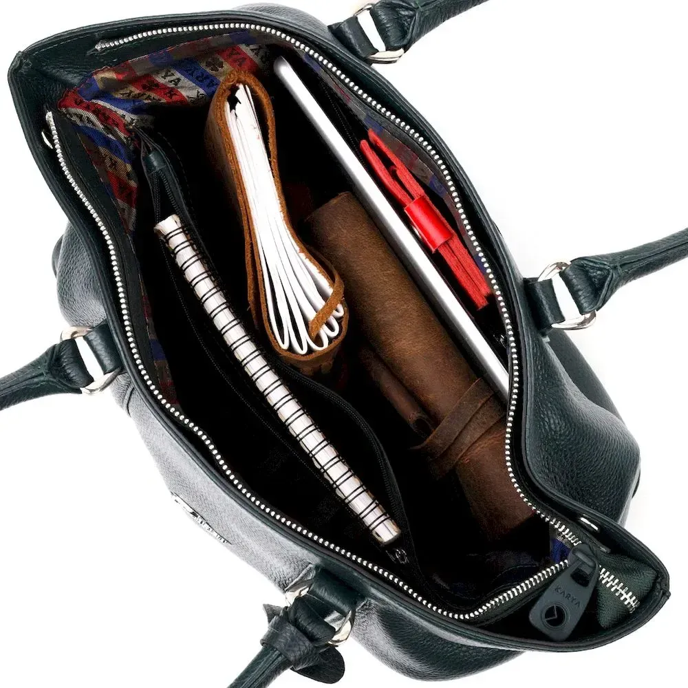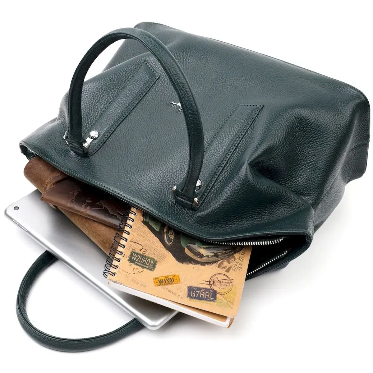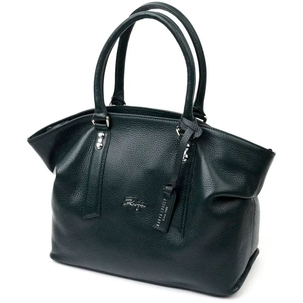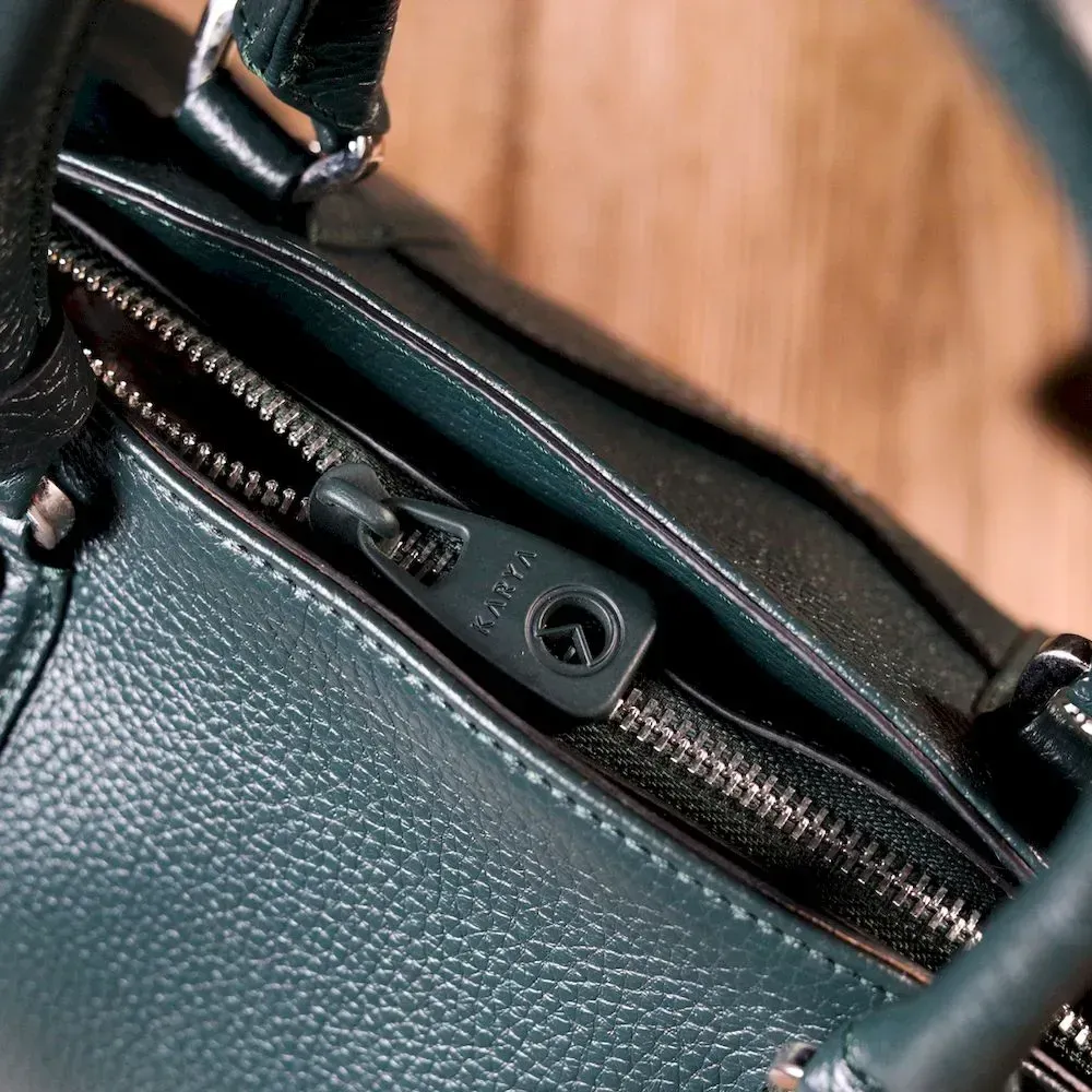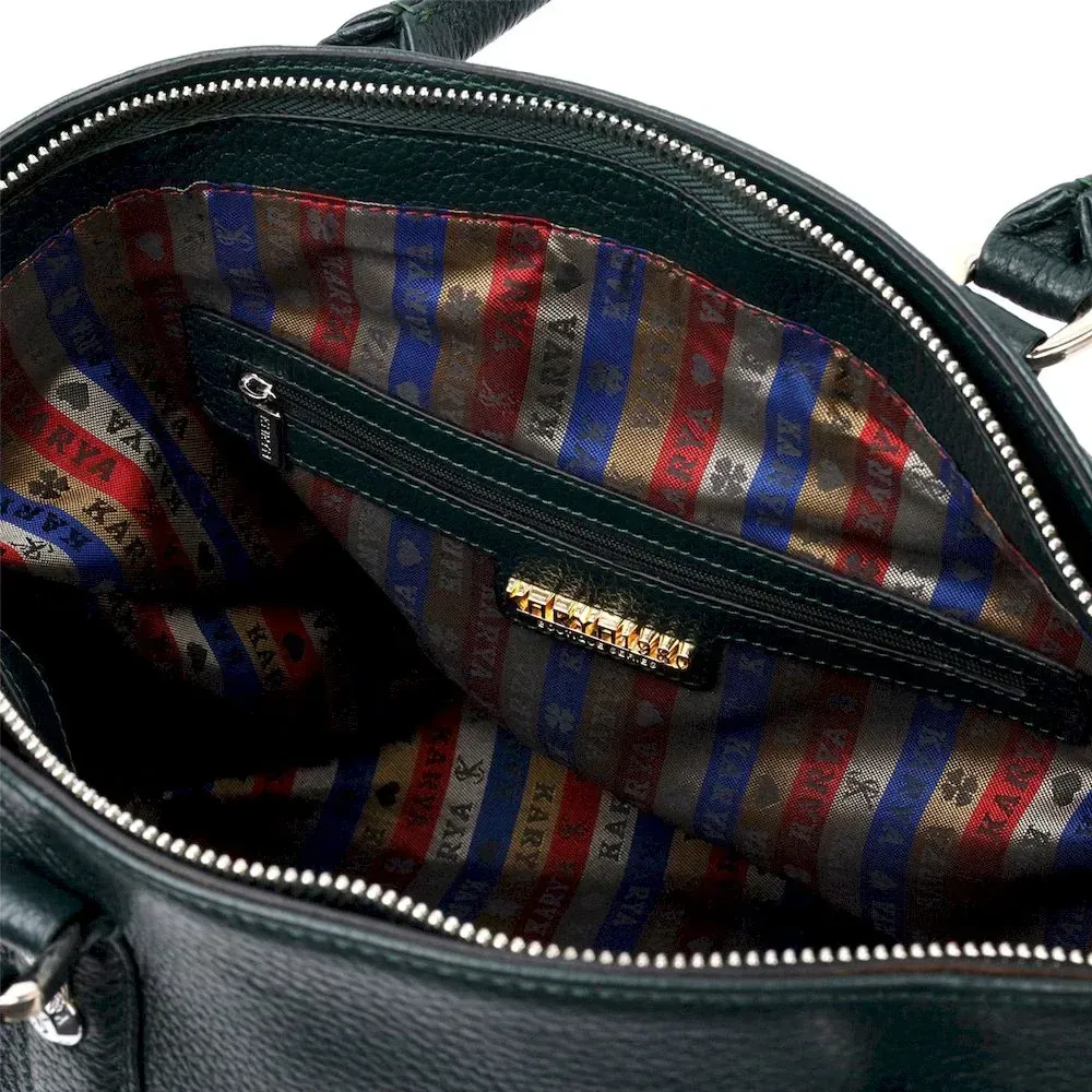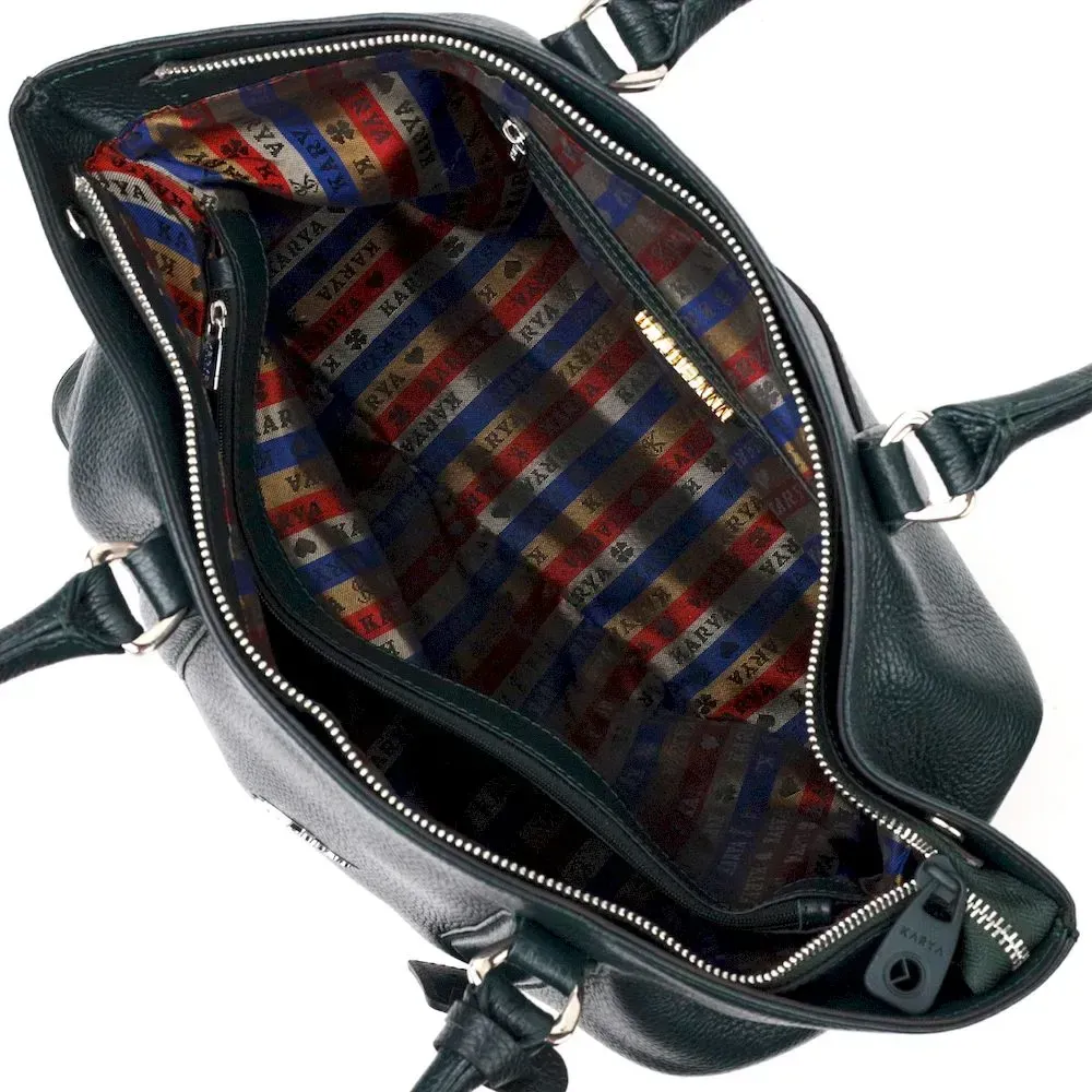 Практичная деловая женская сумка KARYA 20889 кожаная Зеленый