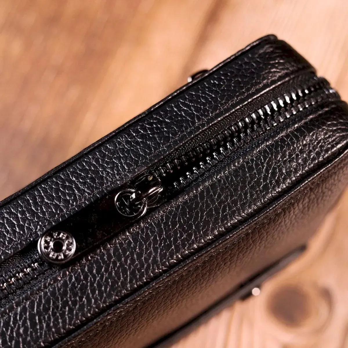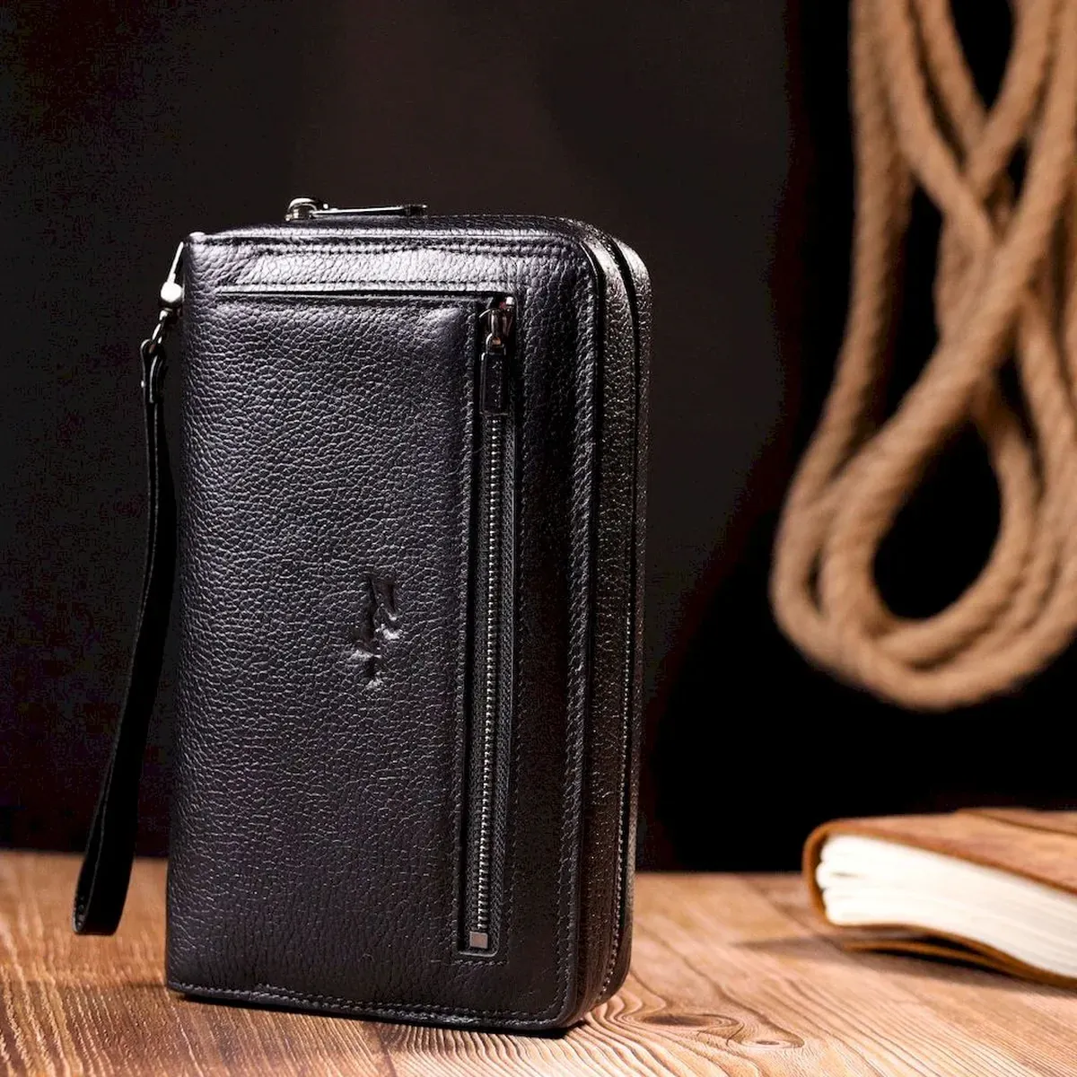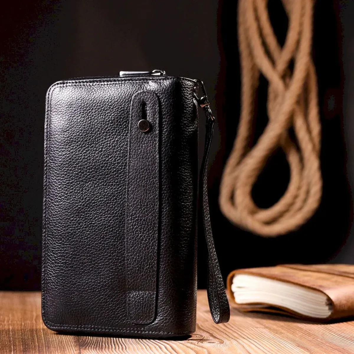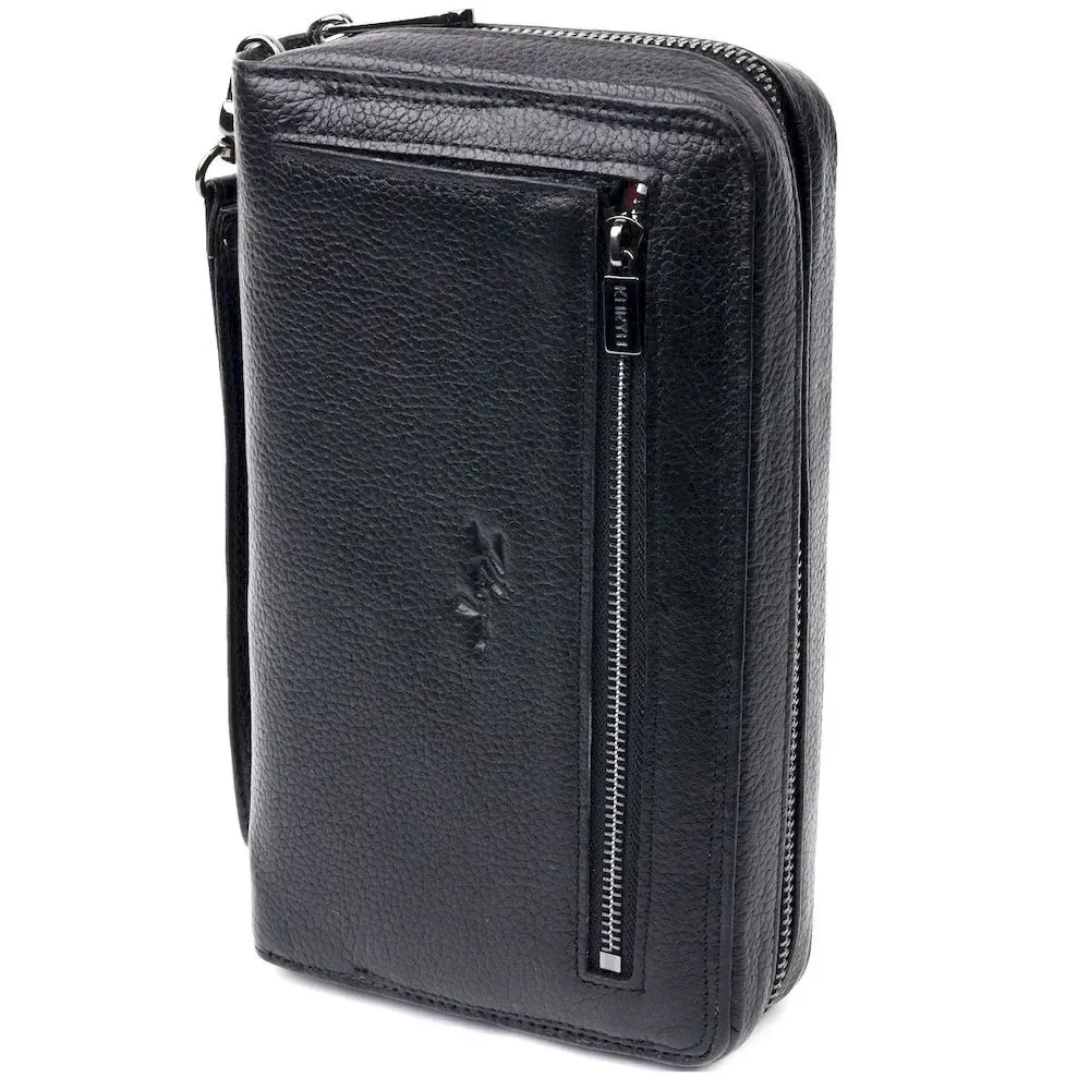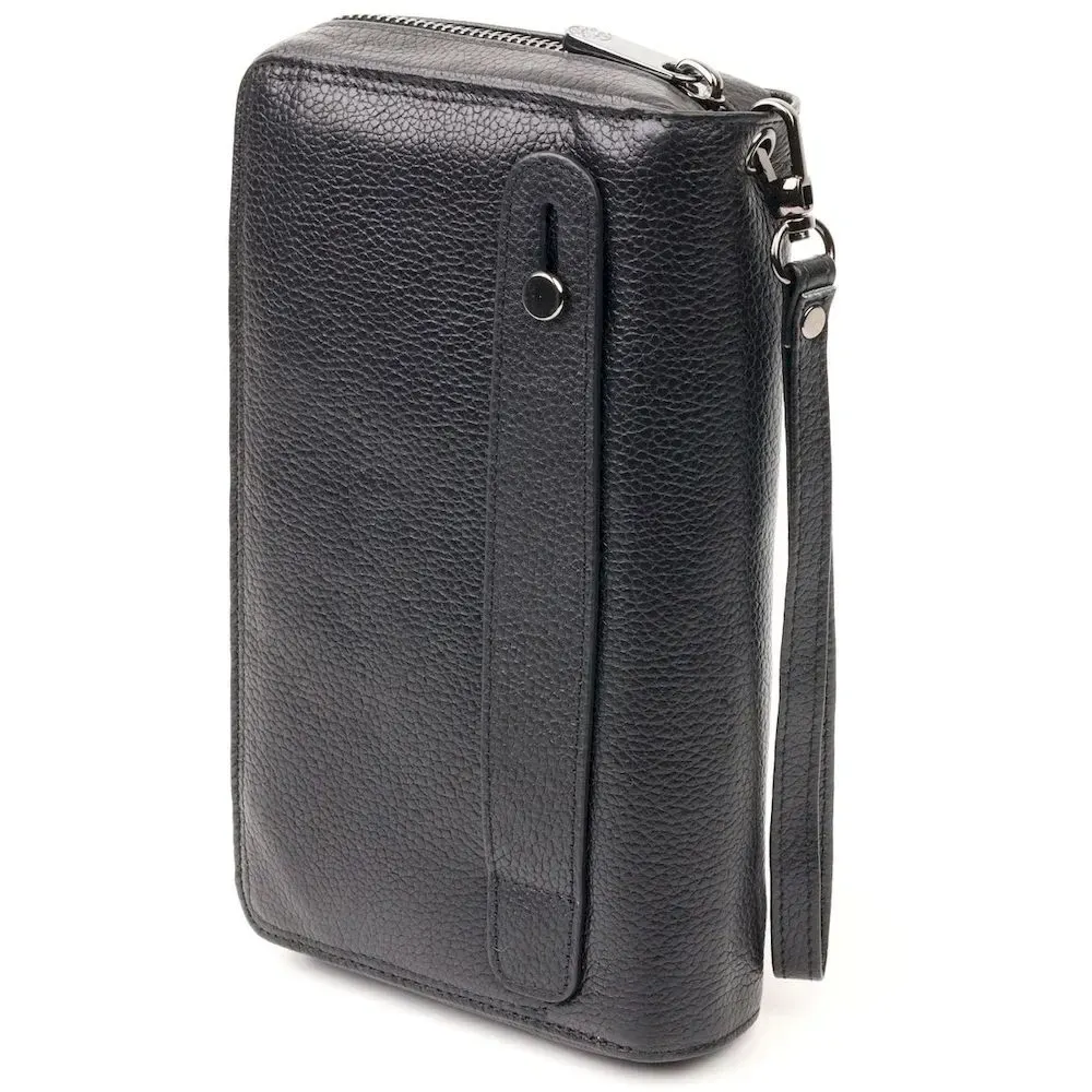 Классический мужской клатч-барсетка из натуральной зернистой кожи, в классическом черном цвете, с использованием добротного текстиля (внутренняя подкладка). Носится с помощью ремешка на запястье или просто в руке. Используется качественная фурнитура цвета темного серебра.Барсетка в одно и тоже время, компактна и функциональна, в нее можно поместить свой телефон, чтоб не мешал в руках. С таким аксессуаром, мужчина будет выглядеть солидно и уверенным в себе.