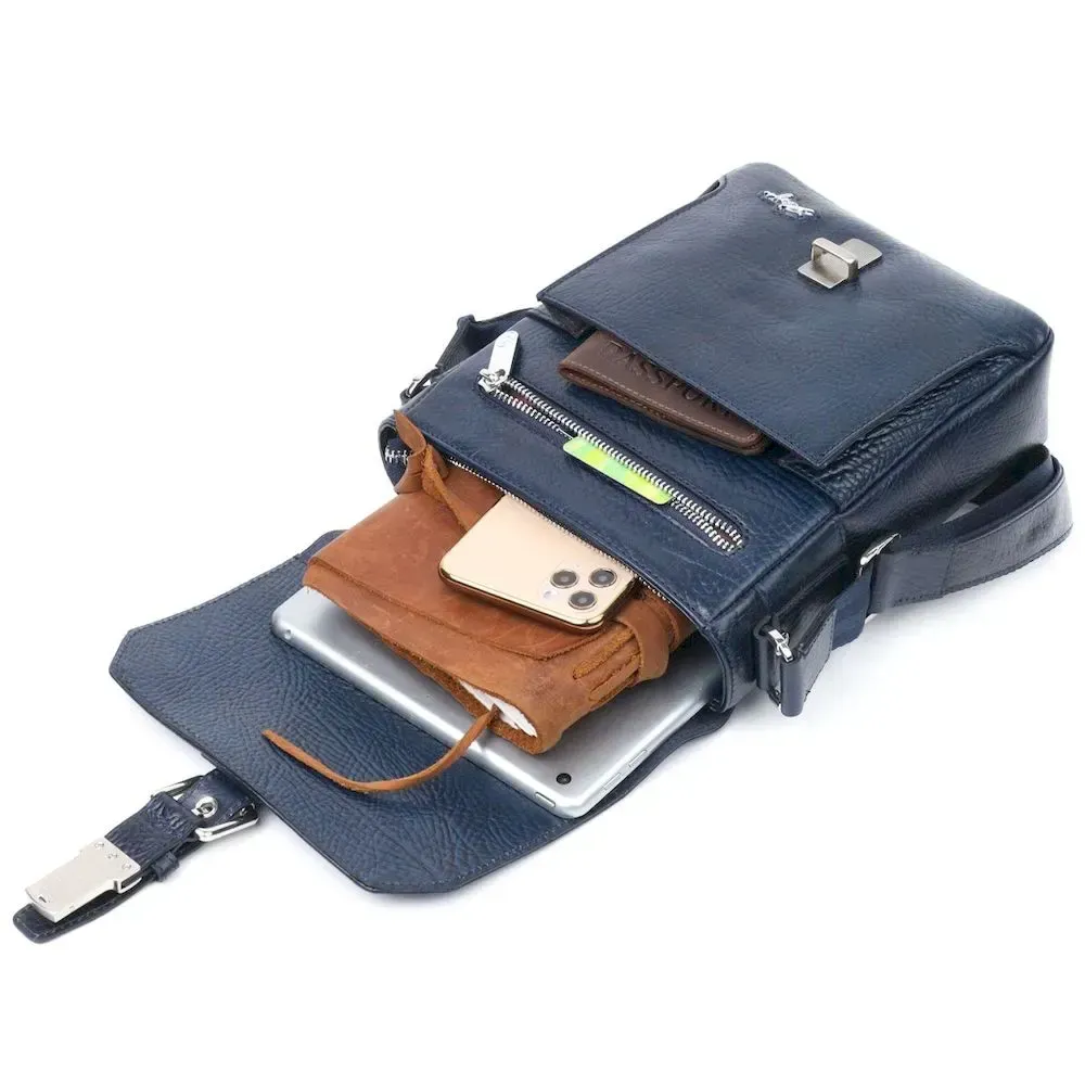 Практичная мужская сумка KARYA 20840 кожаная Синий