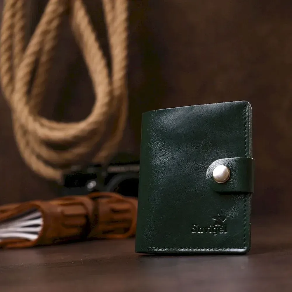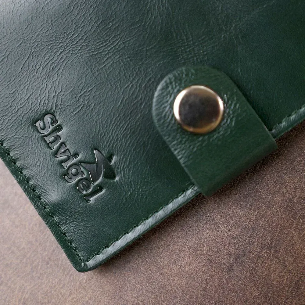 Практичное кожаное портмоне Shvigel 16504 Зеленый