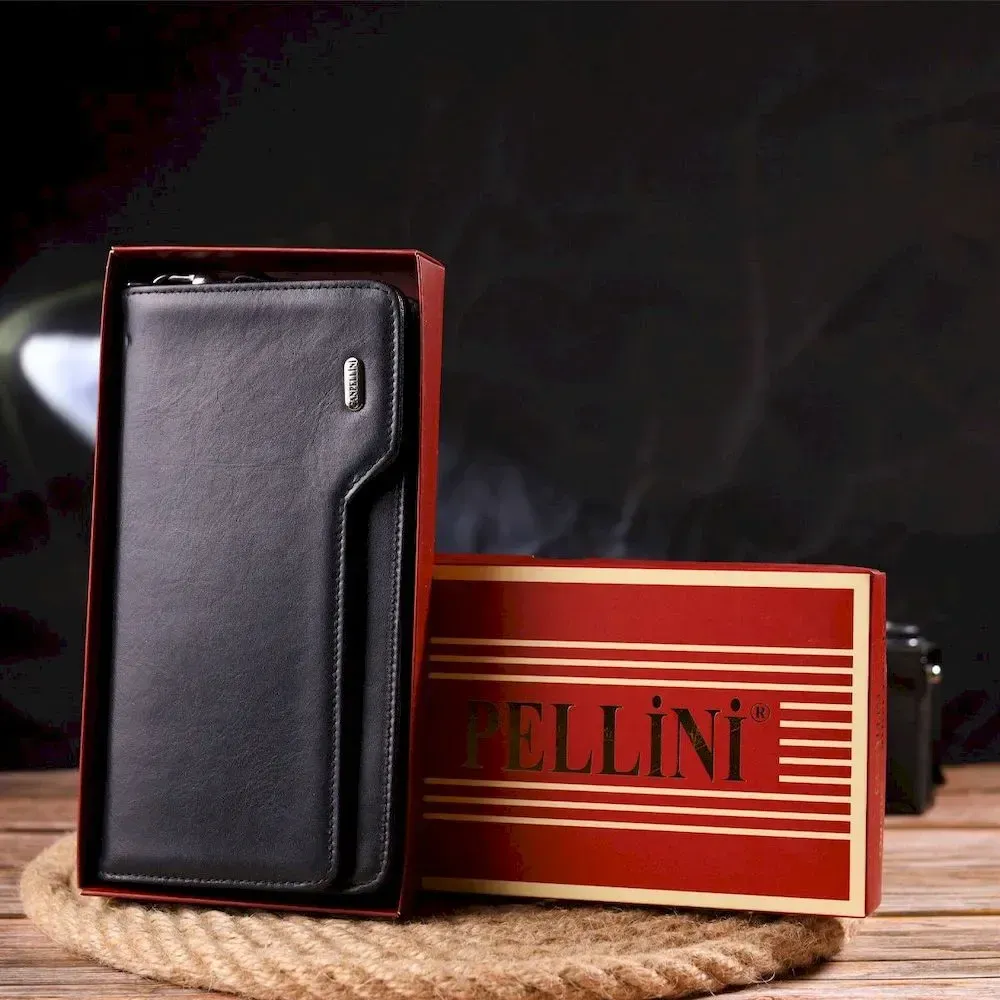 Функциональный кошелек- клатч, из натуральной гладкой кожи. Аксессуар имеет одно основное отделение, в которое помещаются купюры всех номиналов, двенадцать карманов для карточек, один из которых под сеточкой, блок для карт с внешней стороны, два кармашка на молнии, съемный кистевой ремень. Закрывается аксессуар на молнию, а блок для карт закрывается на кнопки. Цвет фурнитуры – серебро. Кожаный кошелек является удивительным подарком для близких людей.