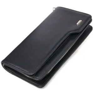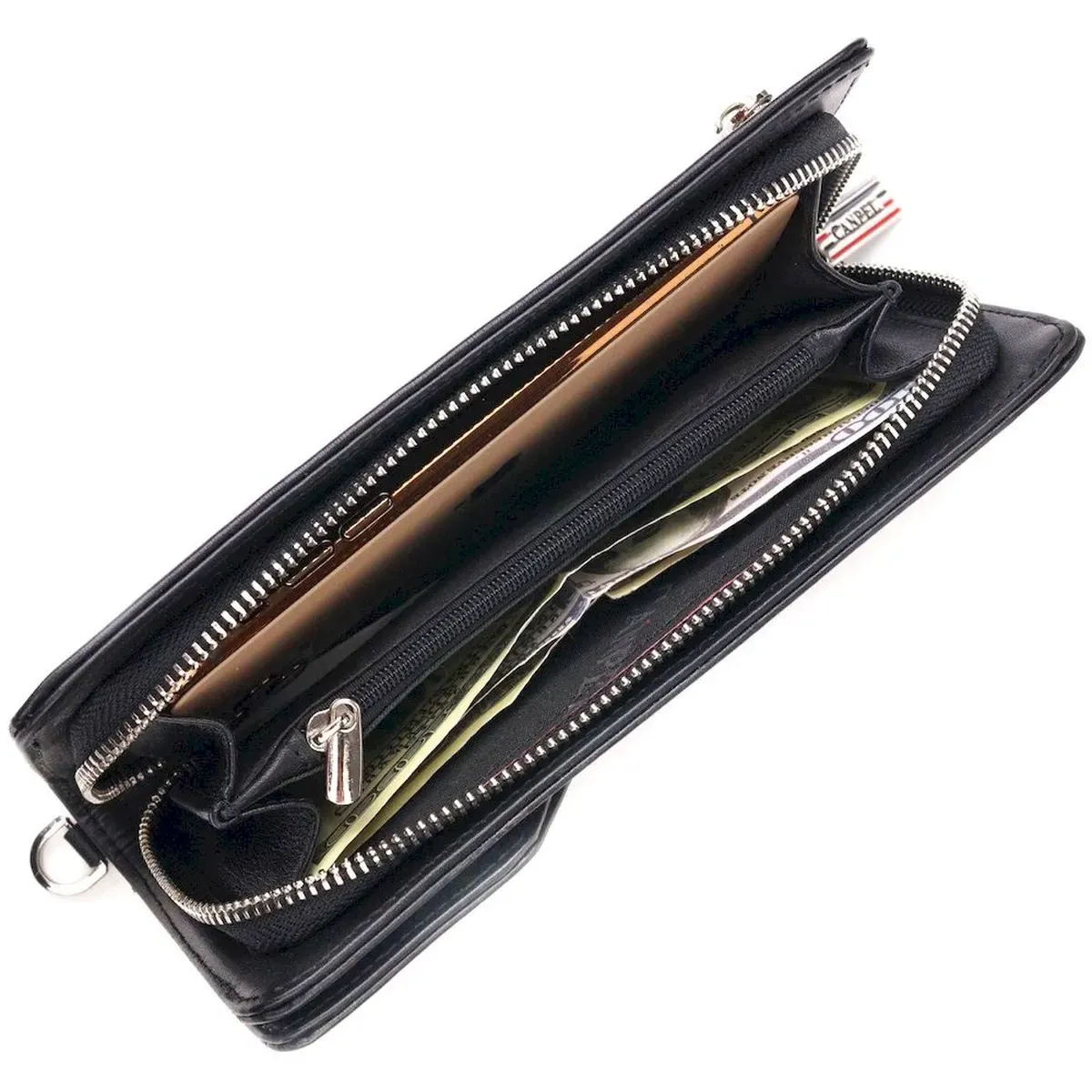 Практичное портмоне клатч из натуральной кожи с тиснением под крокодила CANPELLINI 21540 Черное